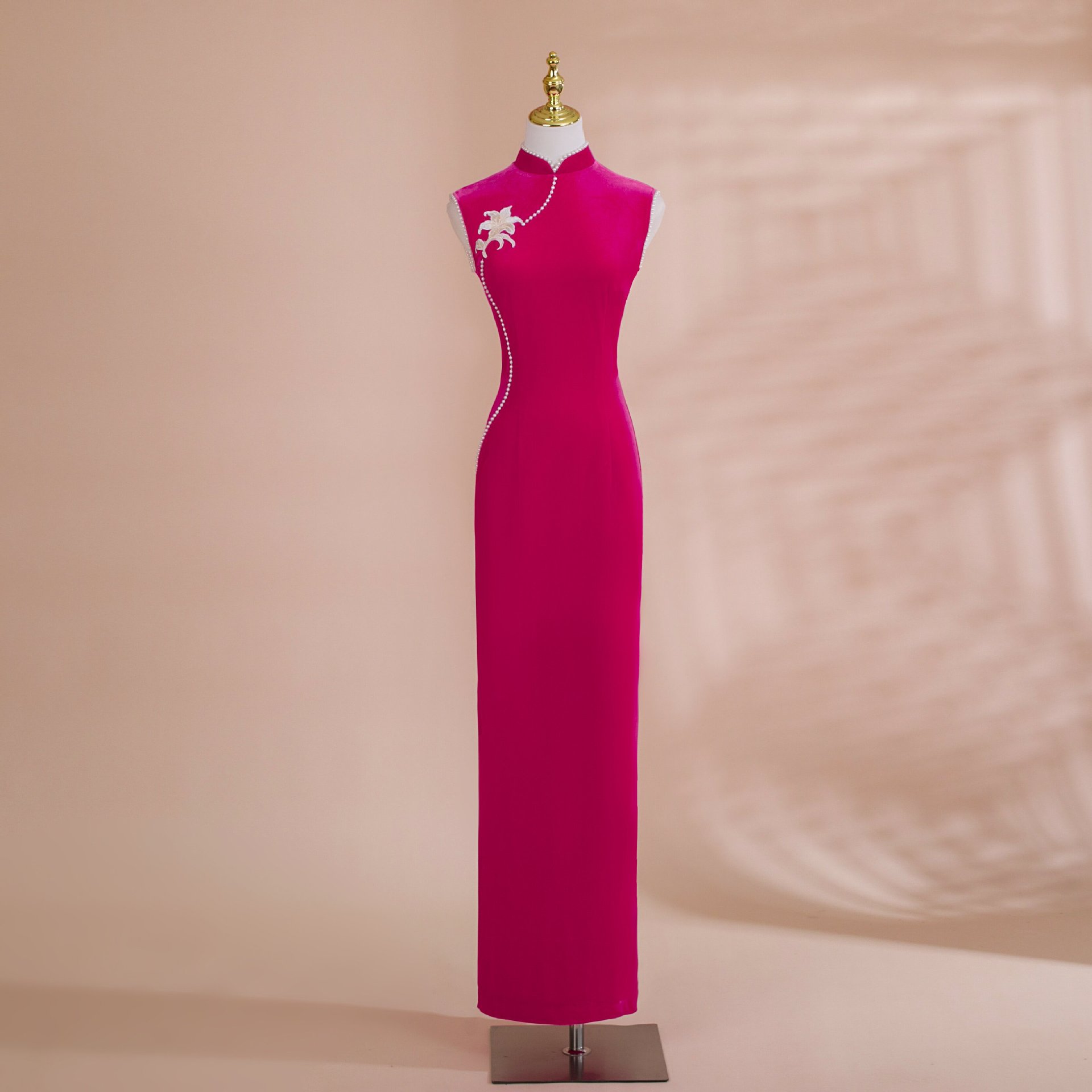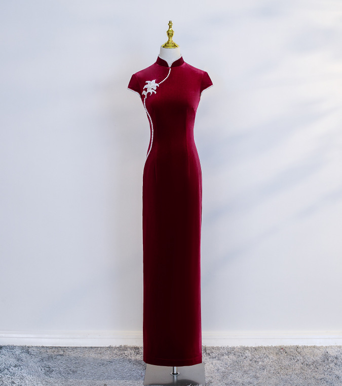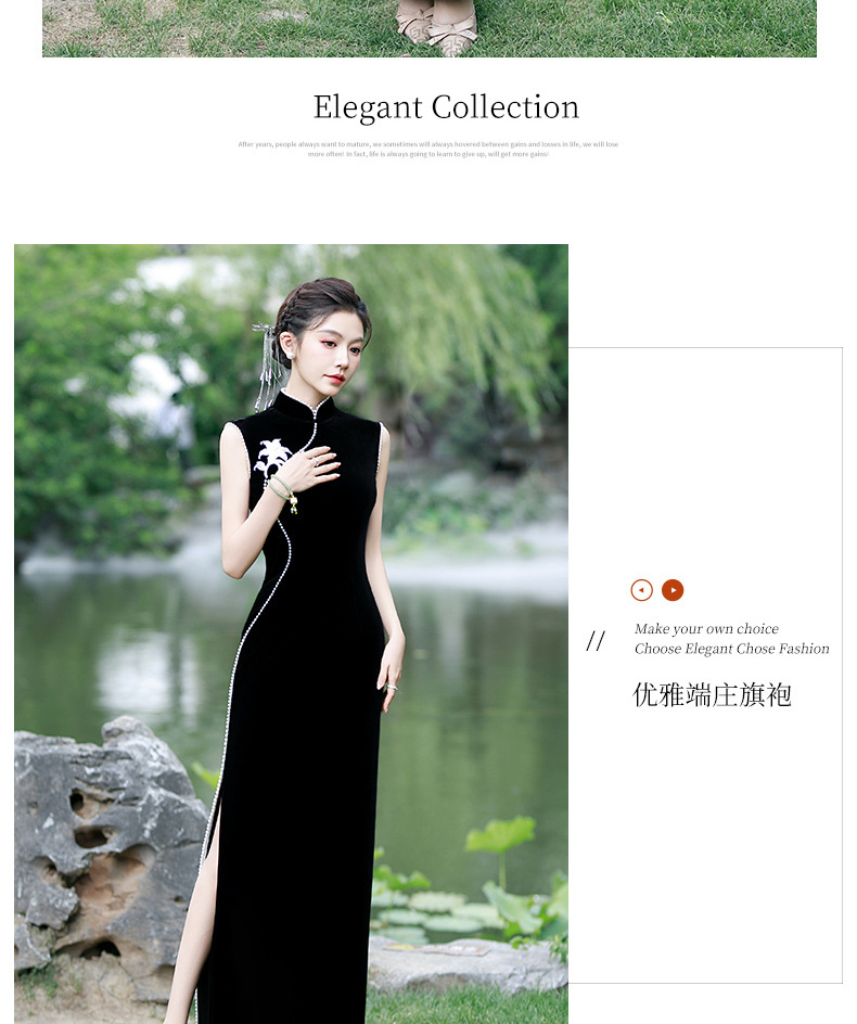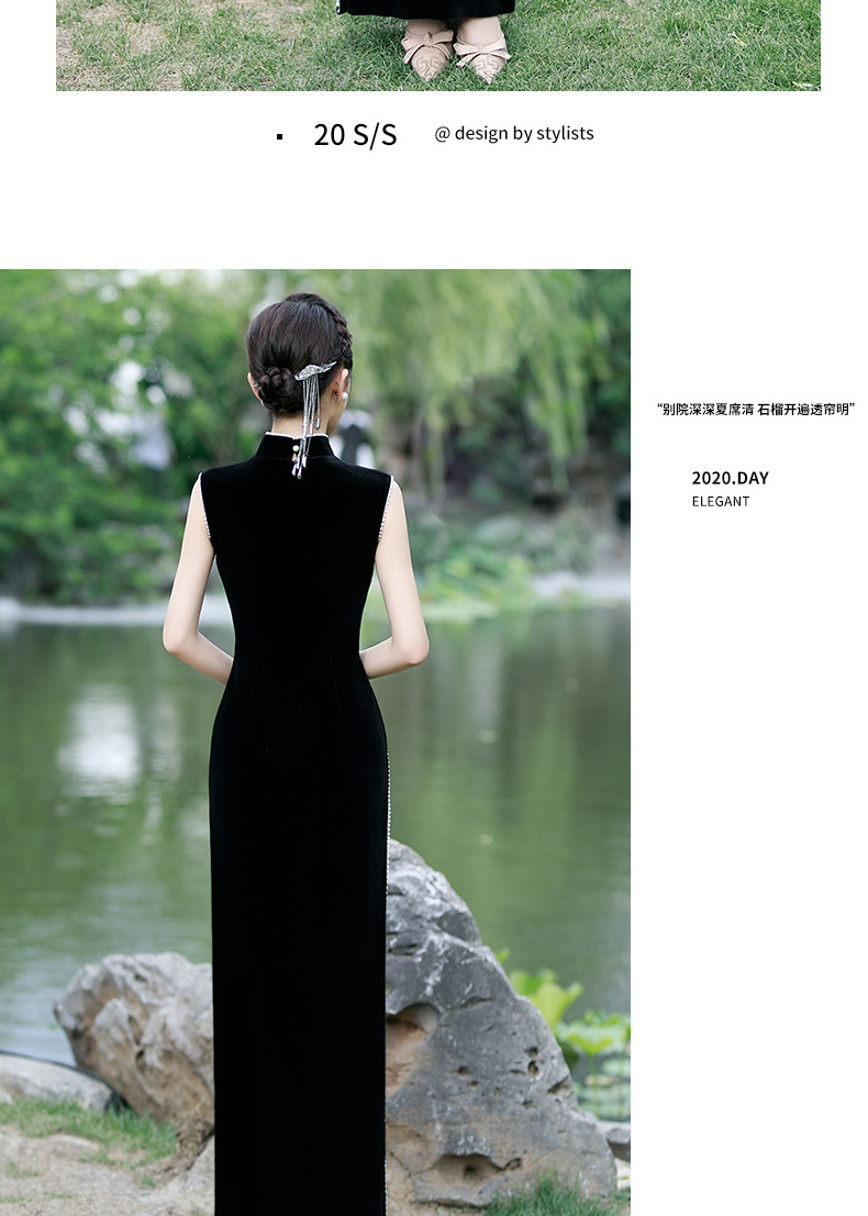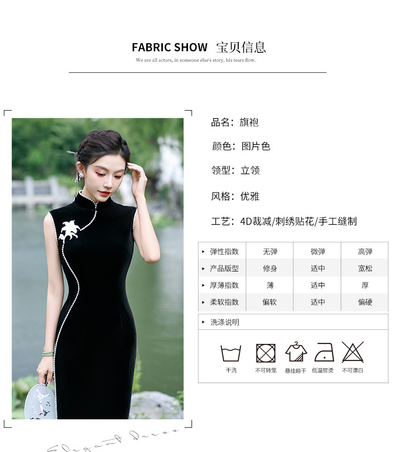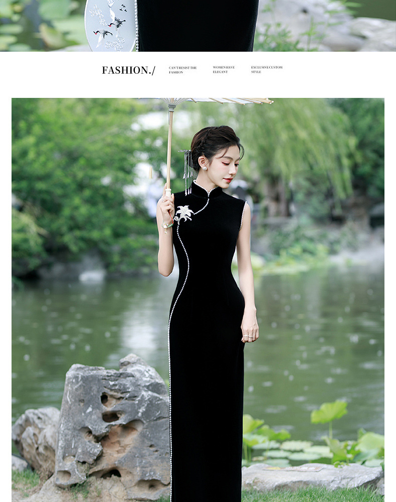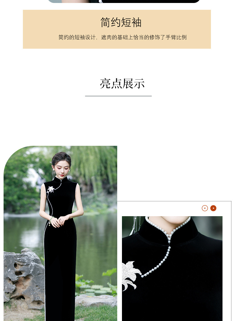 Подиумный Cheongsam 2025 Новый Slim Fit Этикет Жемчужный Бархат Черный Cheongsam Ретро Slim Fit Performance Cheongsam.