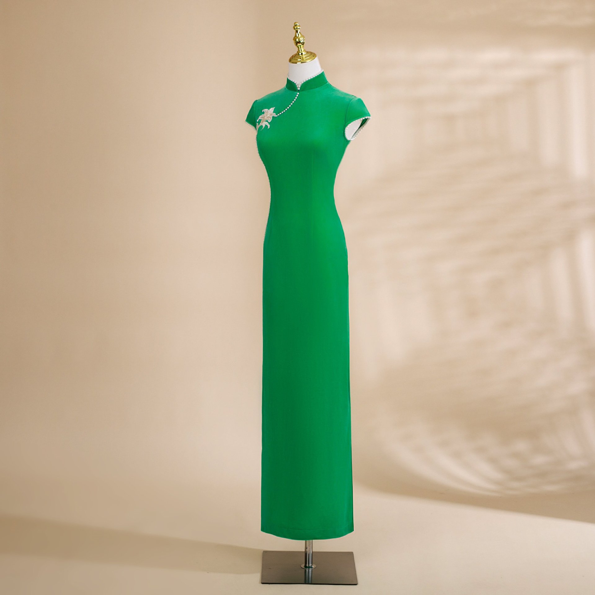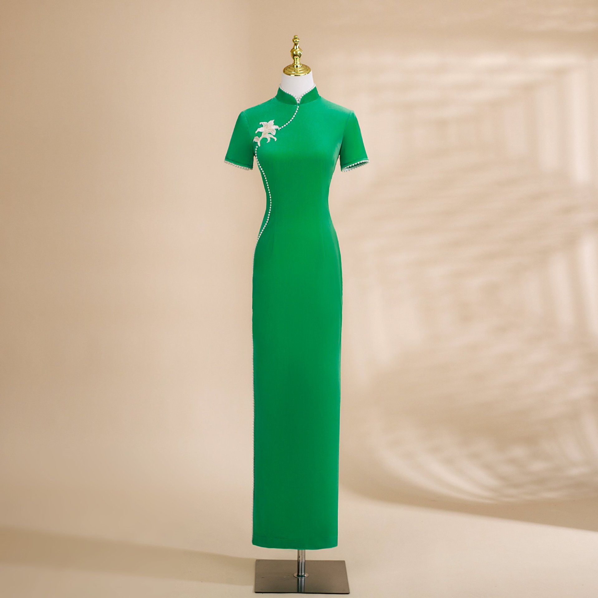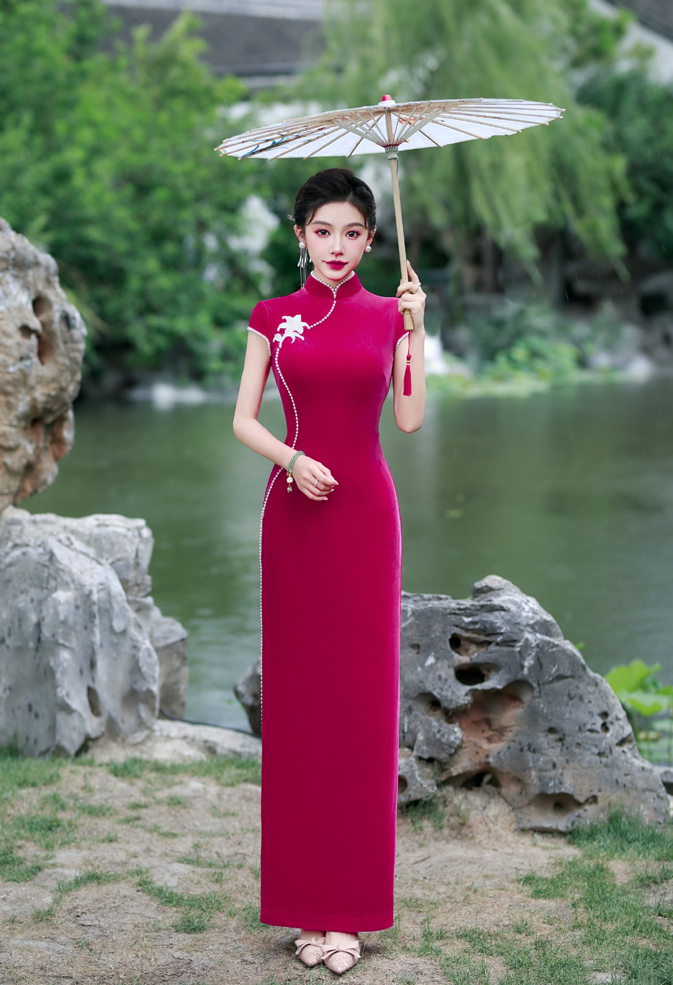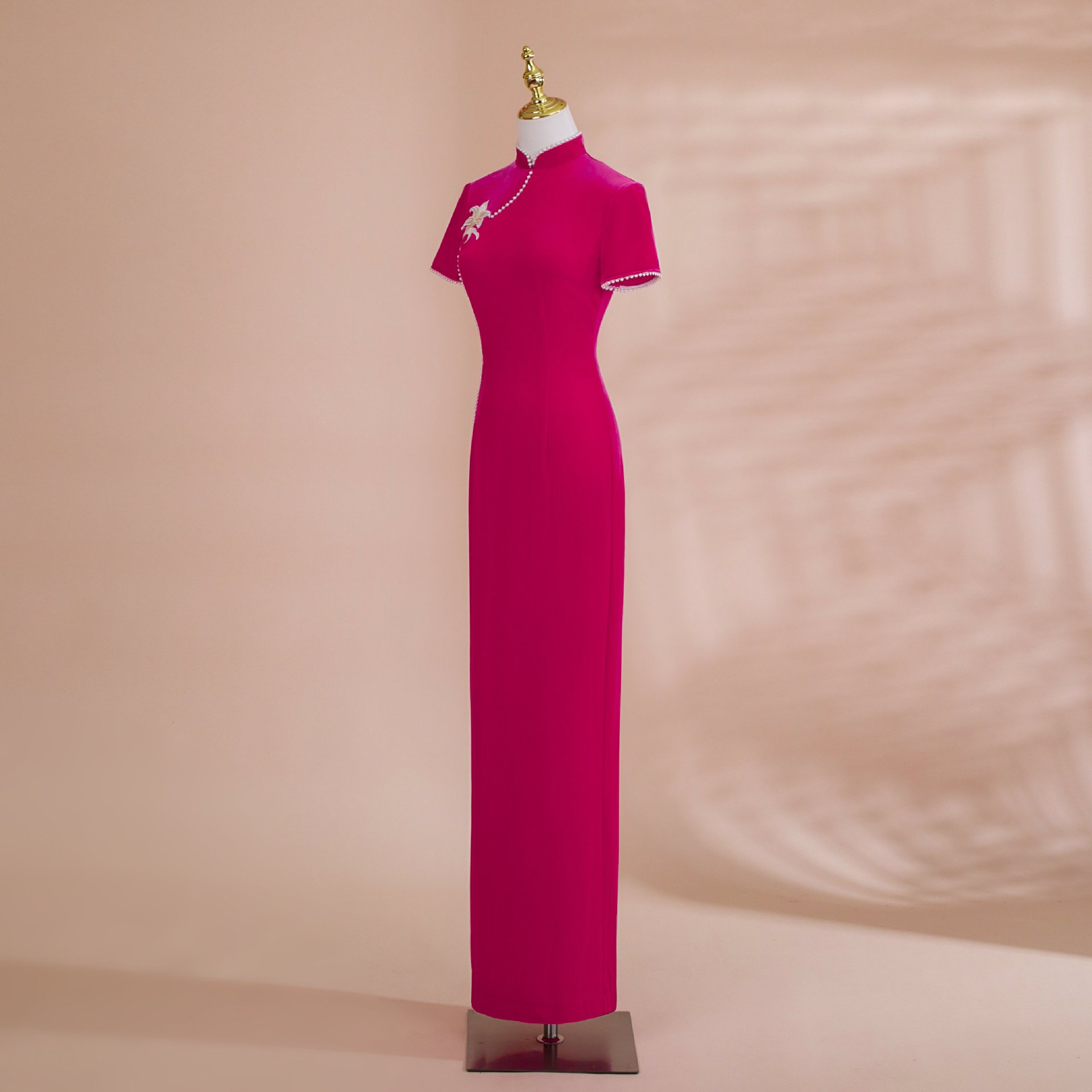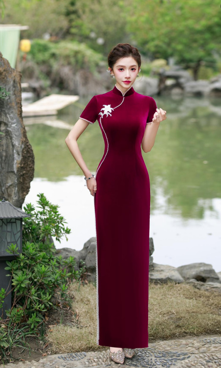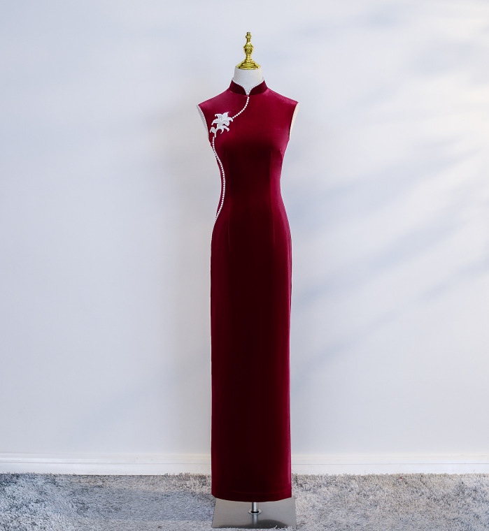 Подиумный Cheongsam 2025 Новый Slim Fit Этикет Жемчужный Бархат Черный Cheongsam Ретро Slim Fit Performance Cheongsam.
