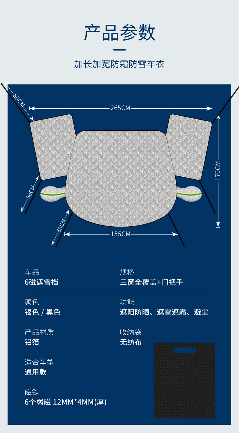 1、牛津布材质,不伤车漆,防晒、隔热、防雨雪、防风尘、防划痕、抗拉力强。
