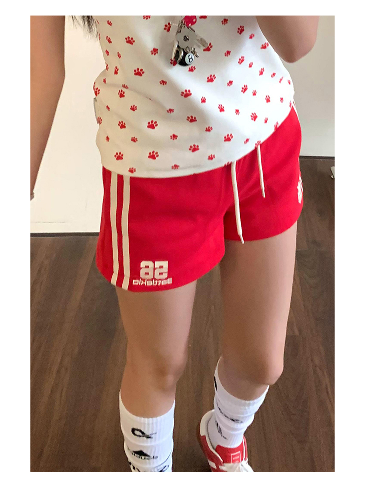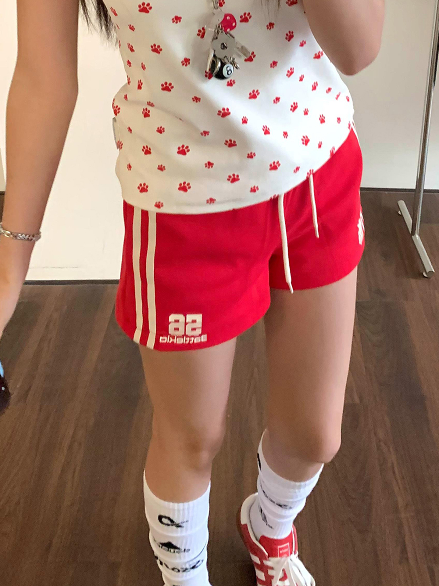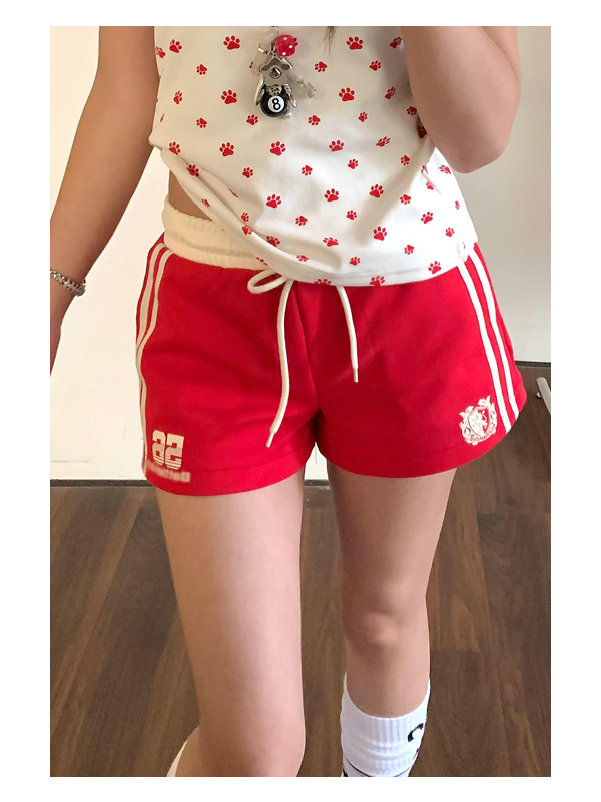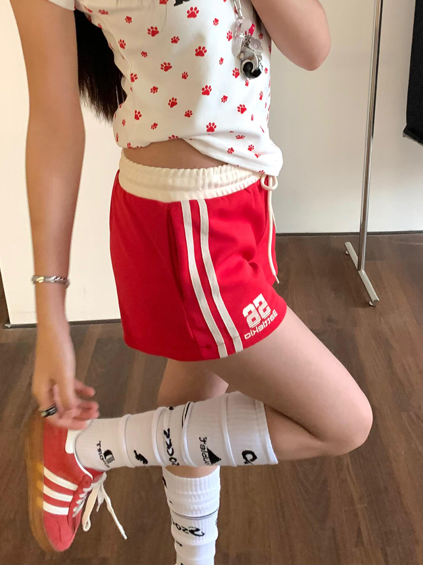 Американские красные повседневные шорты для женщин, летние спортивные брюки с низкой талией для горячих девушек, дизайнерские брюки с эластичной резинкой на талии, трехточечные брюки для фитнеса