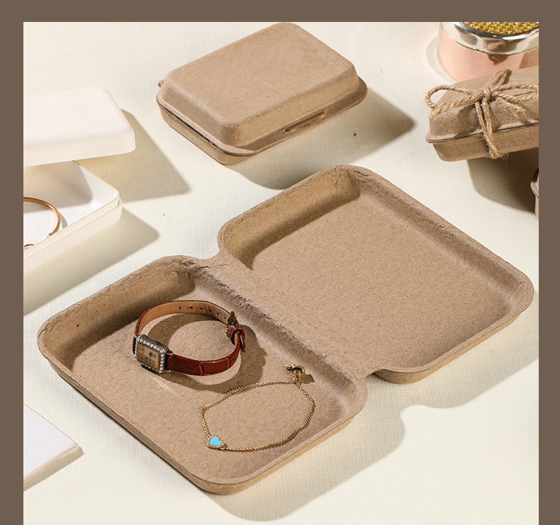 Квадратная экологически чистая разлагаемая подарочная коробка из древесной целлюлозы, формованная из целлюлозы, для хранения сувенирных аксессуаров, упаковочная коробка