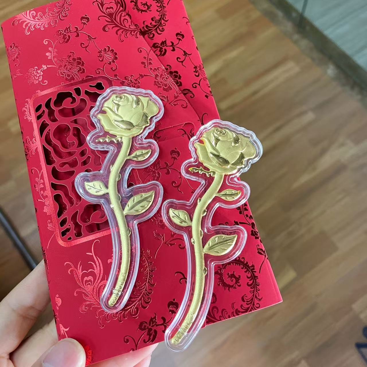 Роза с золотом (одинарная); Роза из золотой фольги (одинарная); Золотая роза (одинарная) + красный конверт; Роза из золотой фольги (одинарная) + красный конверт