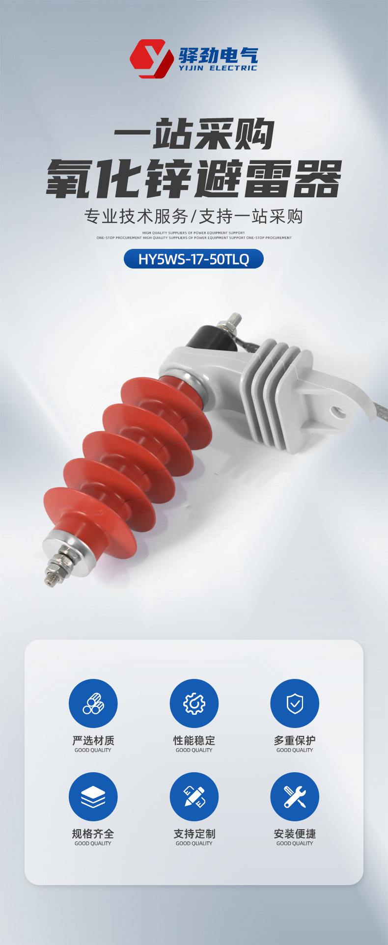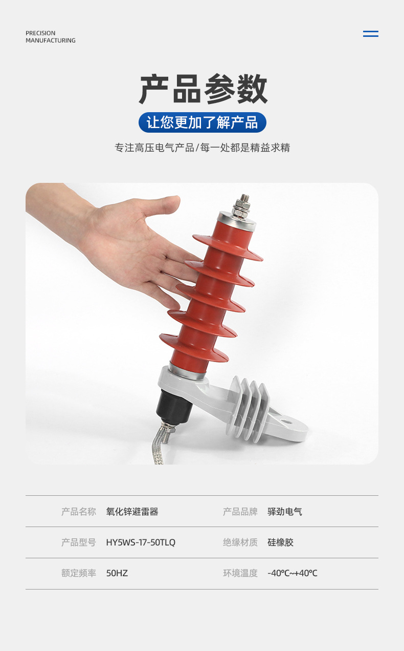 Грозозащитное устройство HY5WS-17/50TLQ с шунтовым разрядником и кронштейном, защита от перенапряжений.