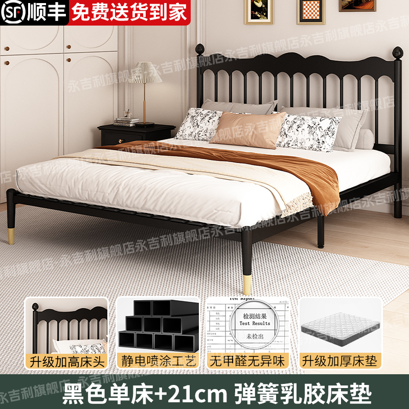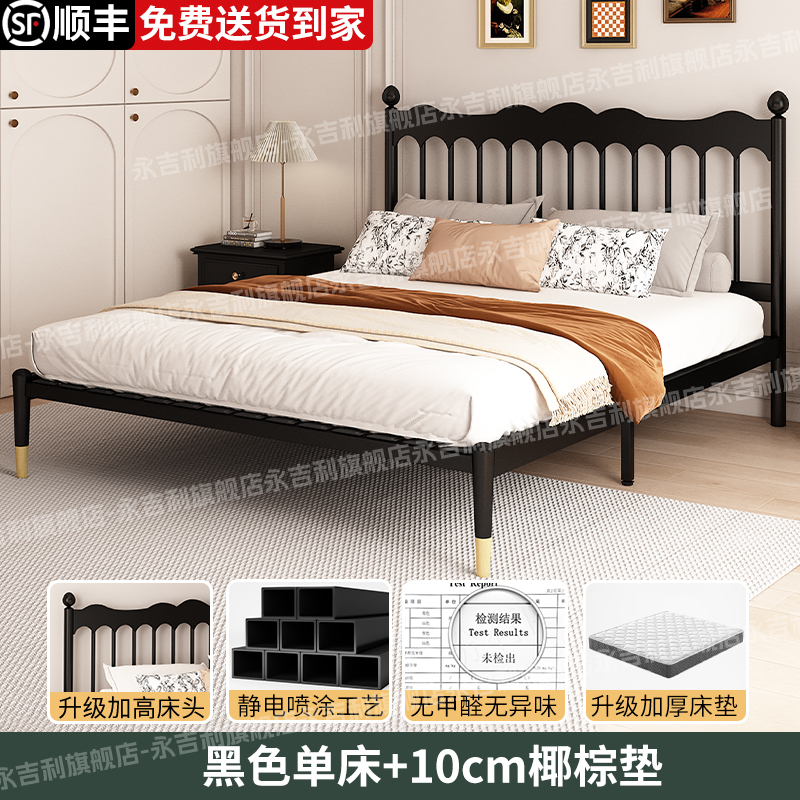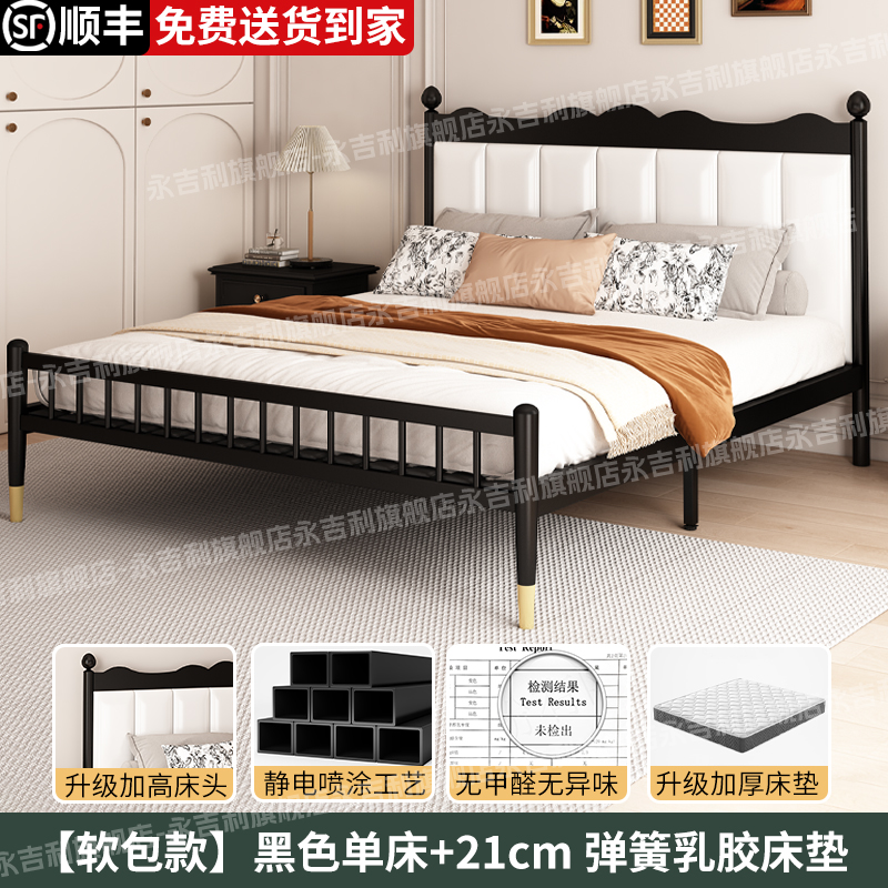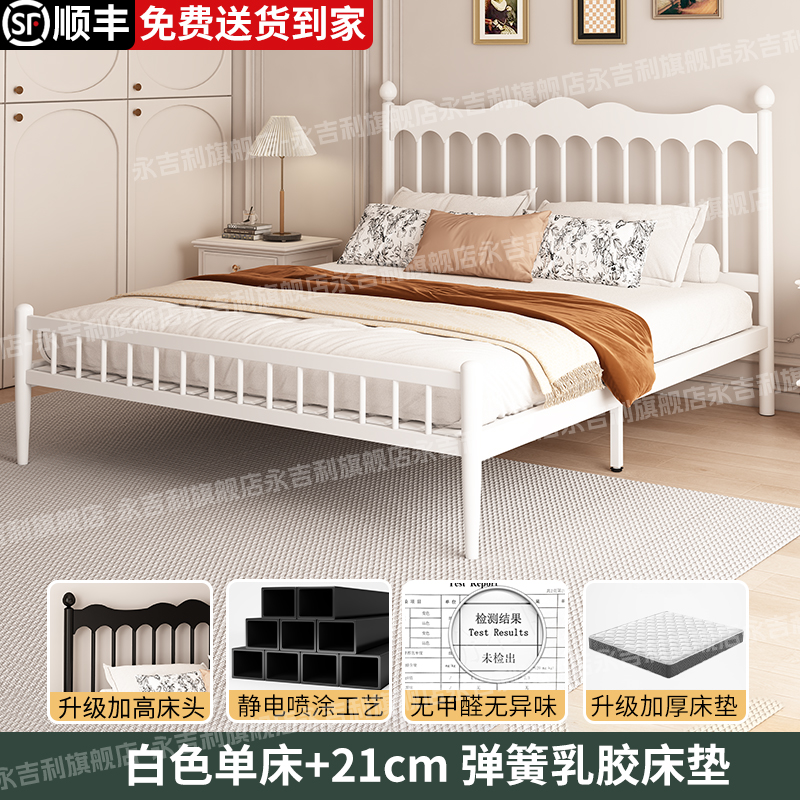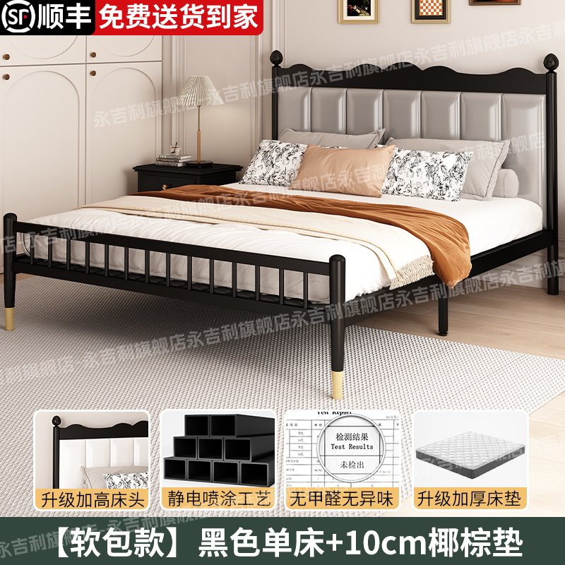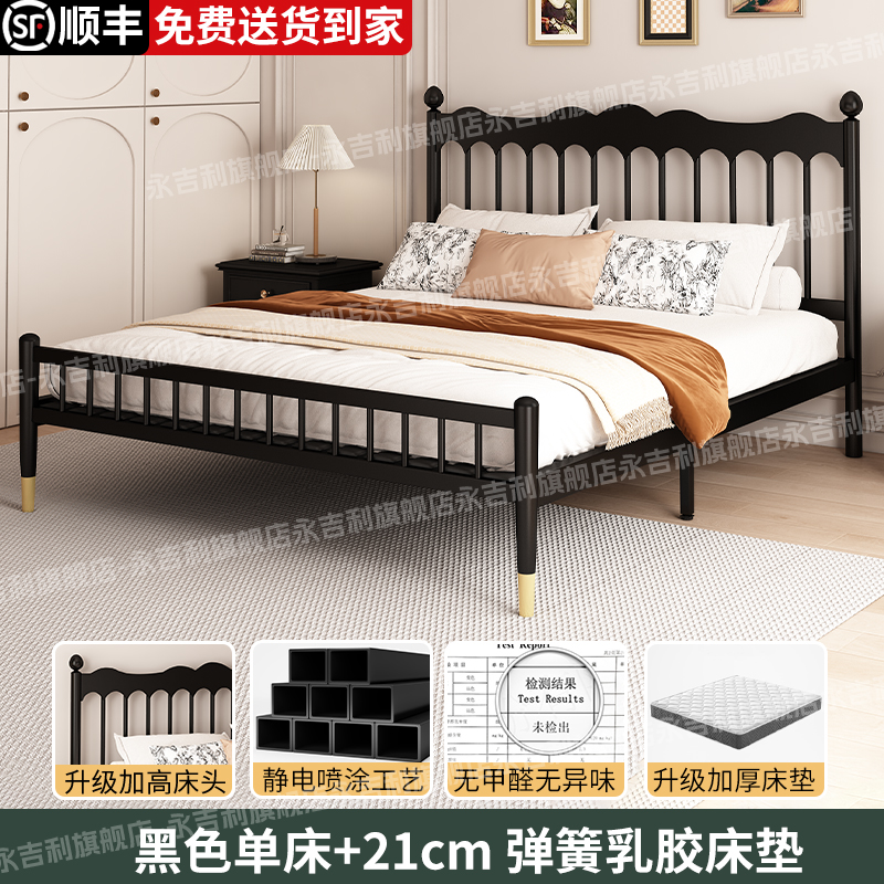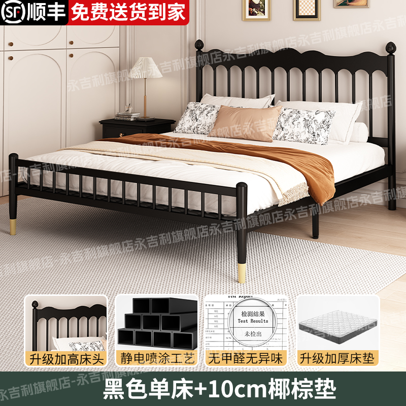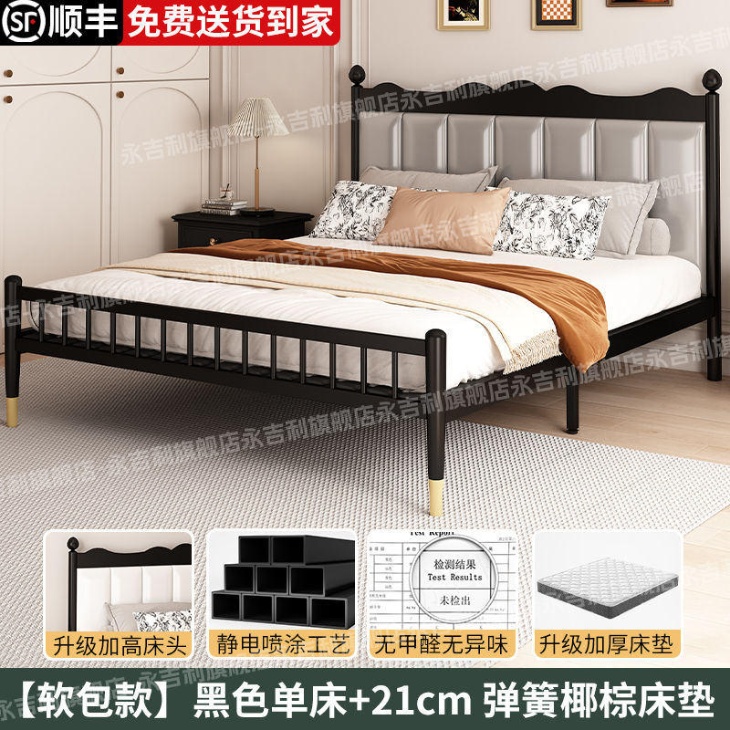 Кованая кровать двуспальная кровать современная простая 1.5m утолщенная армированная железная рама односпальная кровать 1,8 аренда дома детская железная кровать