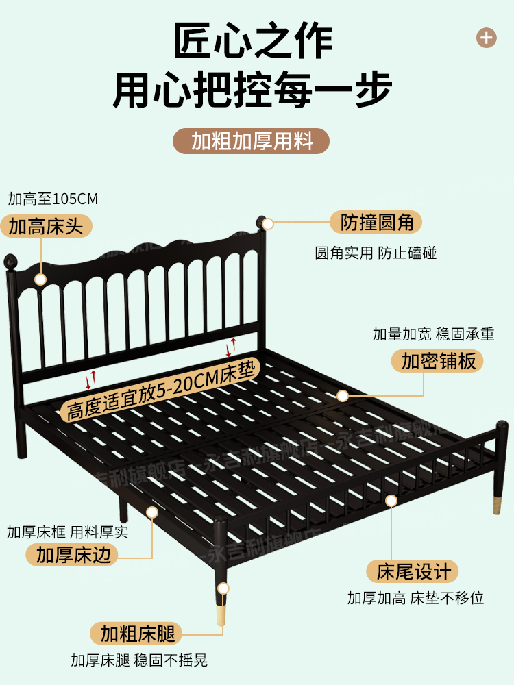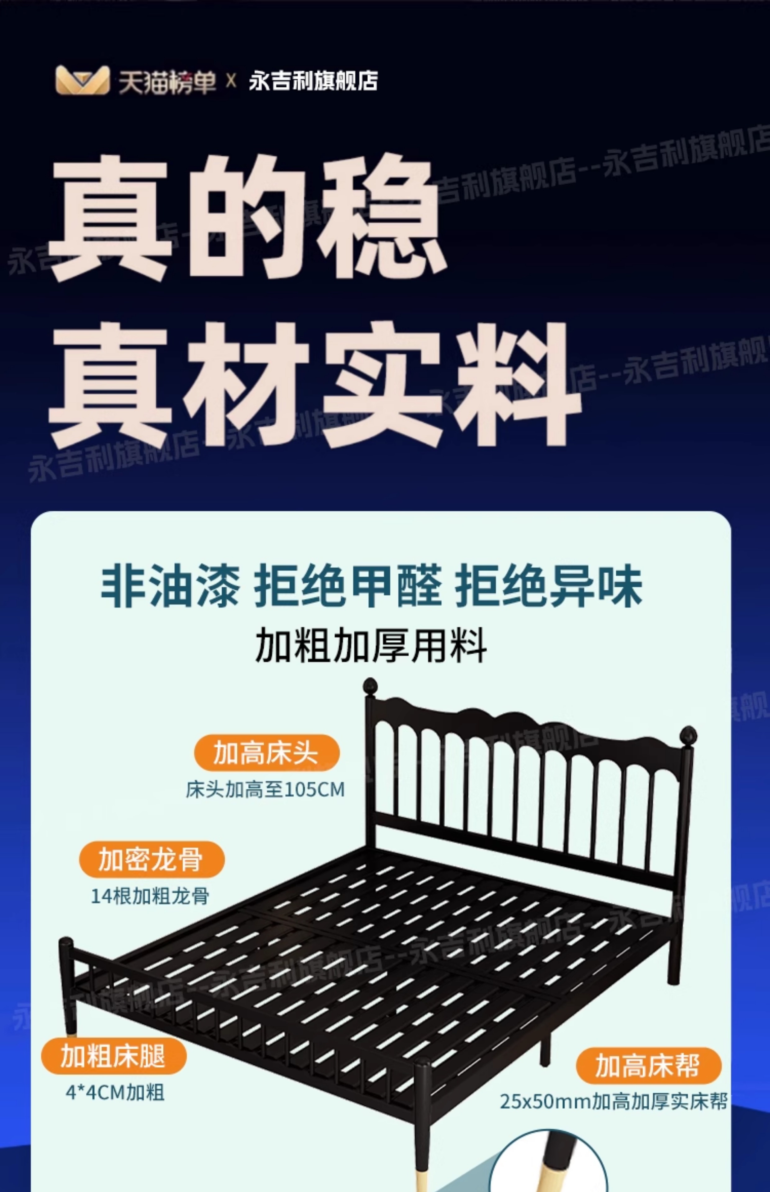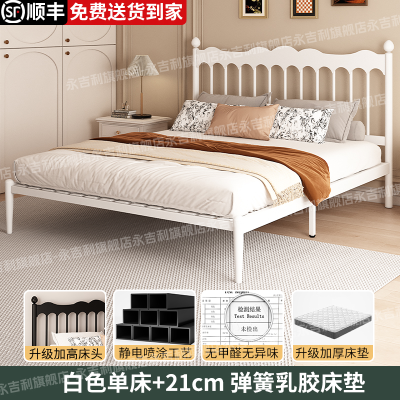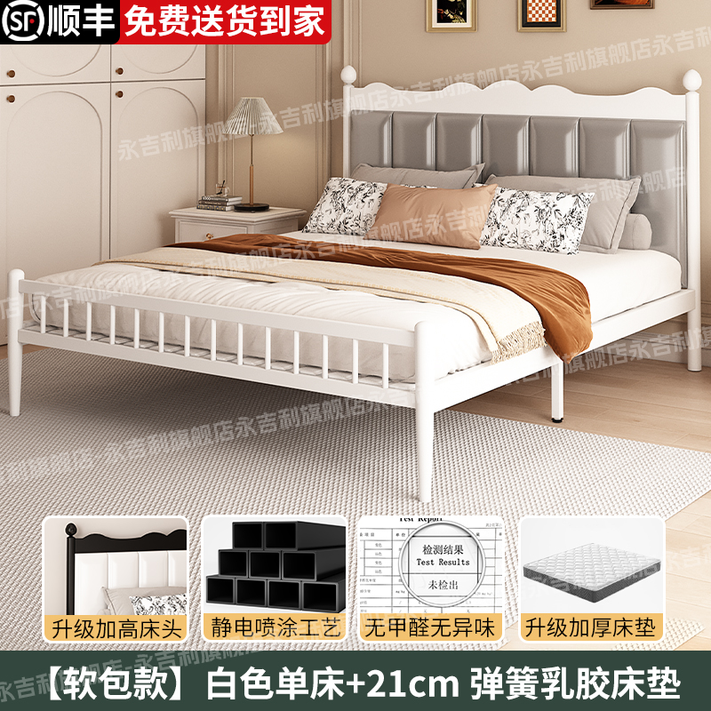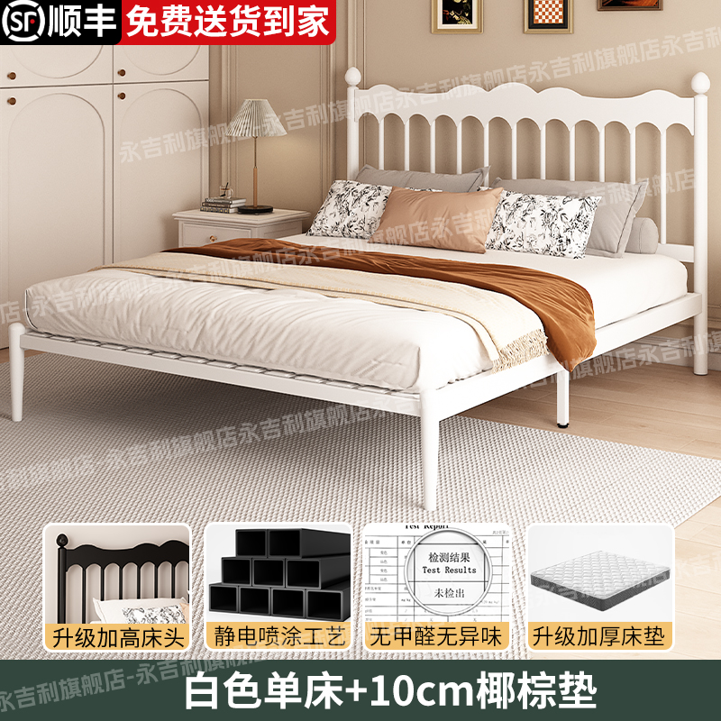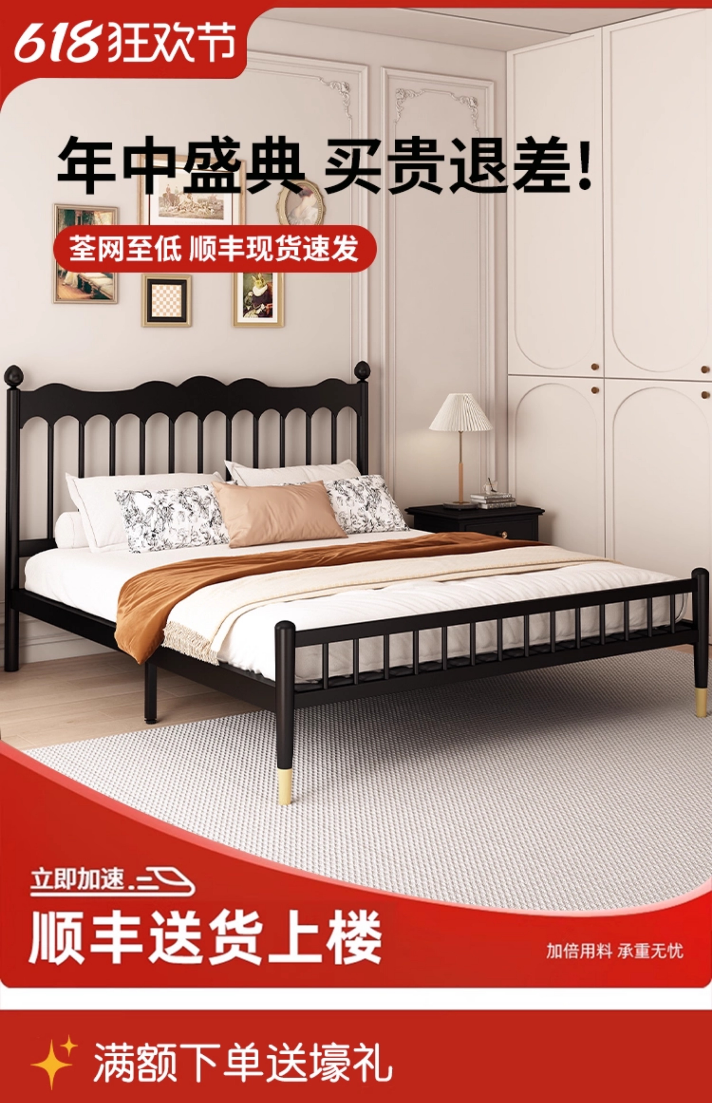 Кованая кровать двуспальная кровать современная простая 1.5m утолщенная армированная железная рама односпальная кровать 1,8 аренда дома детская железная кровать