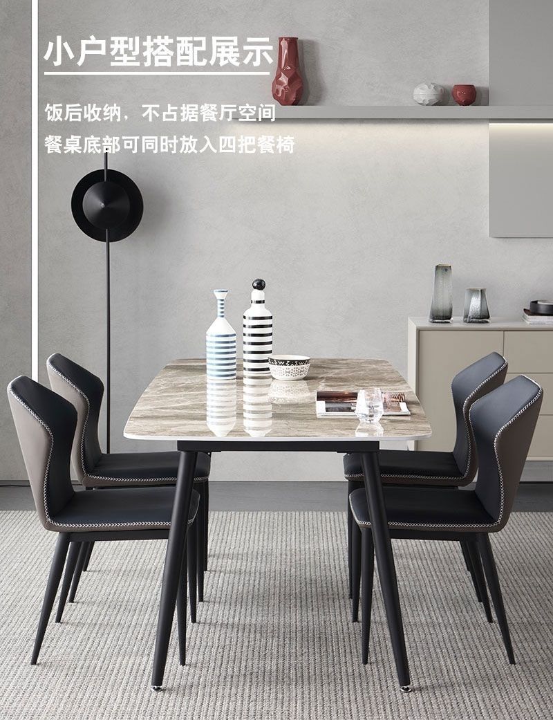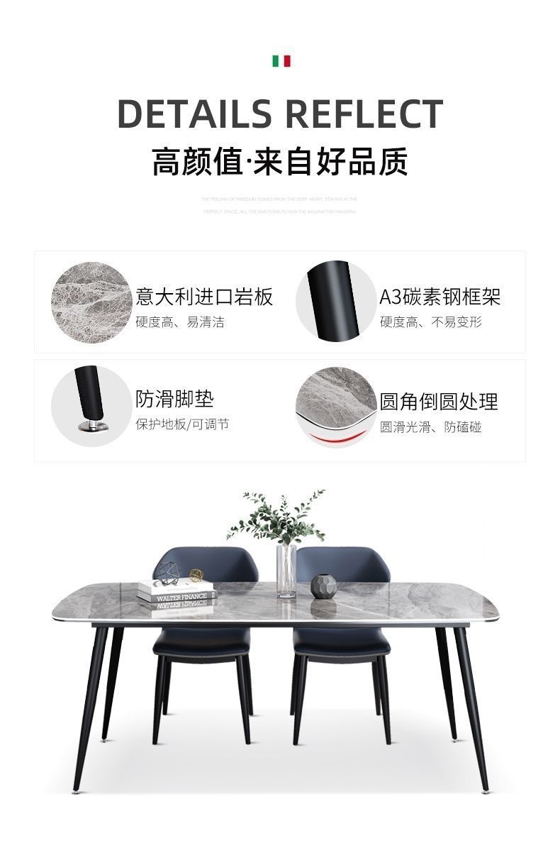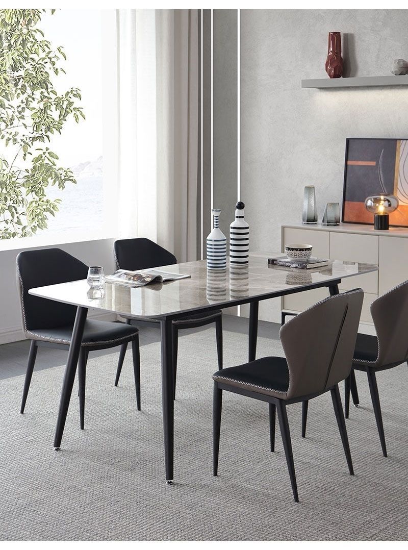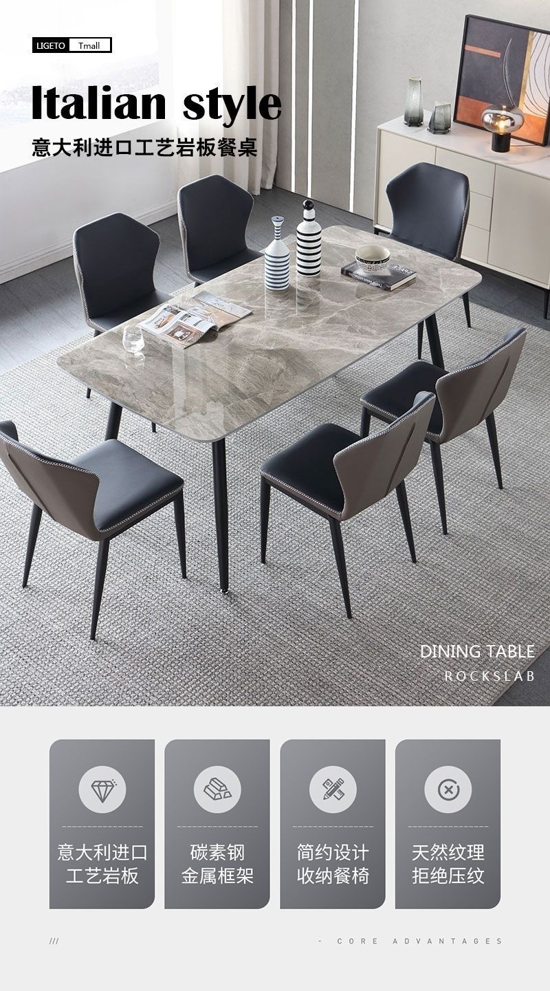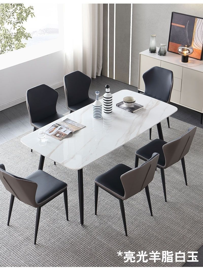 Комбинация обеденного стола и стула из сланца для дома, небольшой квартиры, современный простой, легкий, роскошный итальянский прямоугольный глянцевый обеденный стол