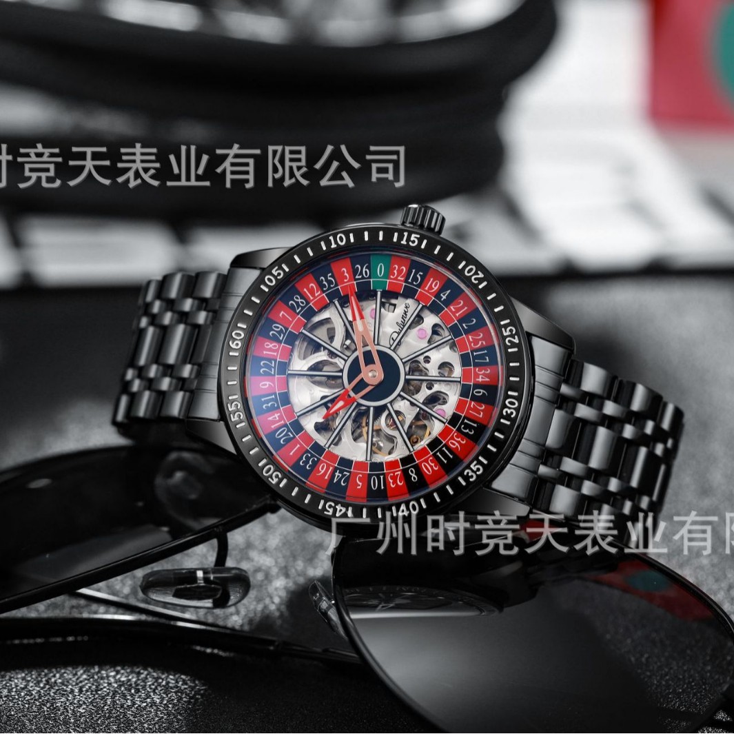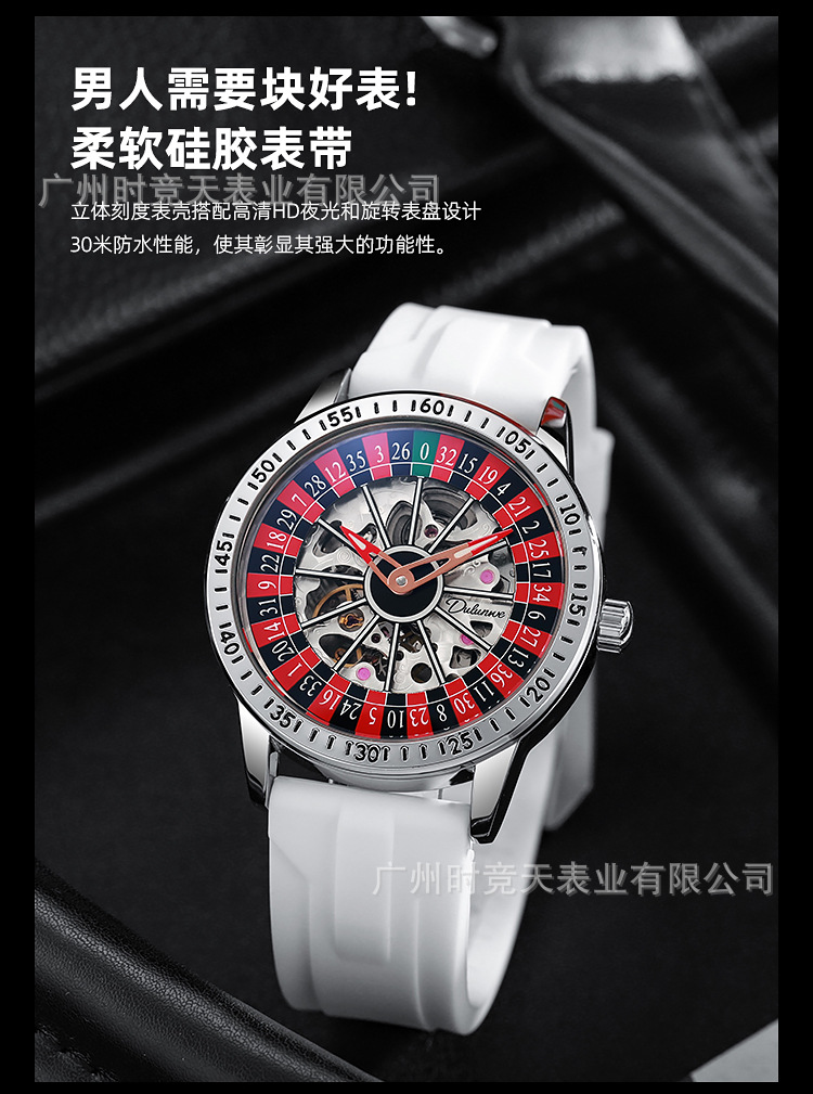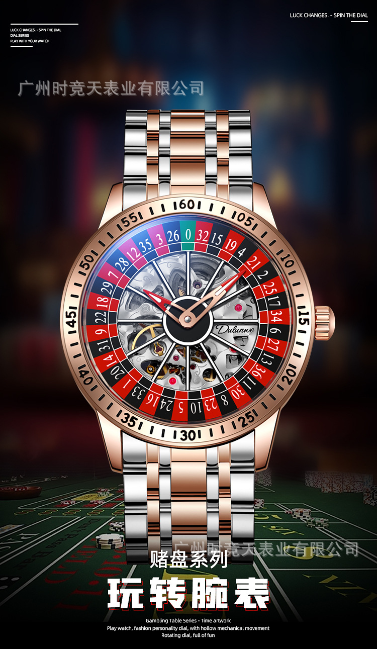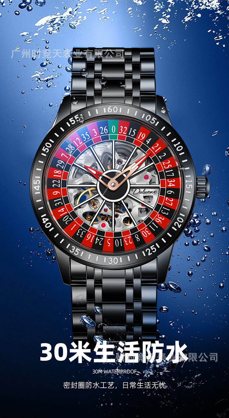 Популярные мужские полностью автоматические механические часы Durunwei с колесом удачи, водонепроницаемые светящиеся модные трендовые часы