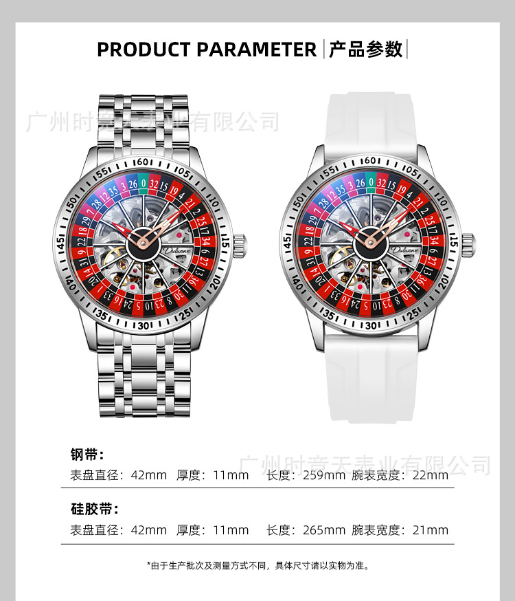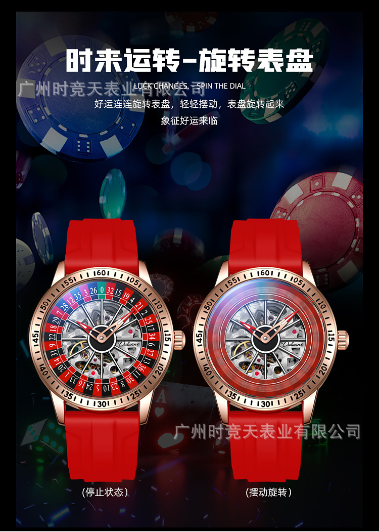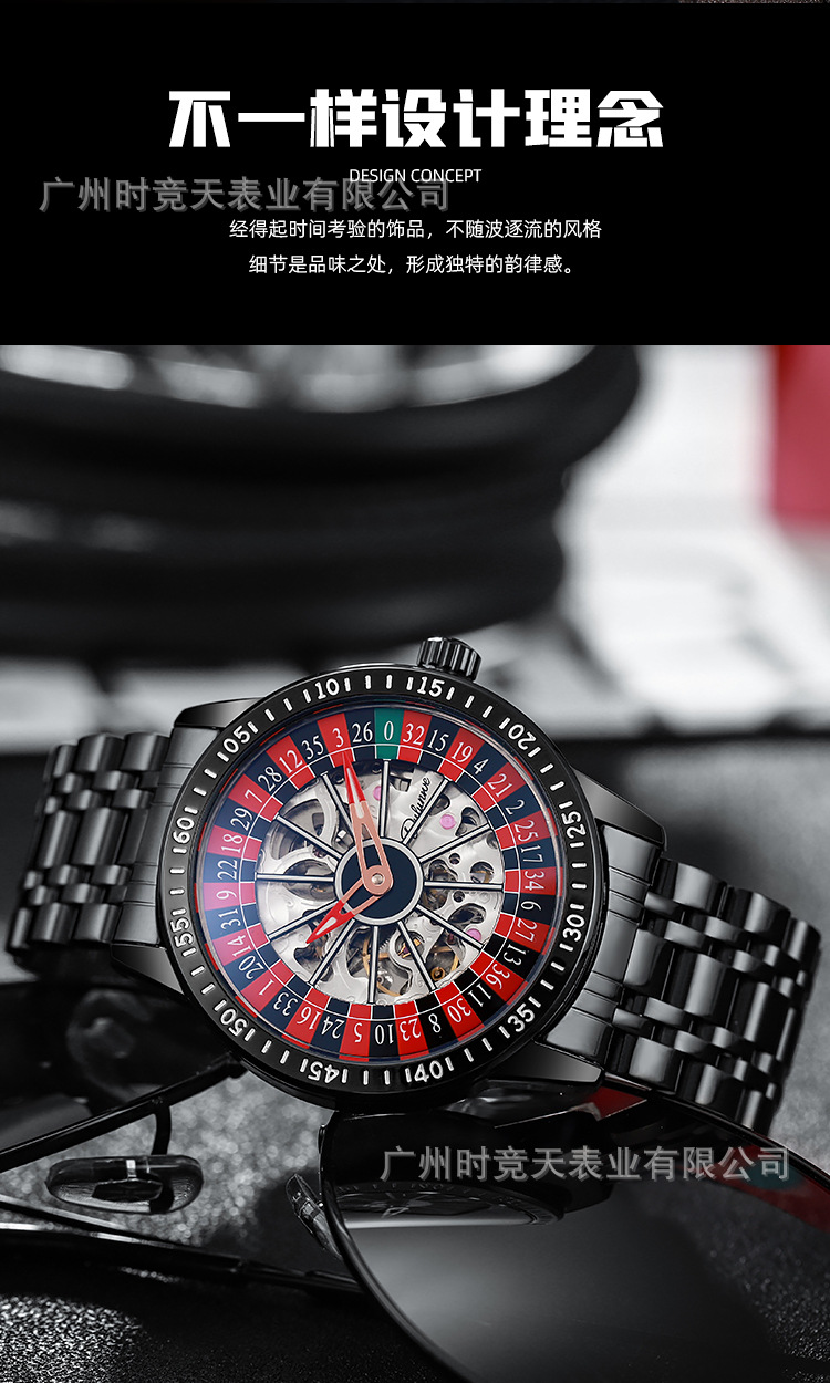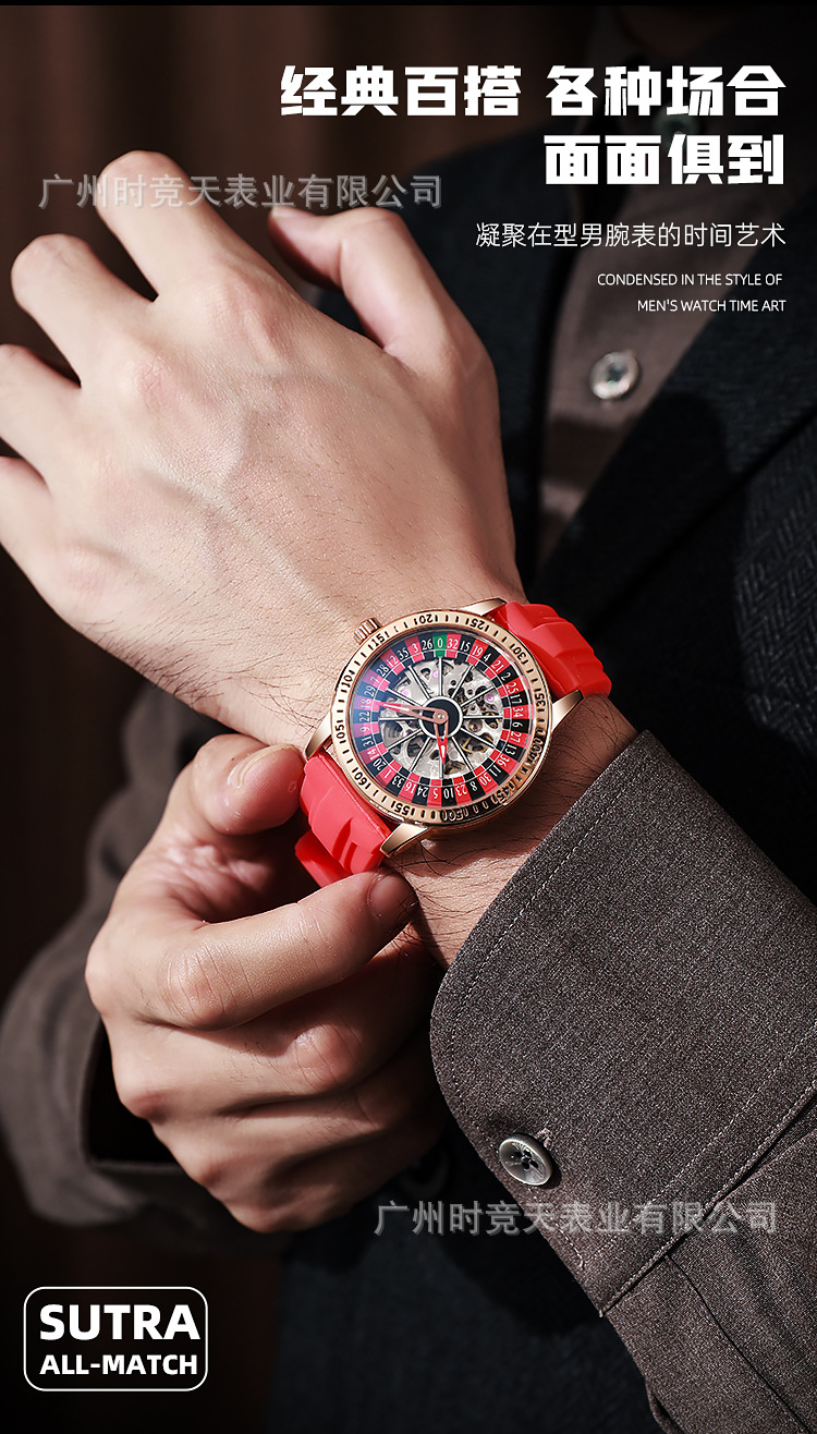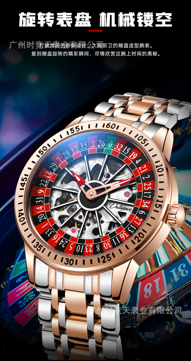 Популярные мужские полностью автоматические механические часы Durunwei с колесом удачи, водонепроницаемые светящиеся модные трендовые часы