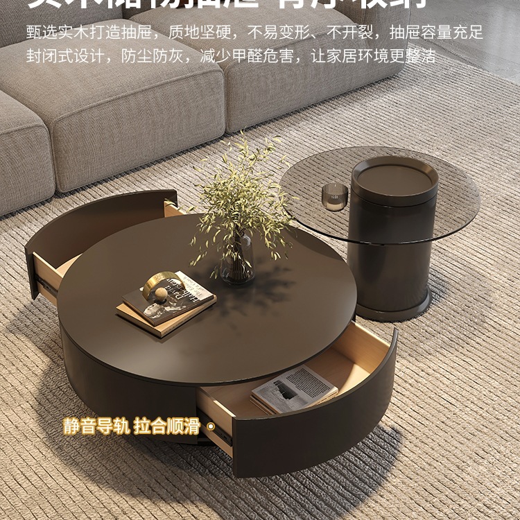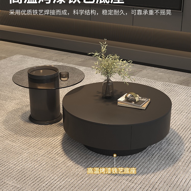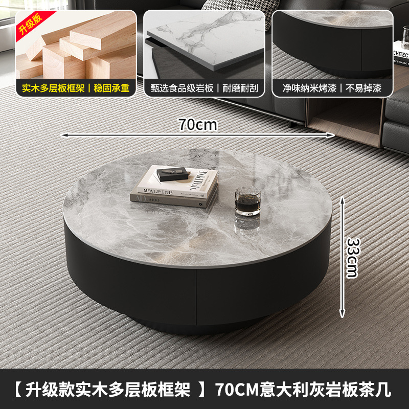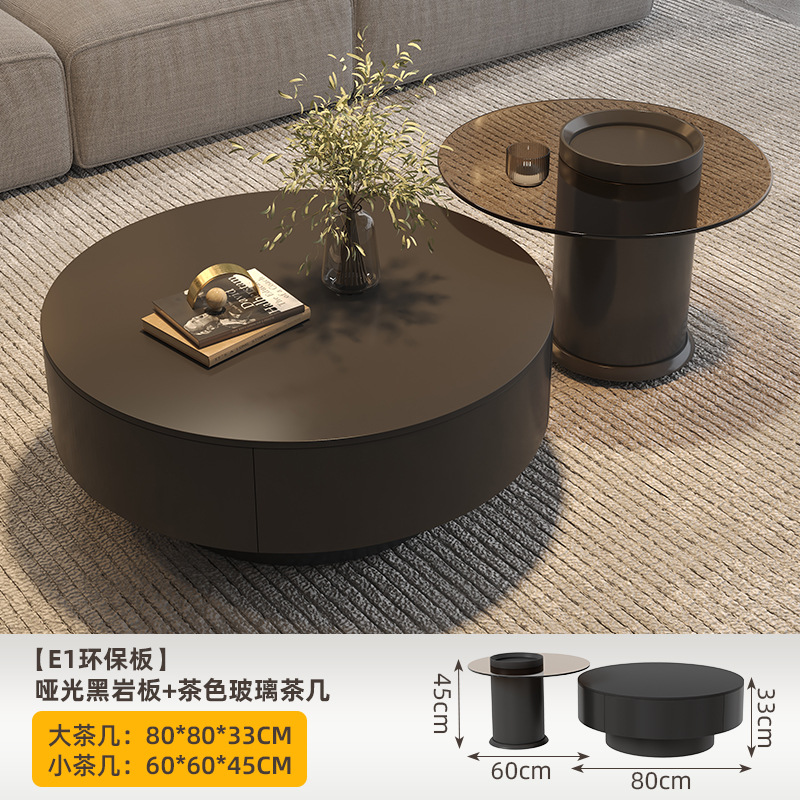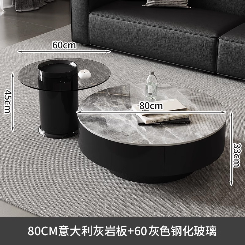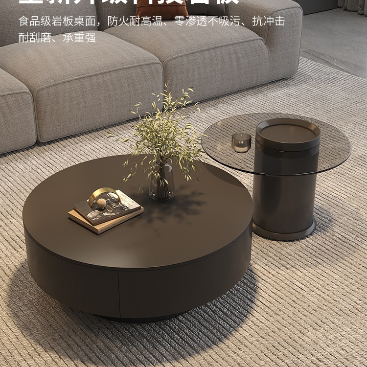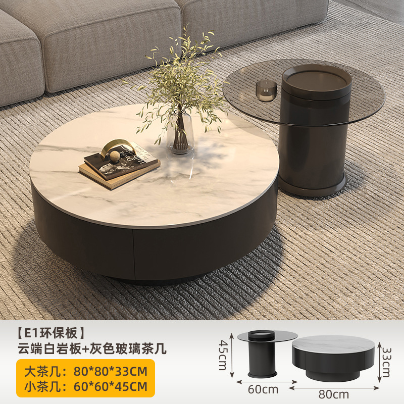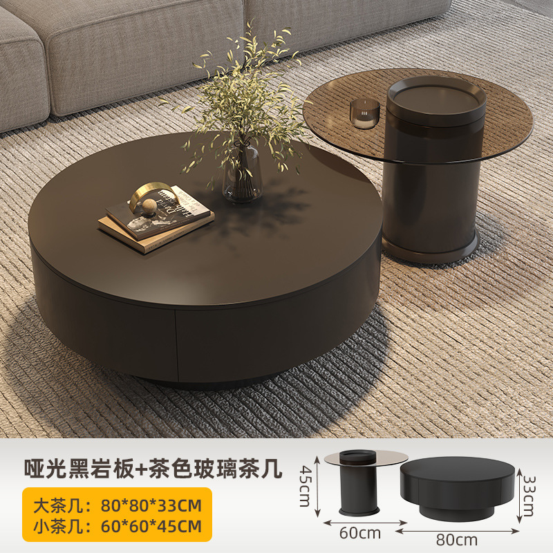 Итальянский легкий роскошный минималистичный журнальный столик из сланца, современная маленькая квартира, гостиная, домашний чайный стеклянный чайный столик, комбинация большого и маленького круглого журнального столика