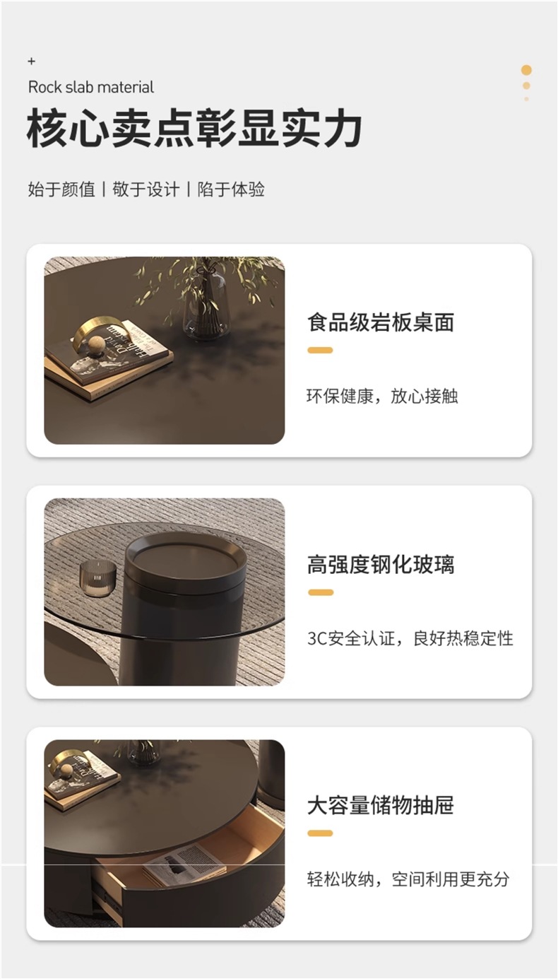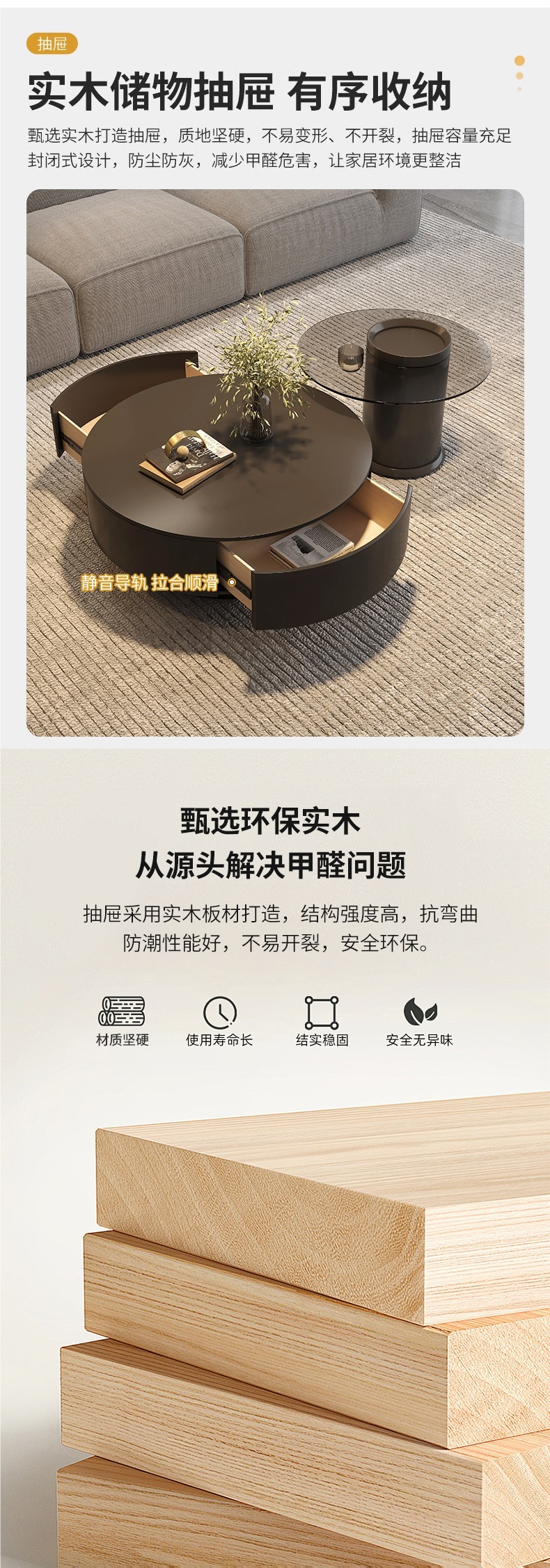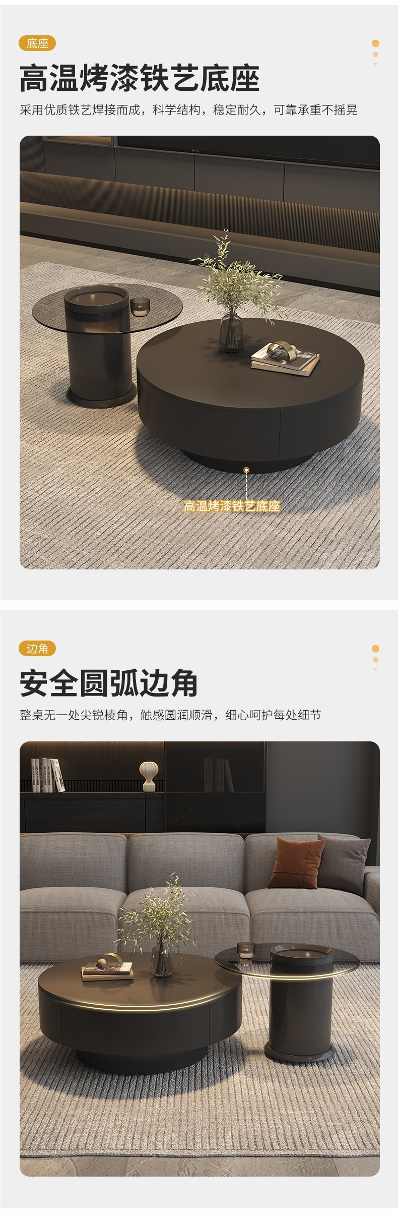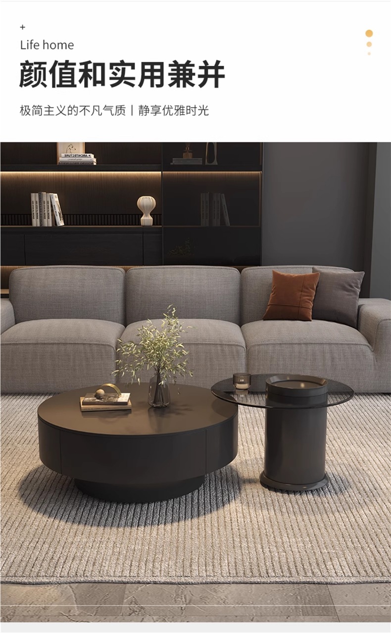 Итальянский легкий роскошный минималистичный журнальный столик из сланца, современная маленькая квартира, гостиная, домашний чайный стеклянный чайный столик, комбинация большого и маленького круглого журнального столика
