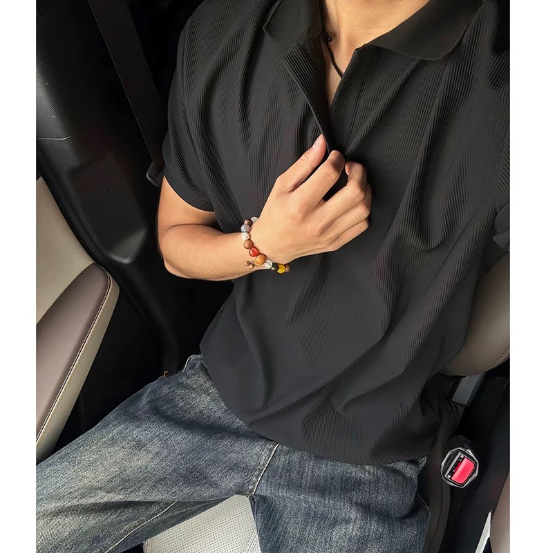 【Хит TikTok】Мужская футболка-поло в американском стиле с воротником-стойкой, короткий рукав, деловой повседневный трикотажный эластичный топ