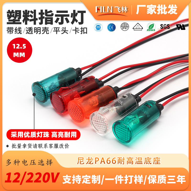 12,5 мм светодиодный пластиковый индикатор с линейным сигнальным светом 12V220V оптом (FL1P-12.5QW-1)