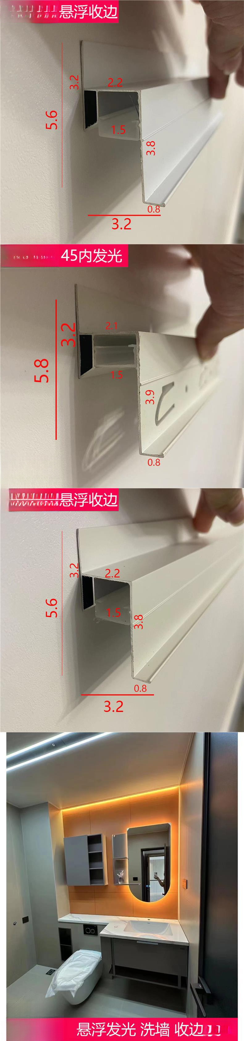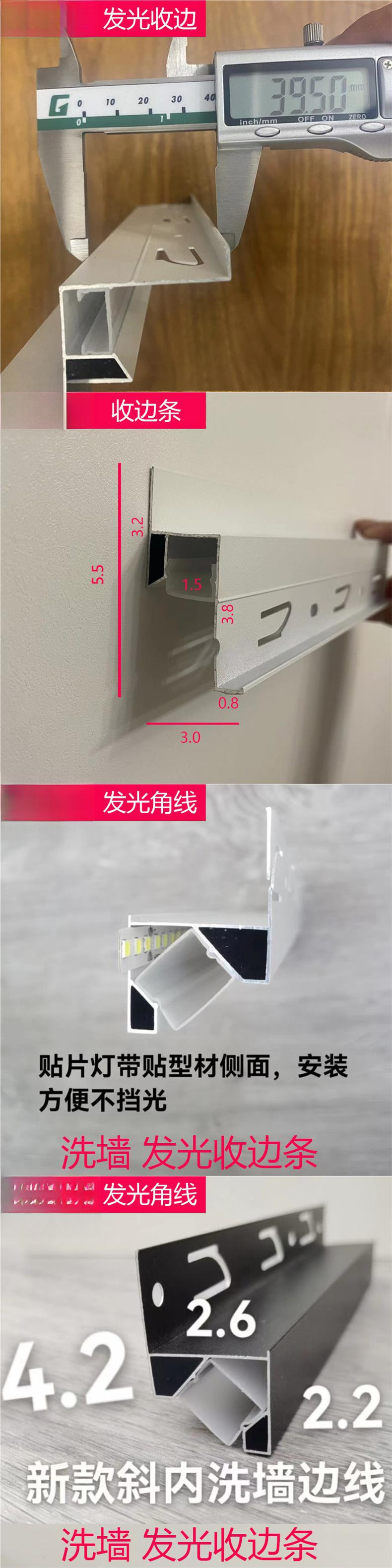 Настенная кромка для мойки, сотовая, большая панель, светящаяся угловая линия, маленькая квадратная трубка, внутренняя светящаяся потолочная мойка, алюминиевая кромка, черная
