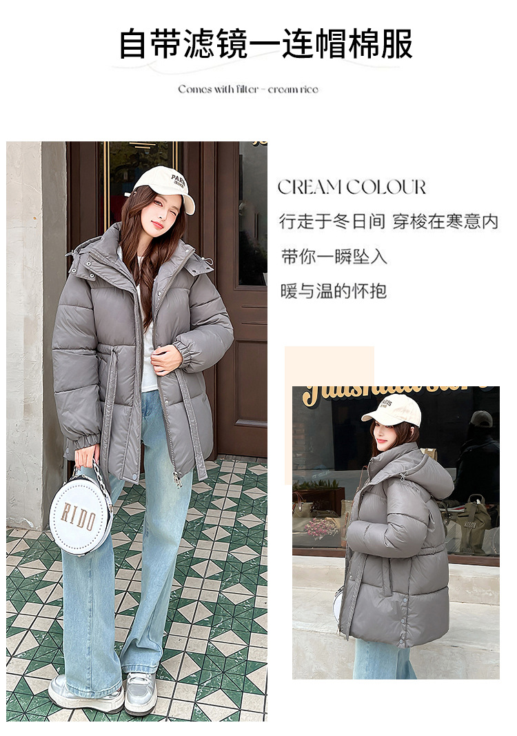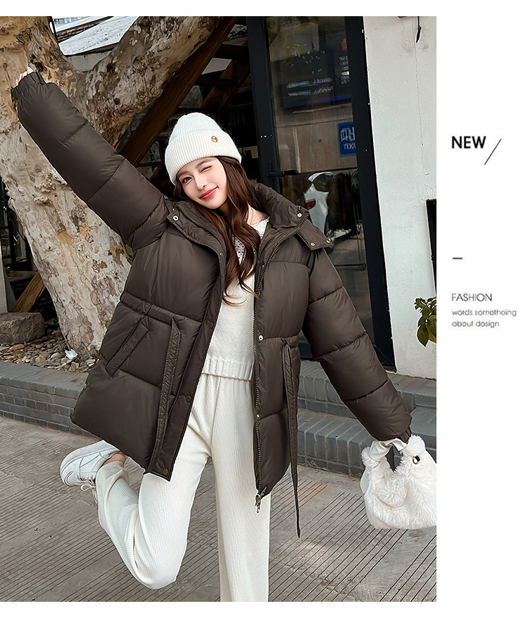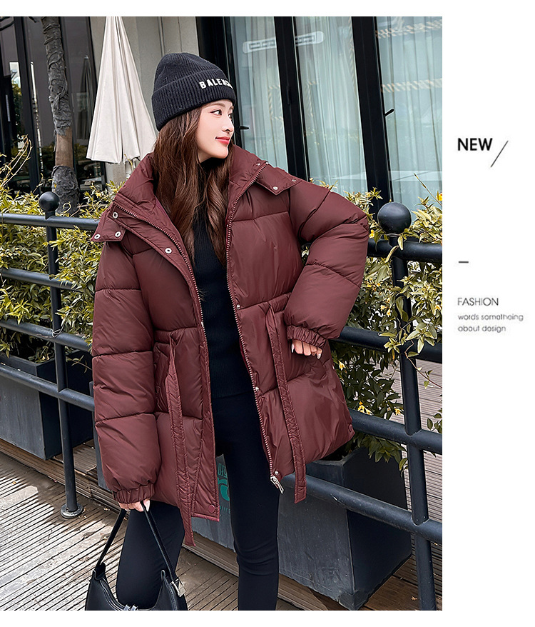 2025 новая зимняя куртка средней длины в корейском стиле, утепленная, свободного кроя, с эффектом стройности талии, хлопковая куртка для интернет-знаменитостей