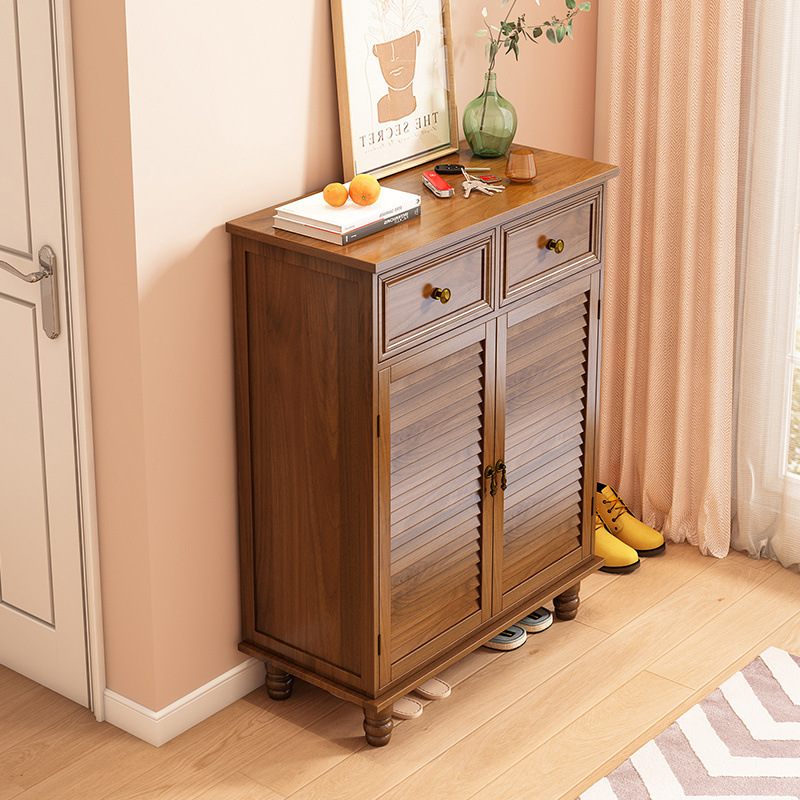 Шкаф для обуви в американском стиле, бытовой входной шкаф большой вместимости, чистое массивное дерево, специальная цена для хранения, экономичный многослойный входной встроенный шкаф