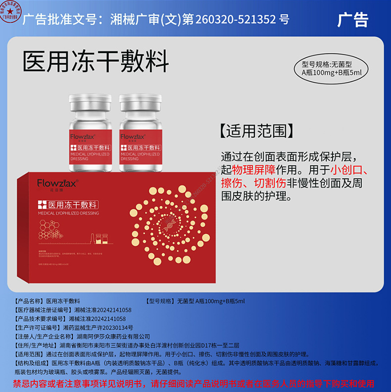 Медицинский лиофилизированный порошок для активного лазерного ухода за кожей после процедур, восстанавливающий кожный барьер, лиофилизированная повязка, медицинское изделие, бренд лиофилизированного порошка