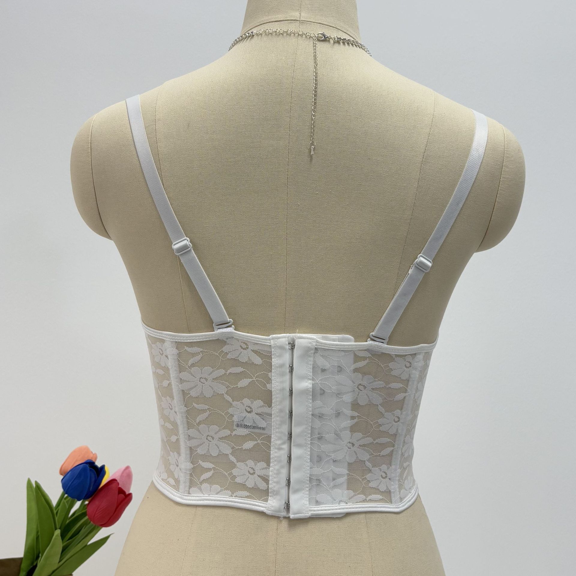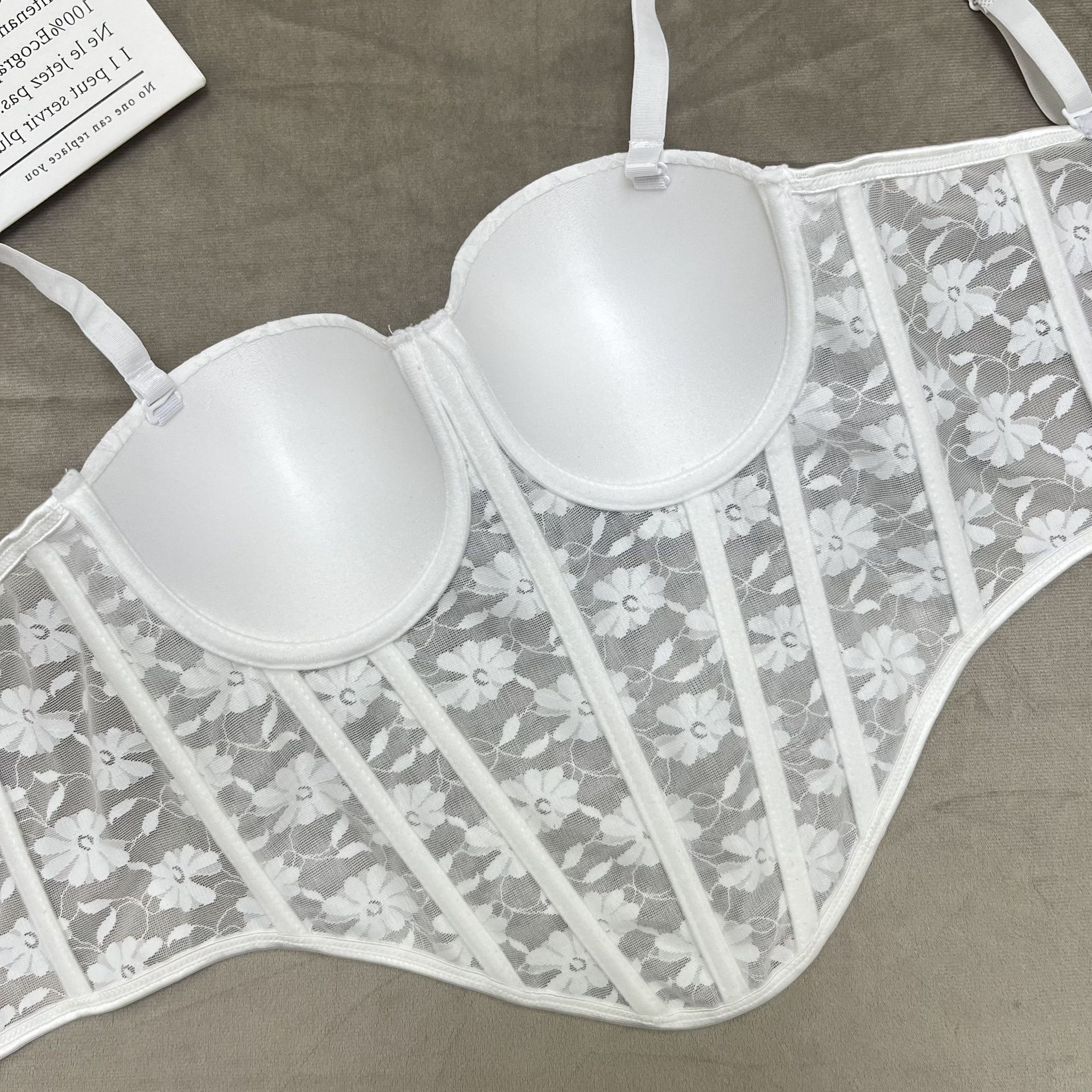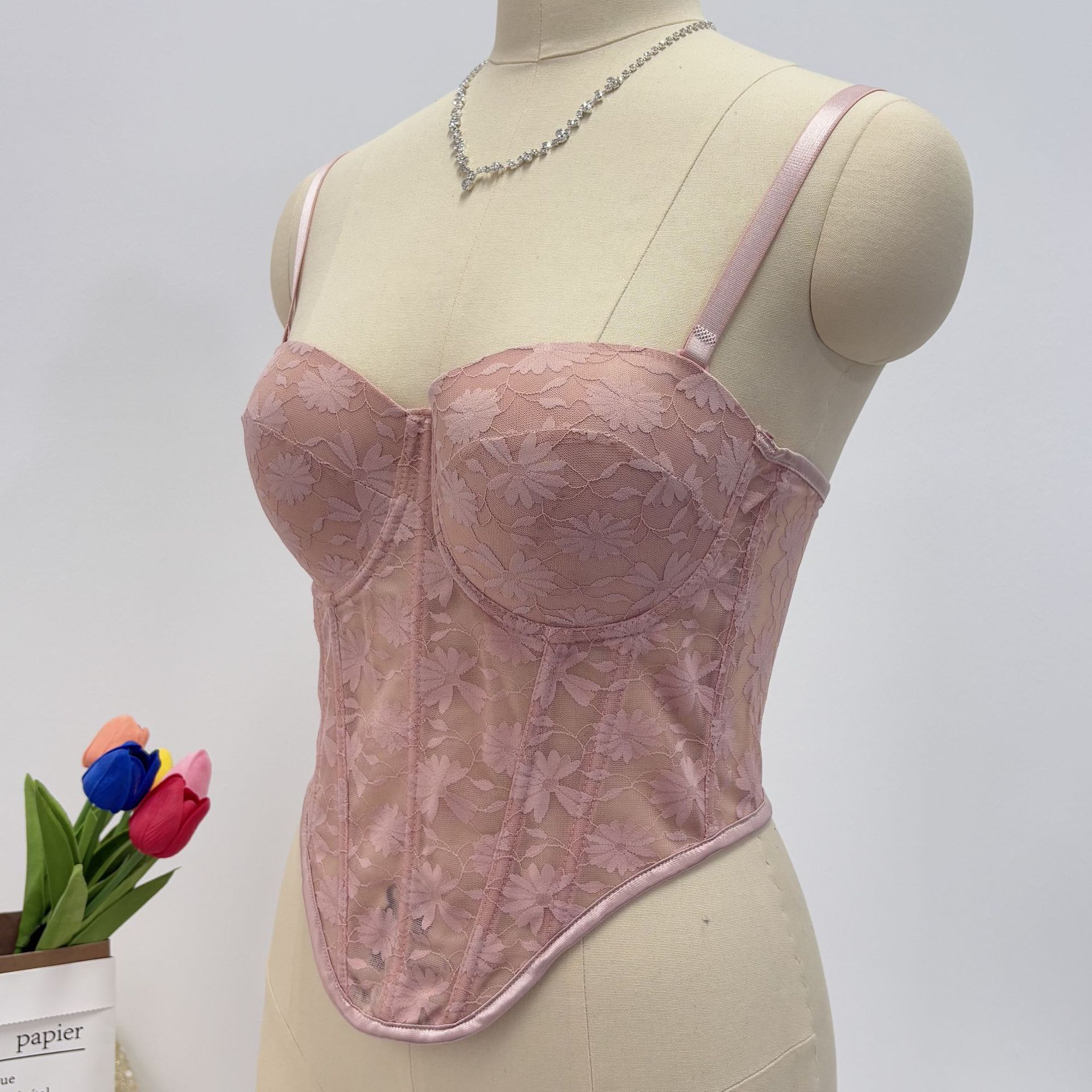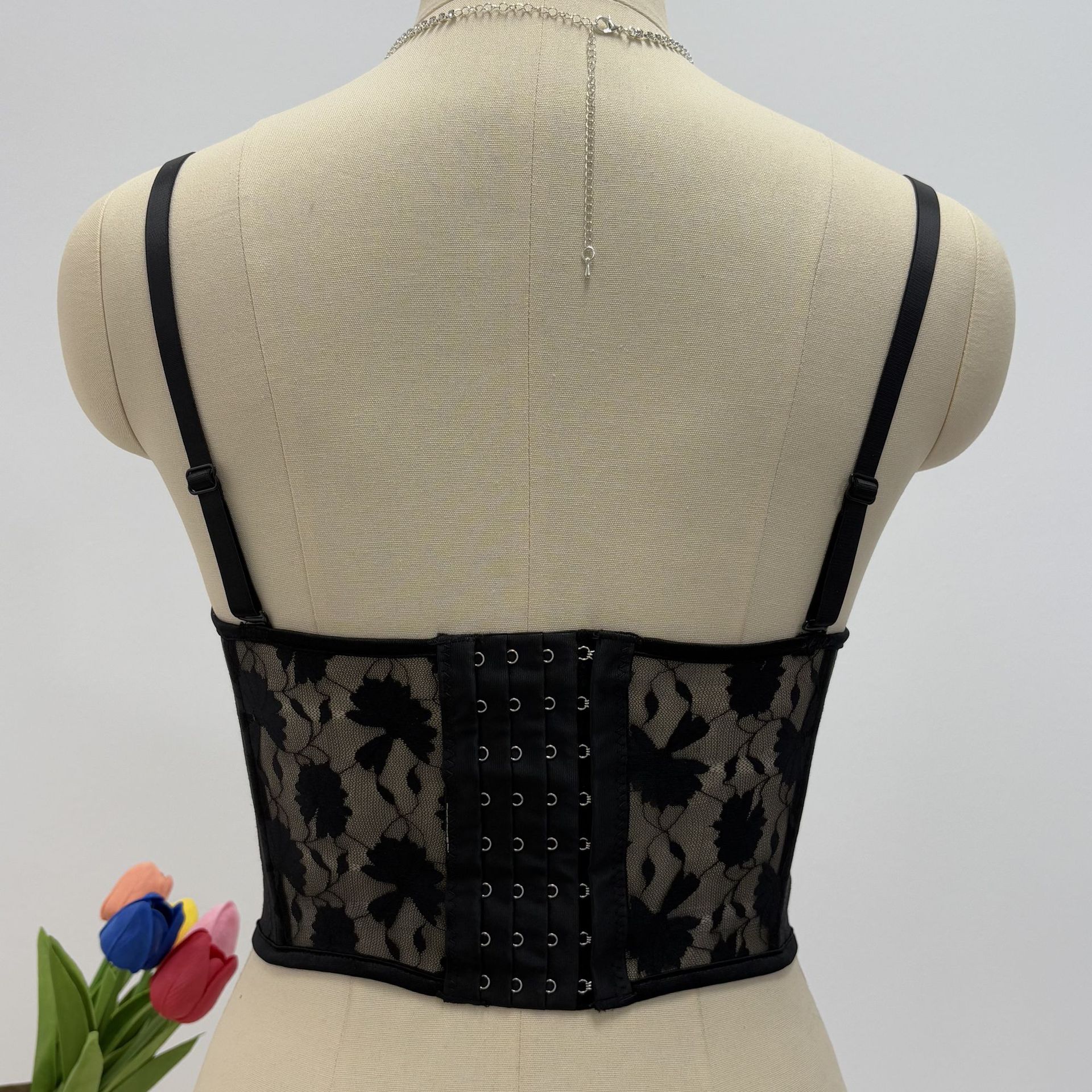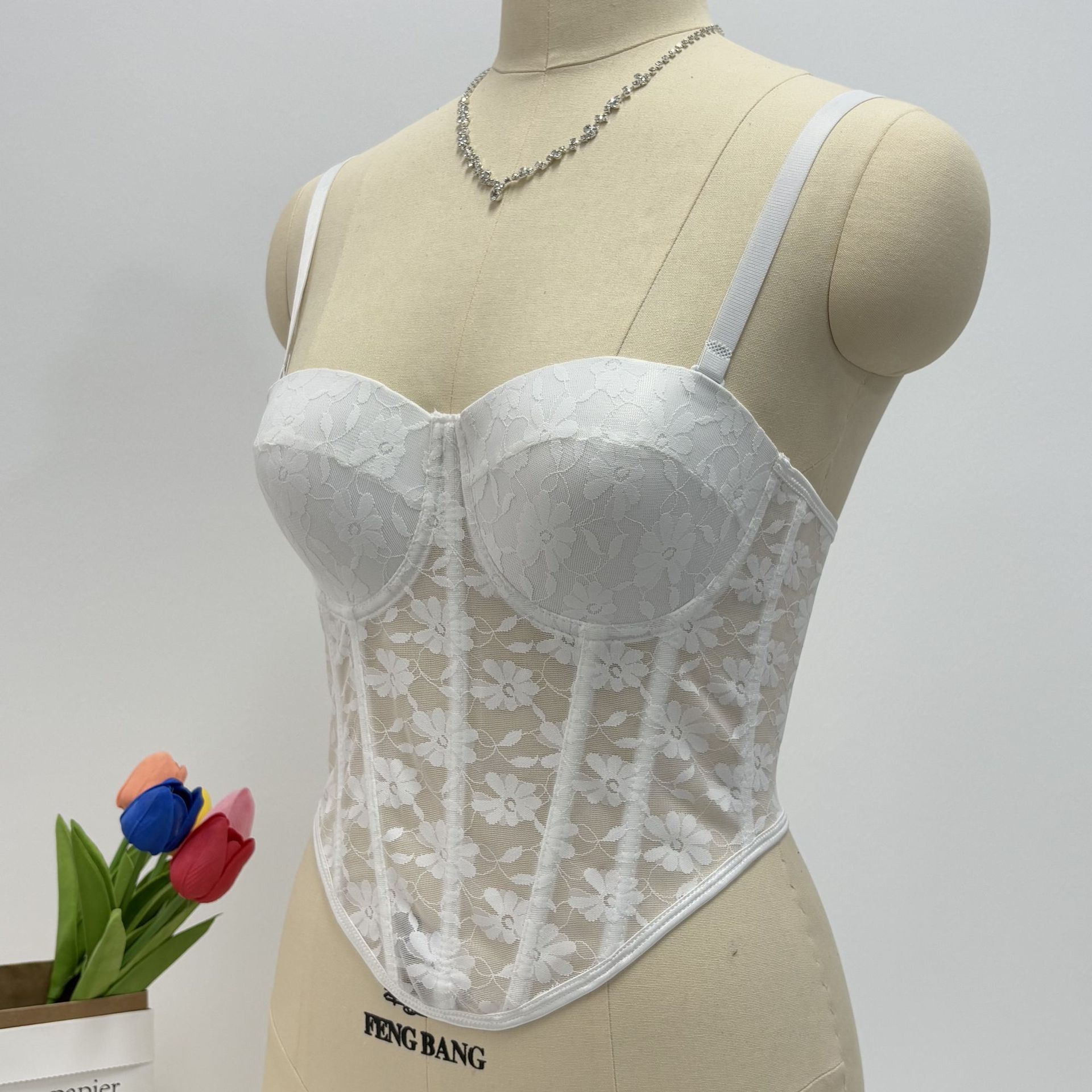 批发定制网纱透视鱼骨胸衣提花蕾丝女背心外贸性感吊带马甲式文胸