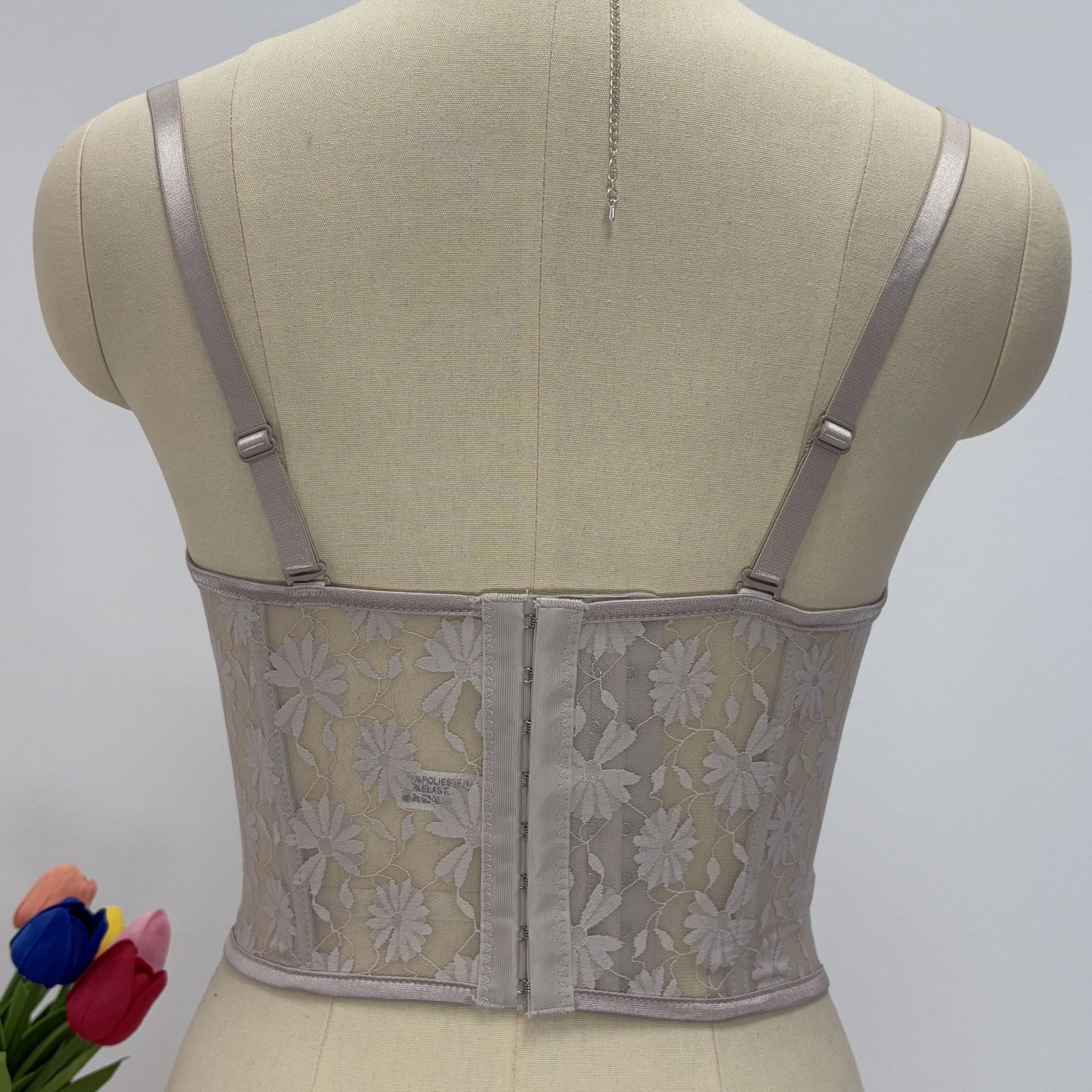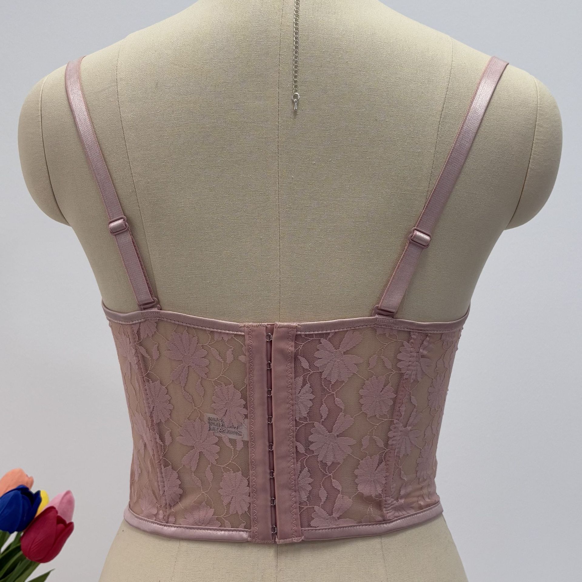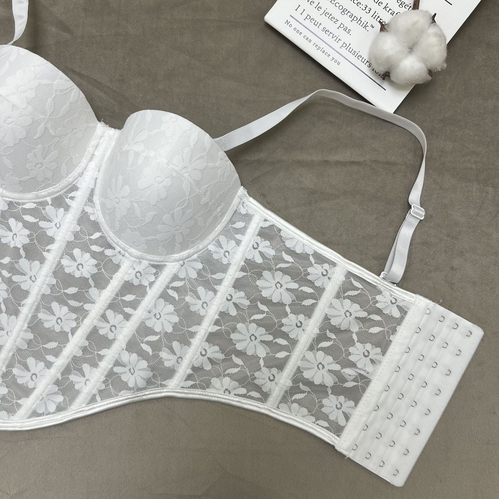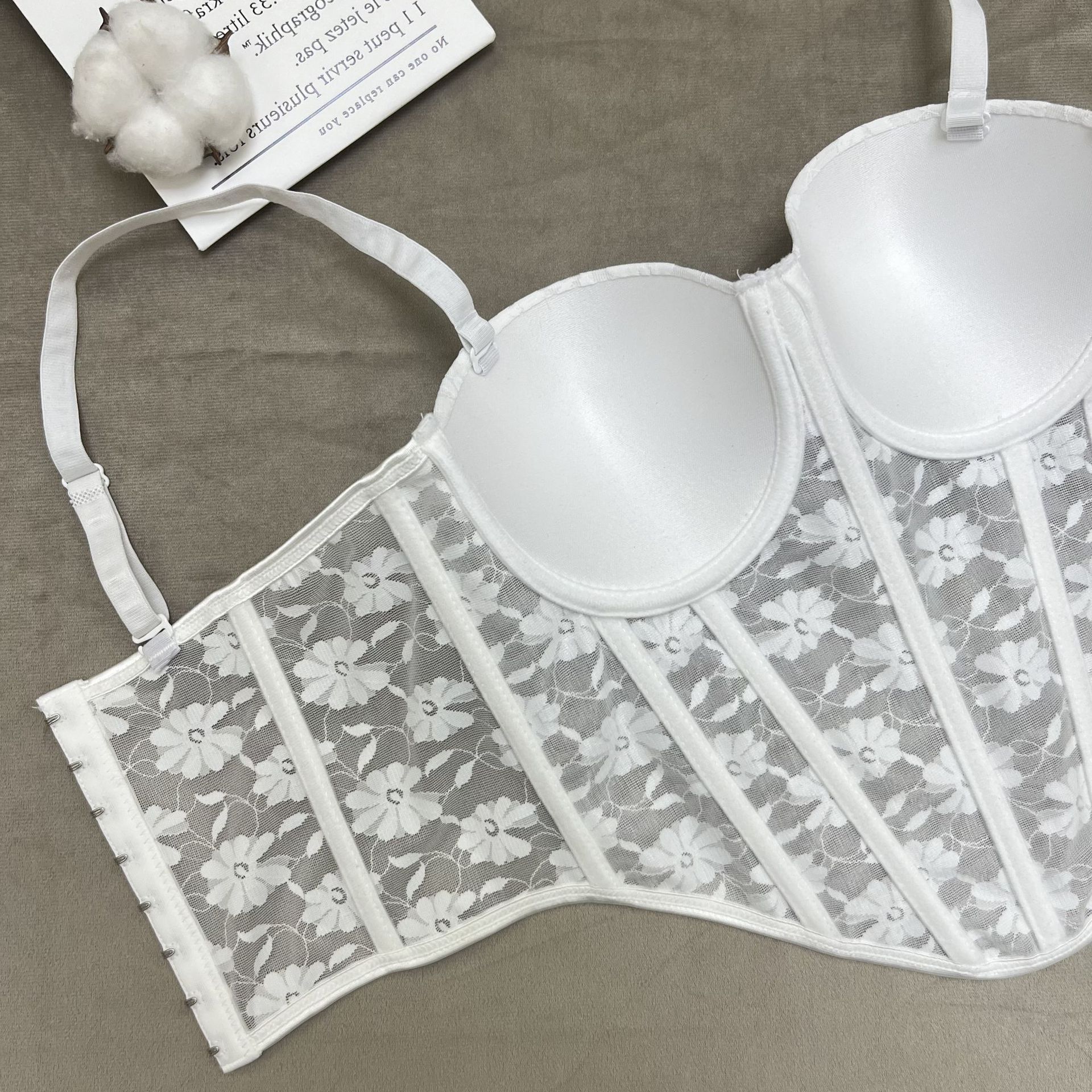 批发定制网纱透视鱼骨胸衣提花蕾丝女背心外贸性感吊带马甲式文胸