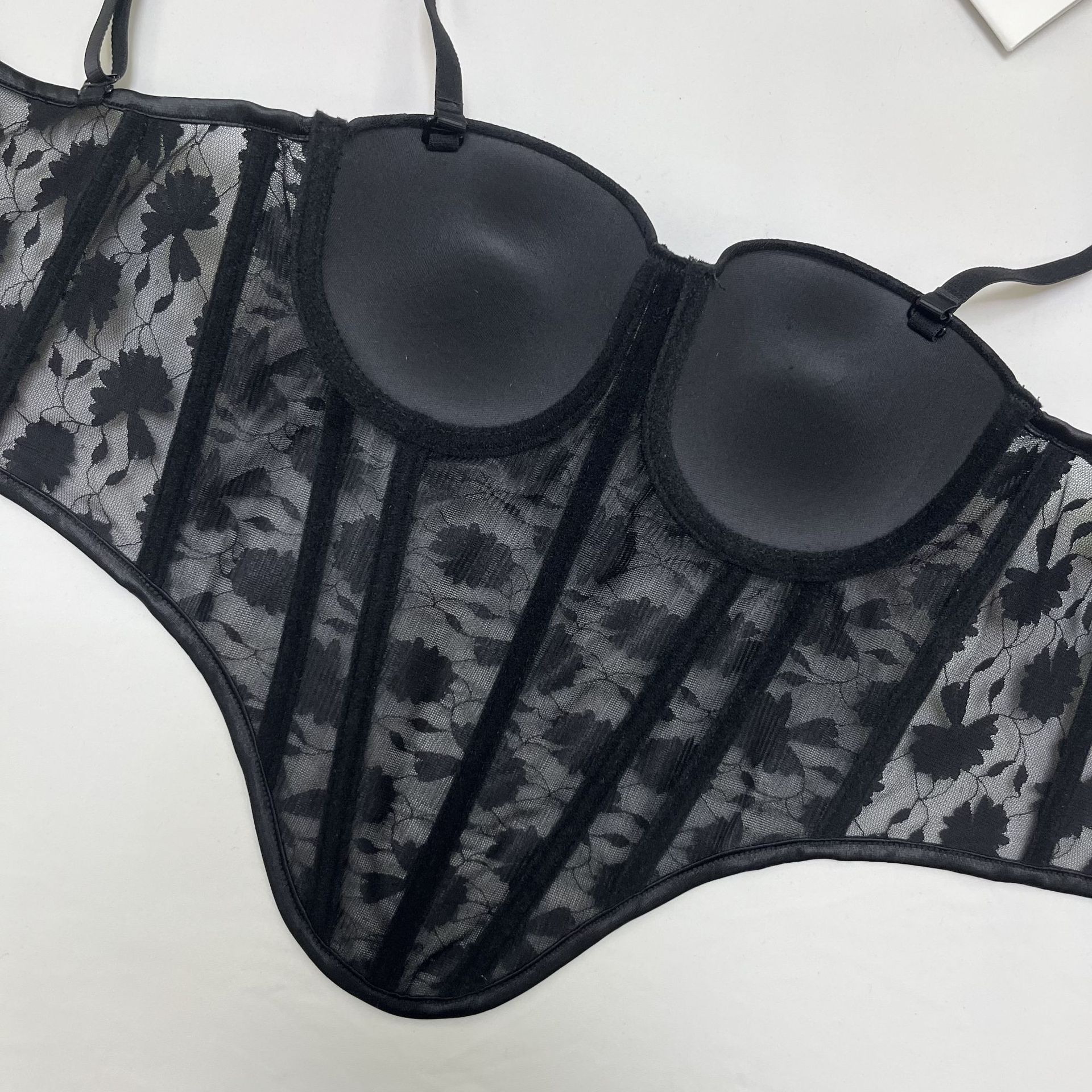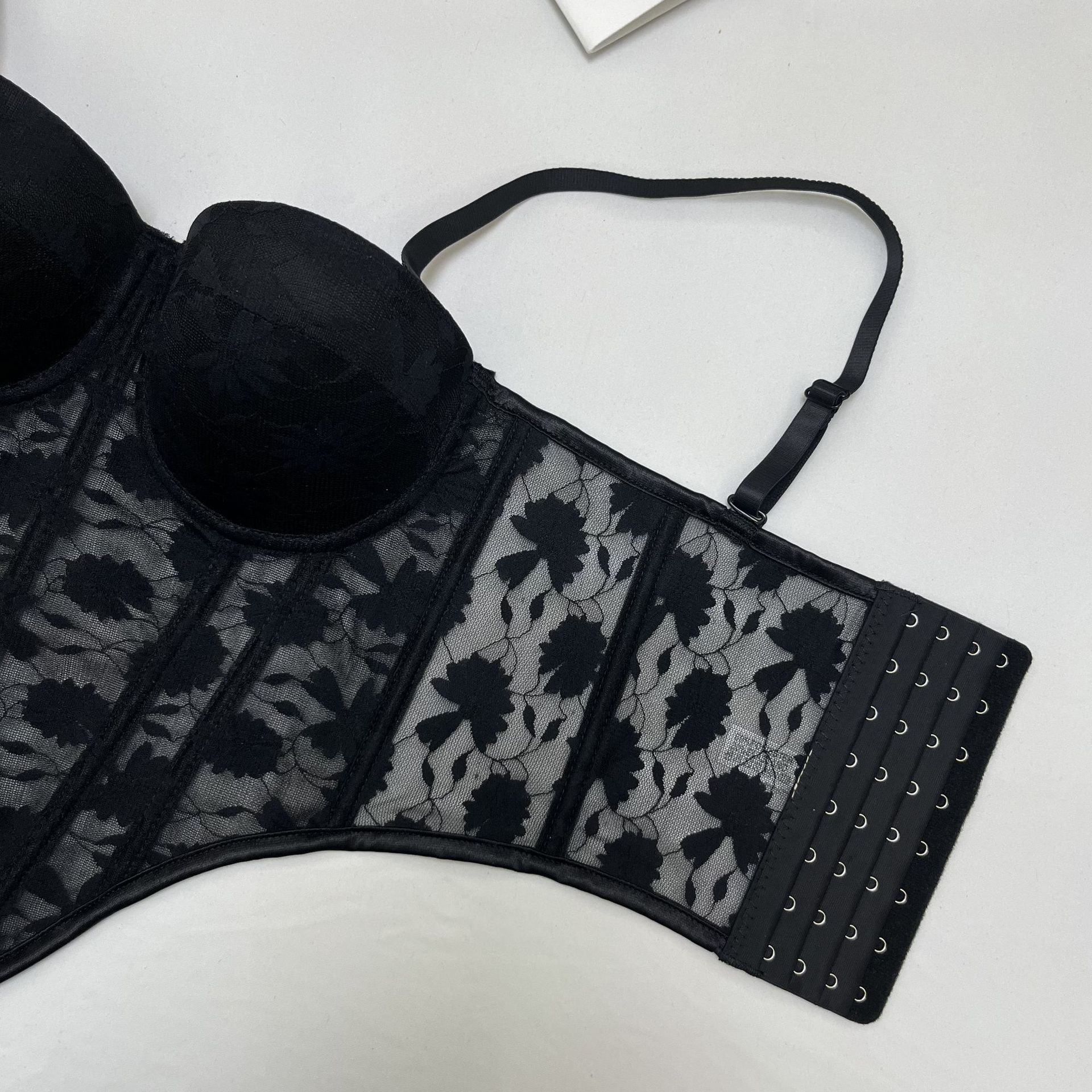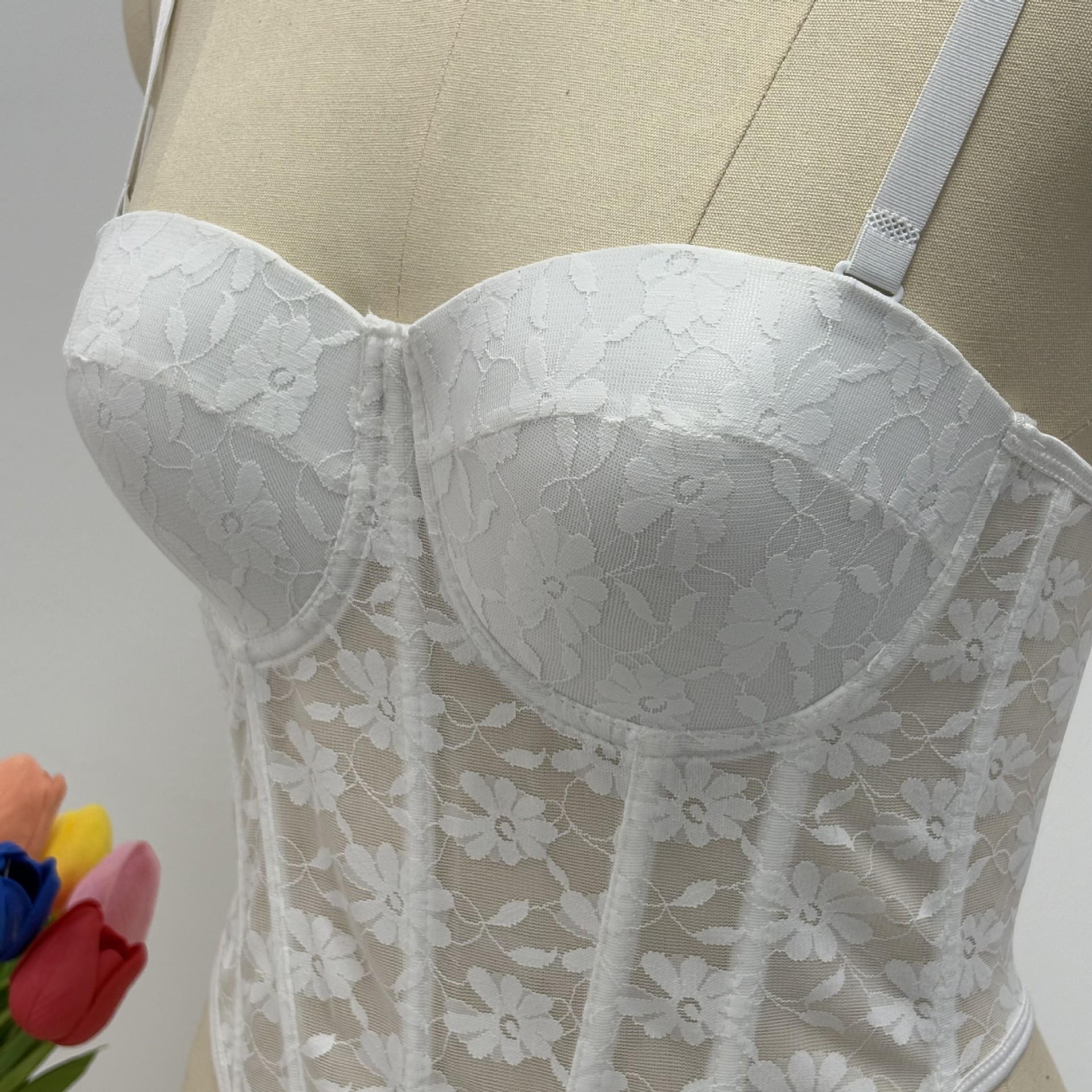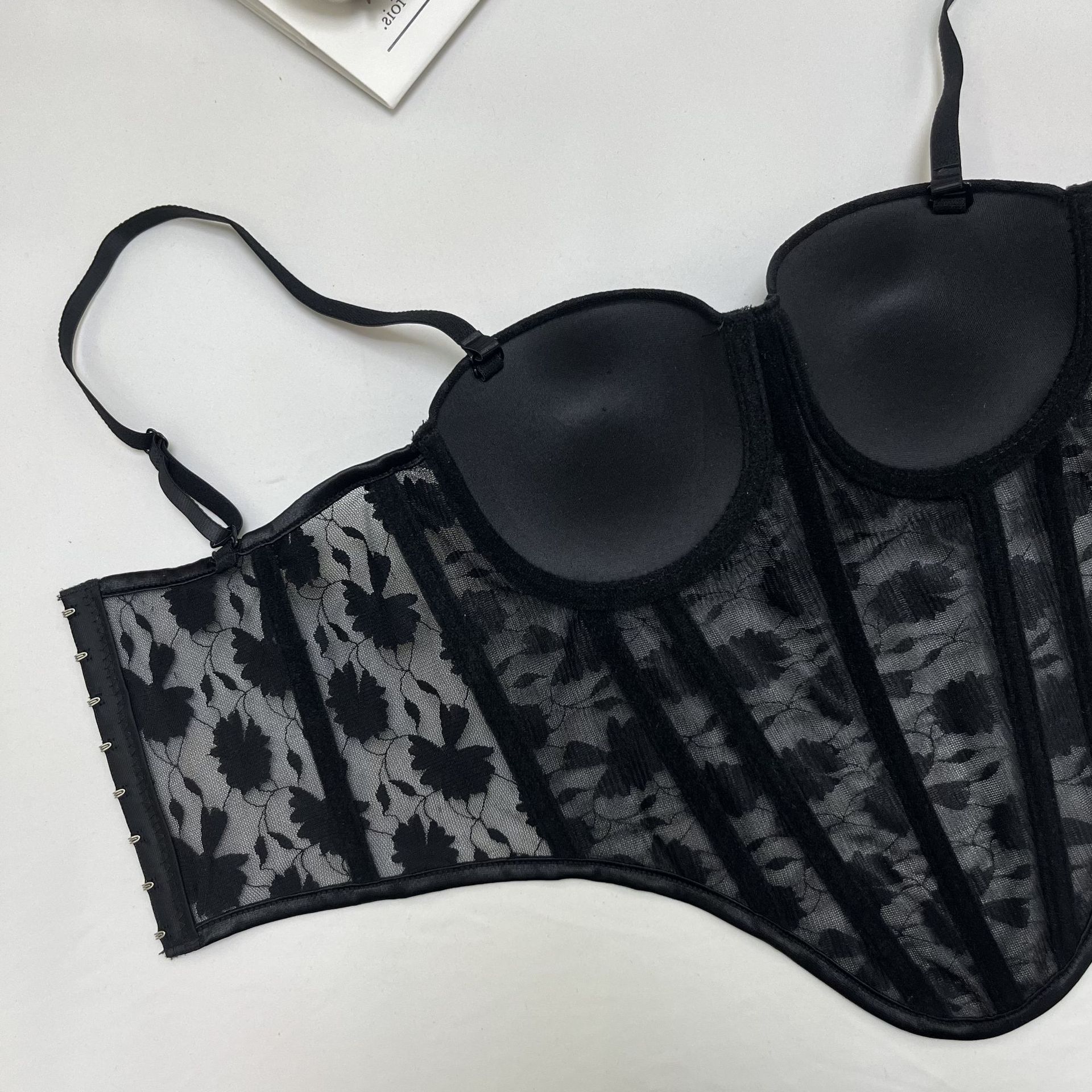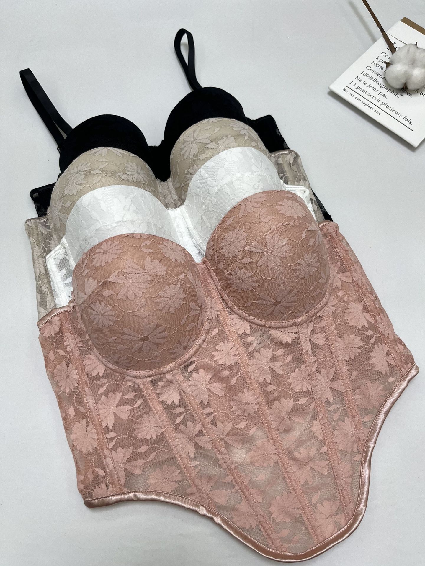 批发定制网纱透视鱼骨胸衣提花蕾丝女背心外贸性感吊带马甲式文胸