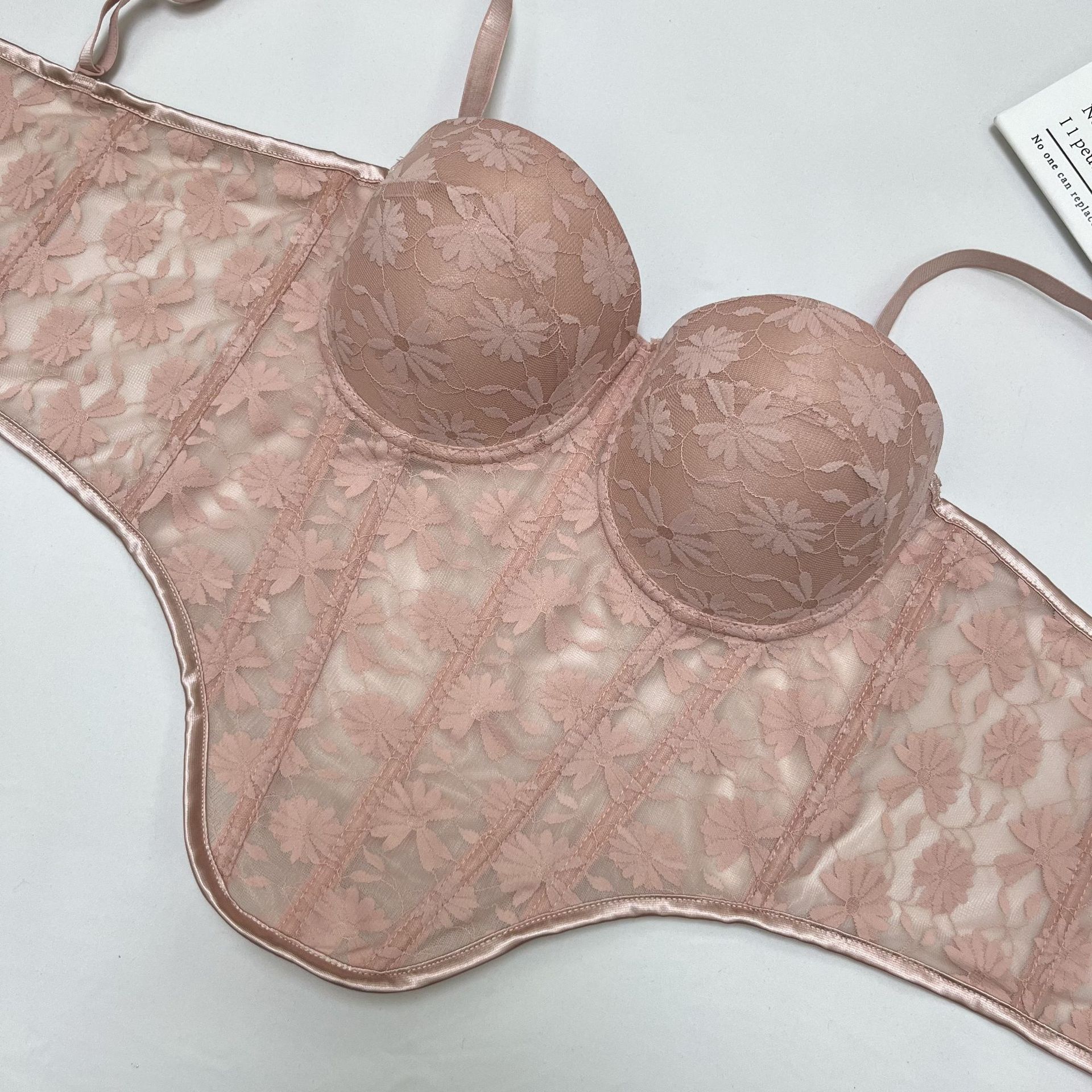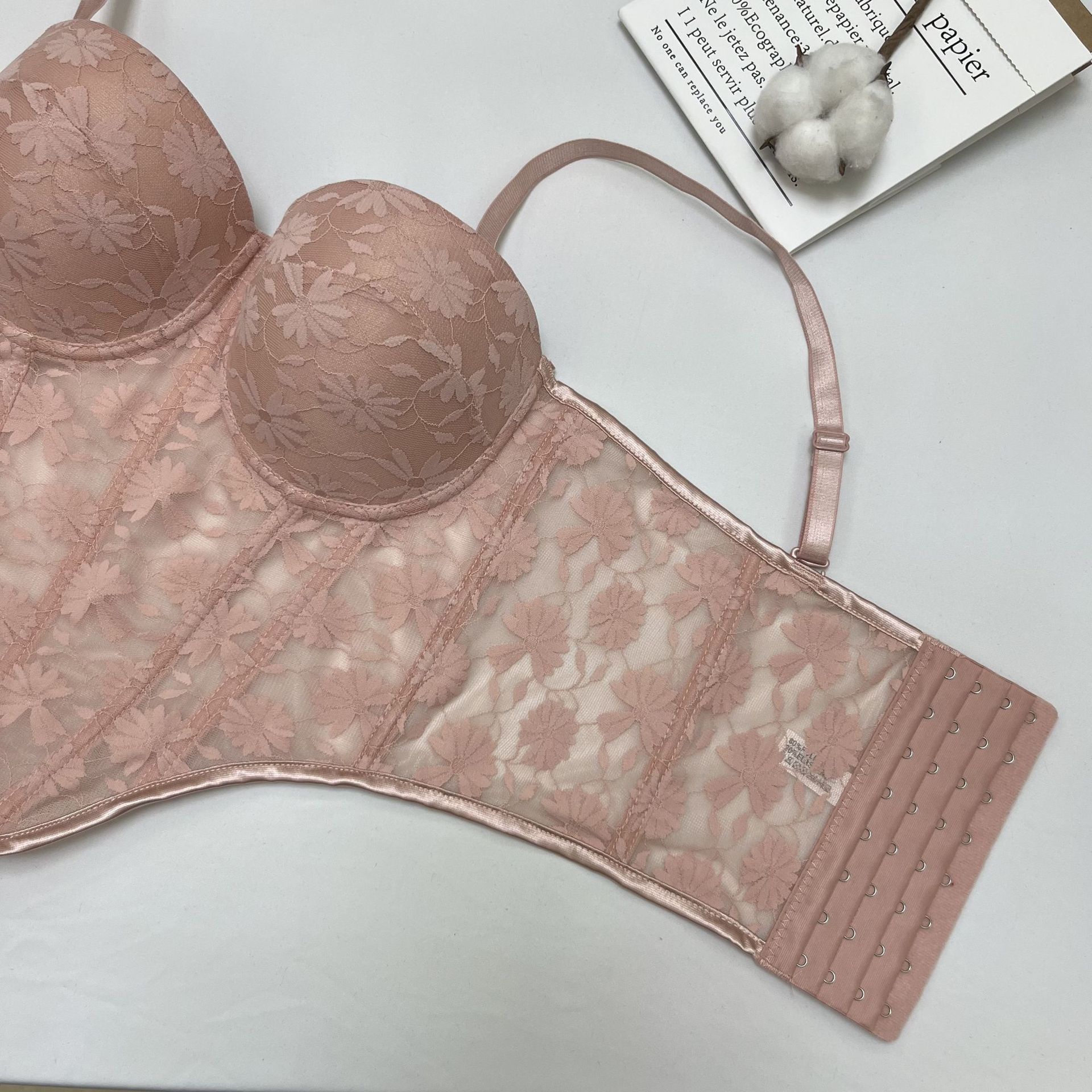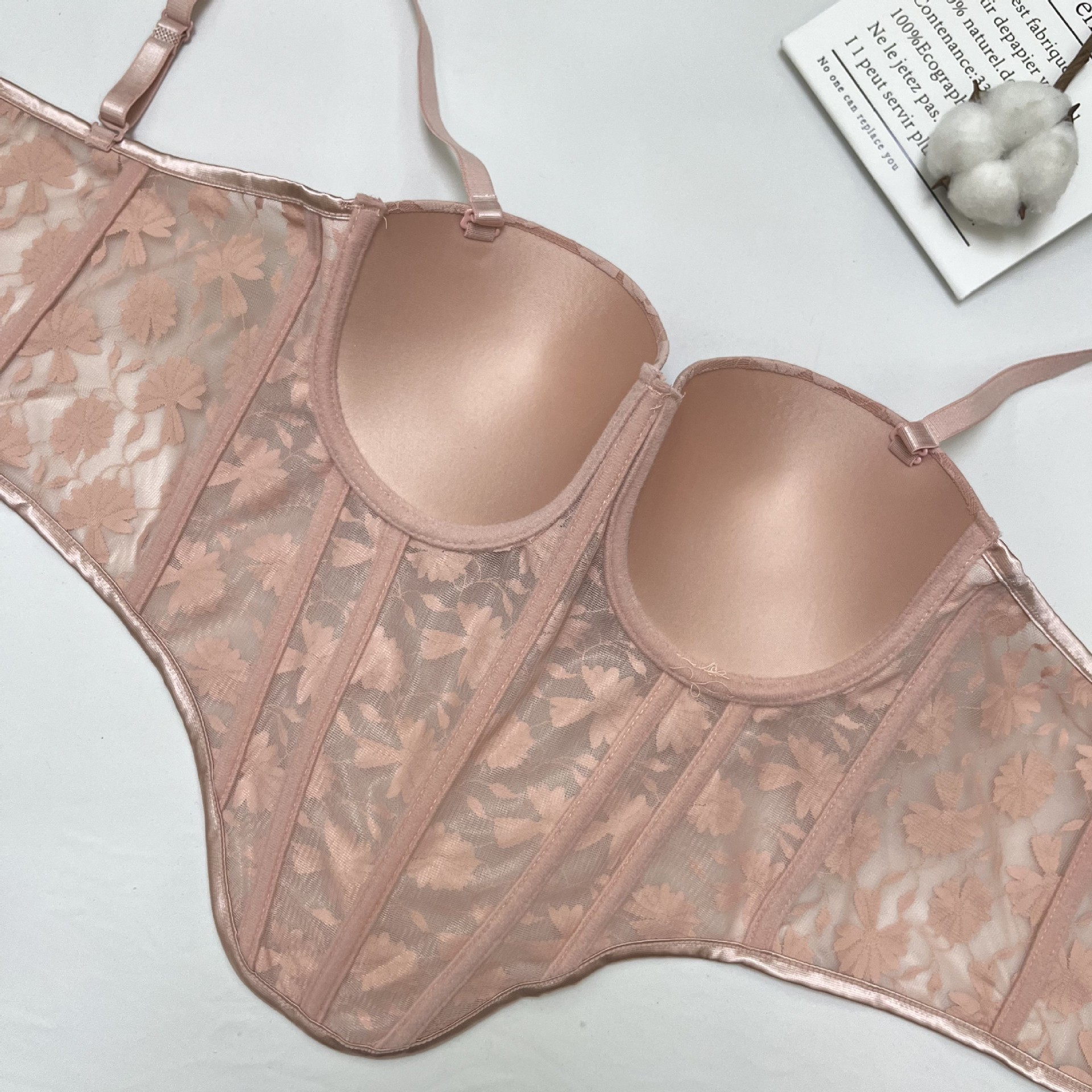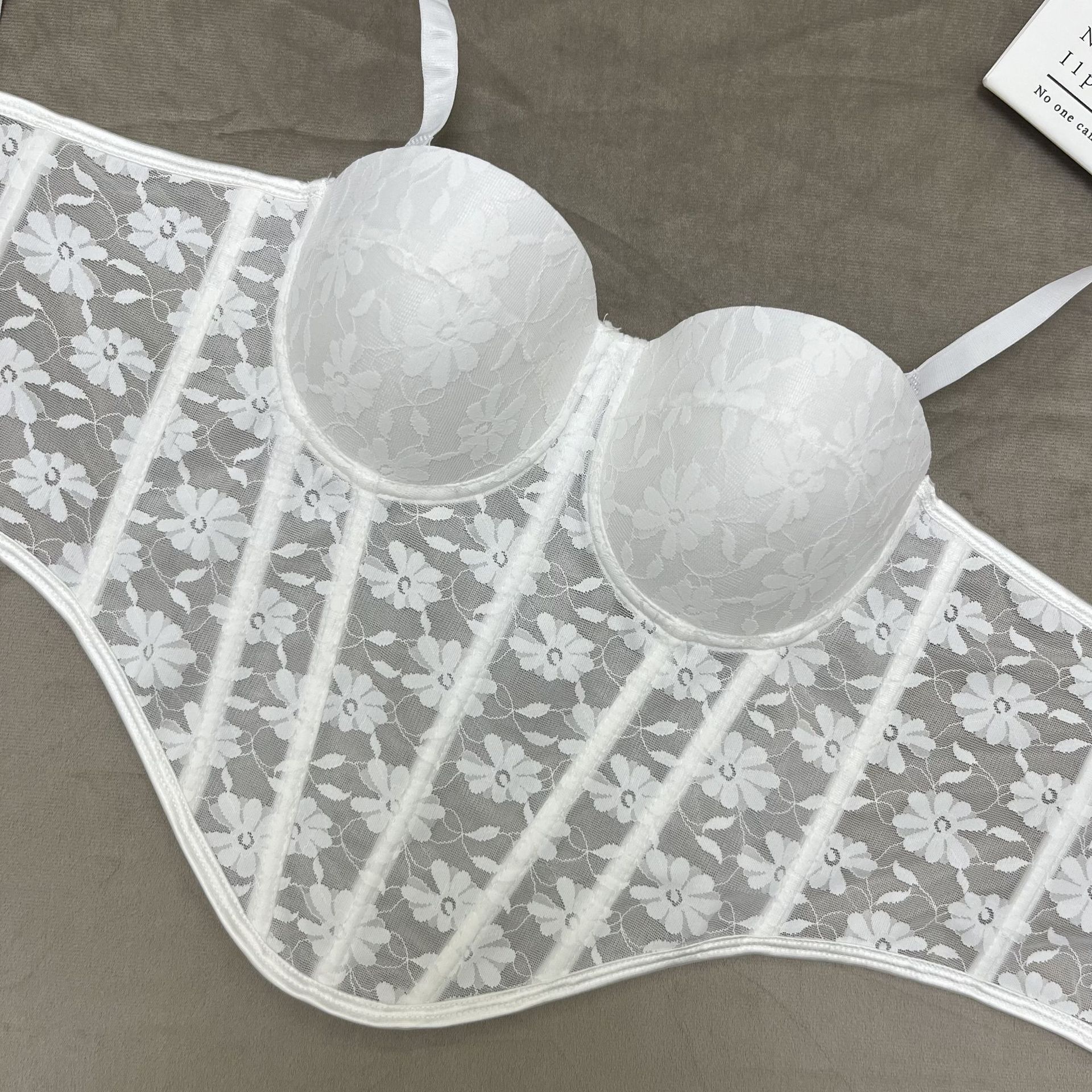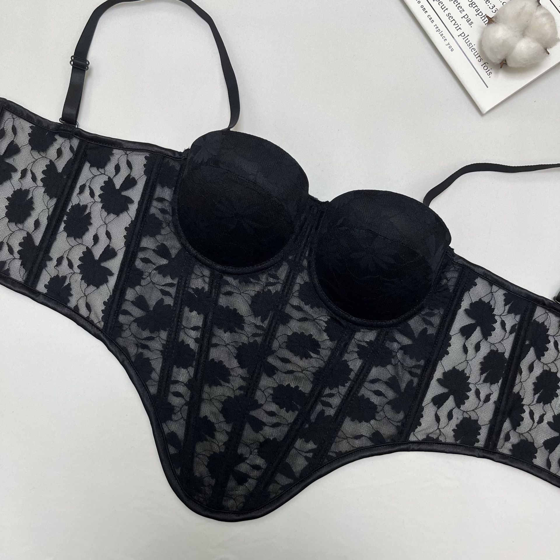 Оптовая продажа: Женский бюстгальтер-топ из сетки и жаккардового кружева с эффектом пуш-ап, в стиле камзола, для внешней торговли, сексуальный