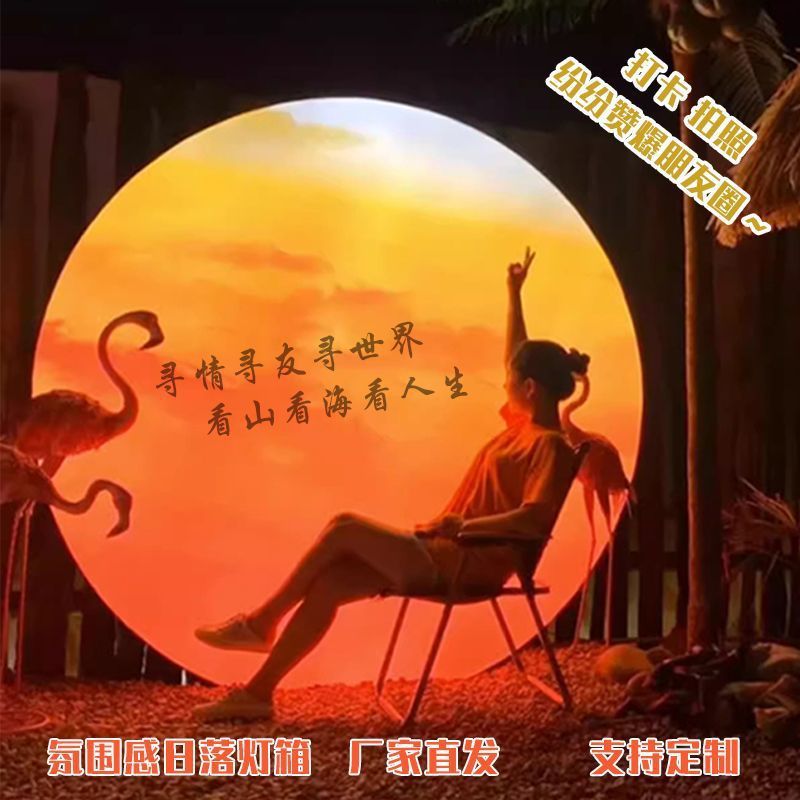 Модный световой короб с закатом, мягкая пленка для улицы, атмосферная фотозона, декор для магазина в стиле кемпинга, лунный билборд