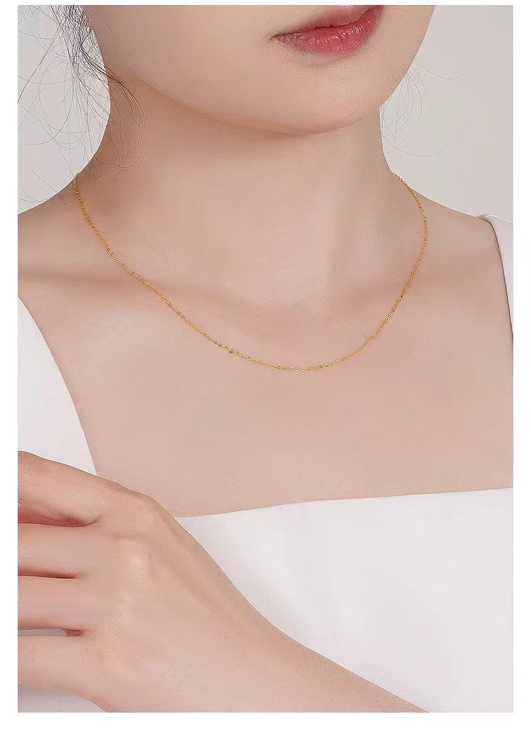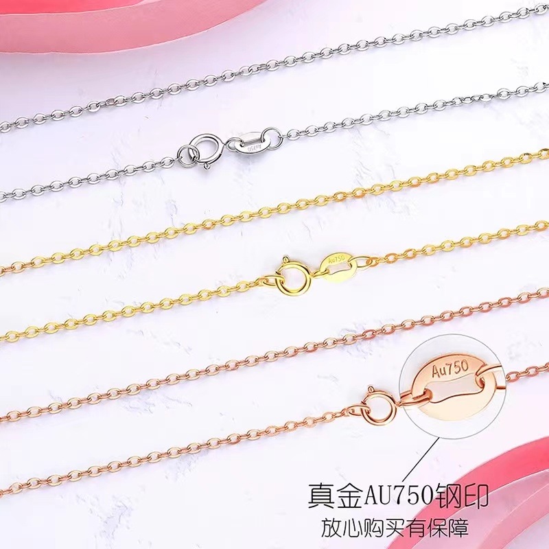 Цепочка O-образная из золота 18 карат, настоящее золото 750 пробы, цветное золото, простая цепочка, розовое золото, модная, простая, блестящая, цепочка на ключицы, без подвесок, оптом
