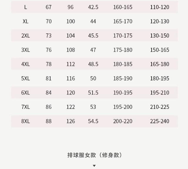 XXS; XS; S; M; L; XL; XXL; XXXL
