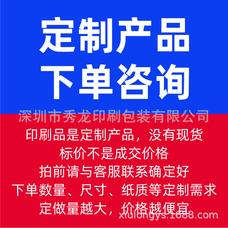 ◆3、印刷:四色印刷或专色等按客户要求设计,或者根据客户来样订做。颜色部分,不能以显示器、数码稿或者打印机的颜色来要求印刷,必须依照cmyk色标百分比来决定制作填色,底纹或低图颜色不要低于8%,以免印刷品无法呈现。