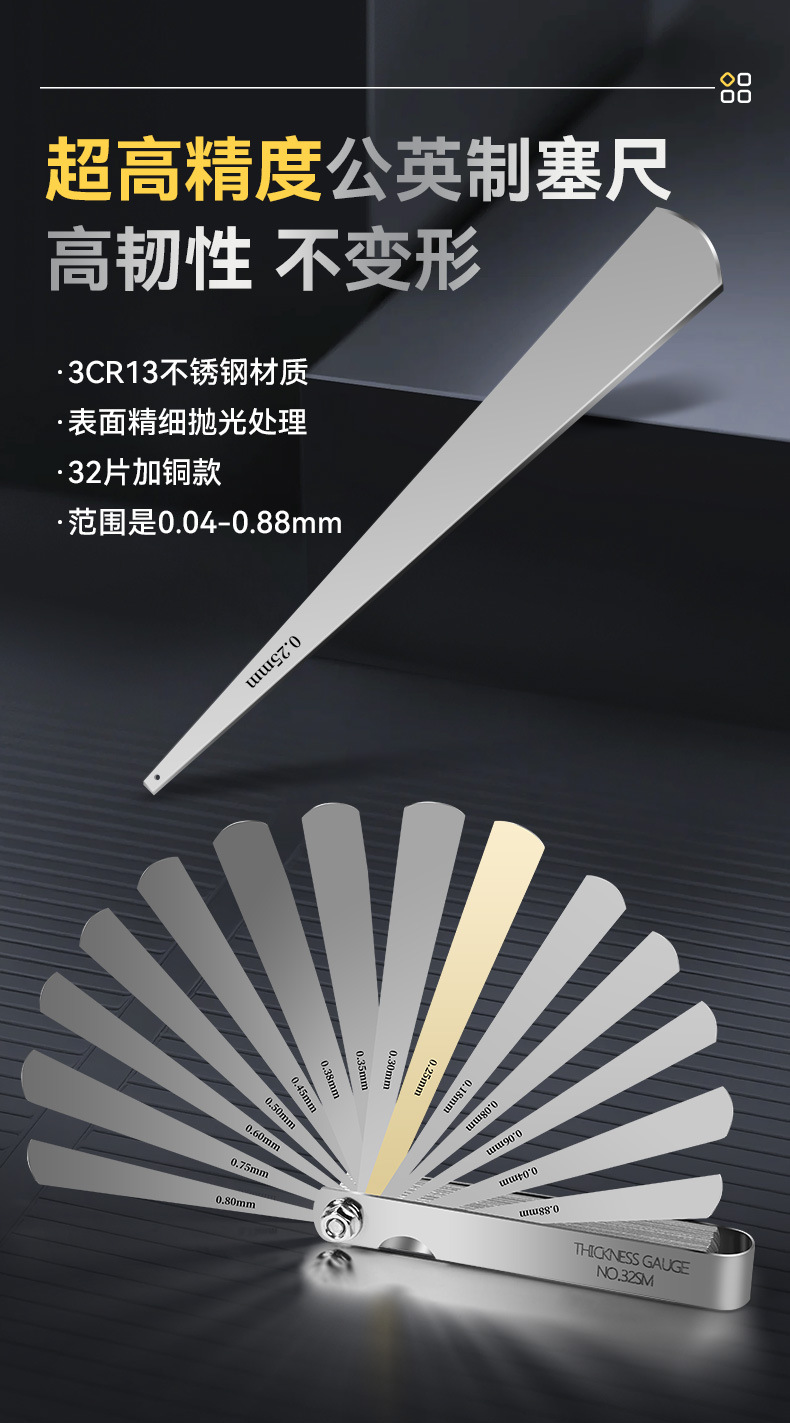 Набор щупов из нержавеющей стали, 32 шт., с медными вставками, метрические и дюймовые, 0,04-0,88 мм, производитель измерительных инструментов