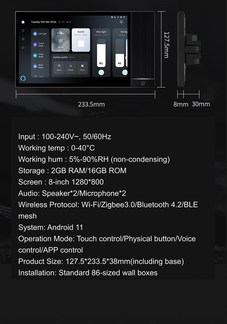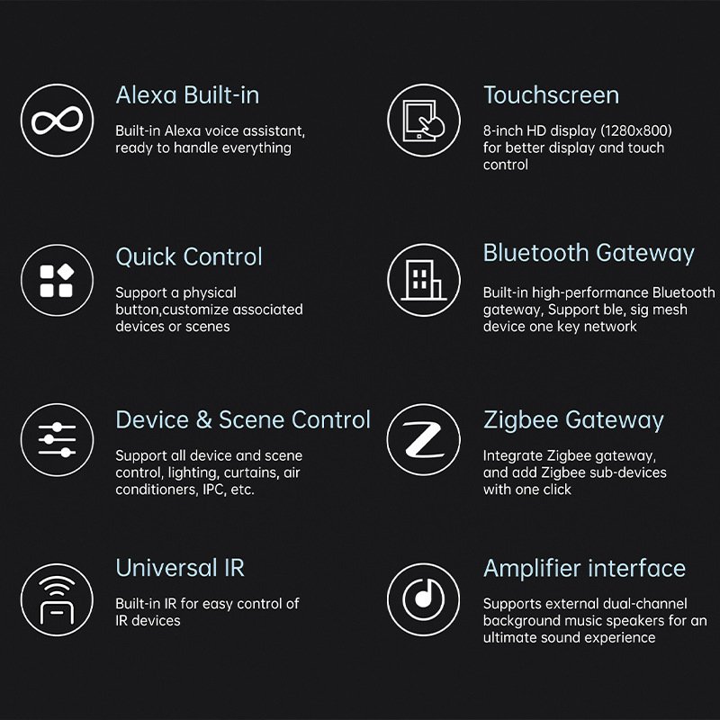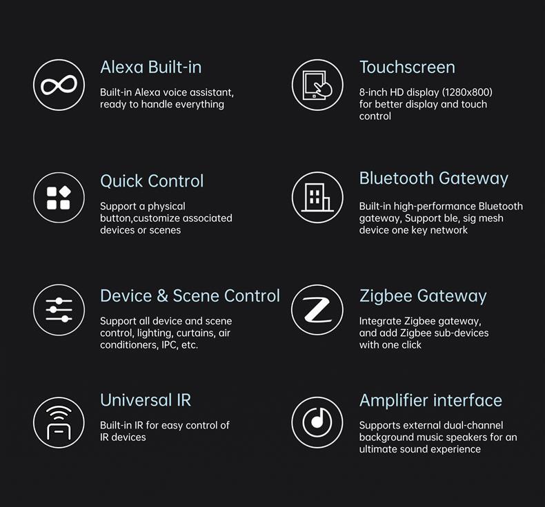 Alexa 8inch Tuya Умный центральный экран управления Шлюз Zigbee Инфракрасный многофункциональный контроллер Хост фоновой музыки