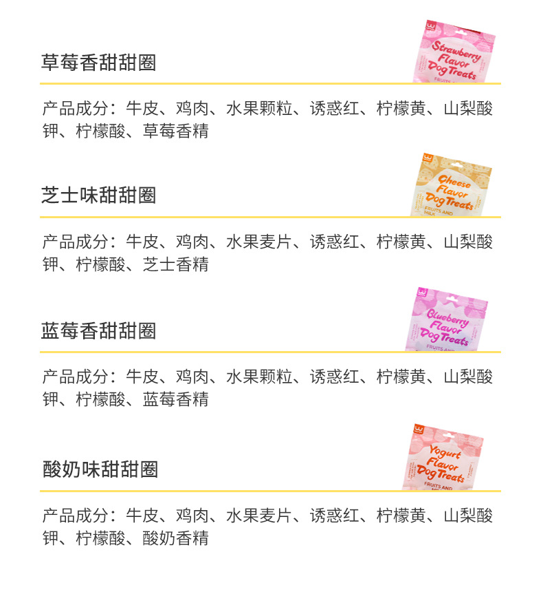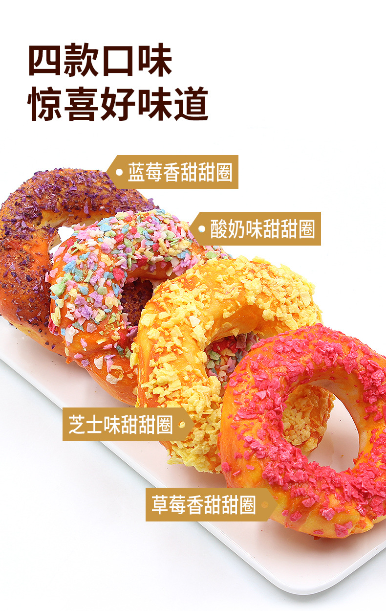 Пончики со вкусом клубники 65г; Клубничные пончики 65г; Пончики со вкусом сыра 65г; Йогуртовый пончик 65г