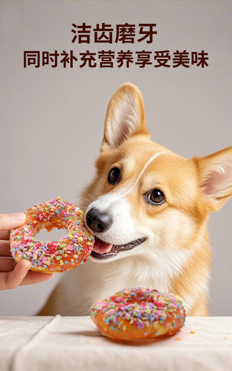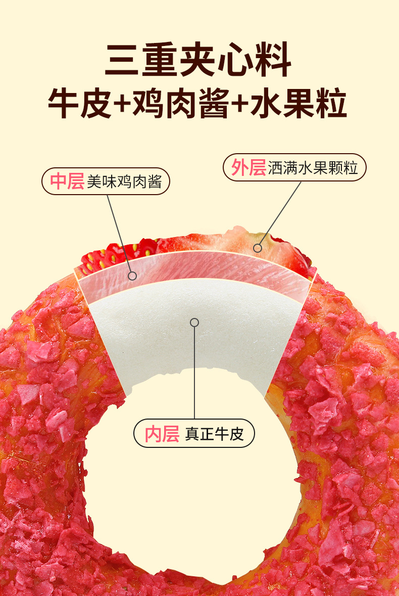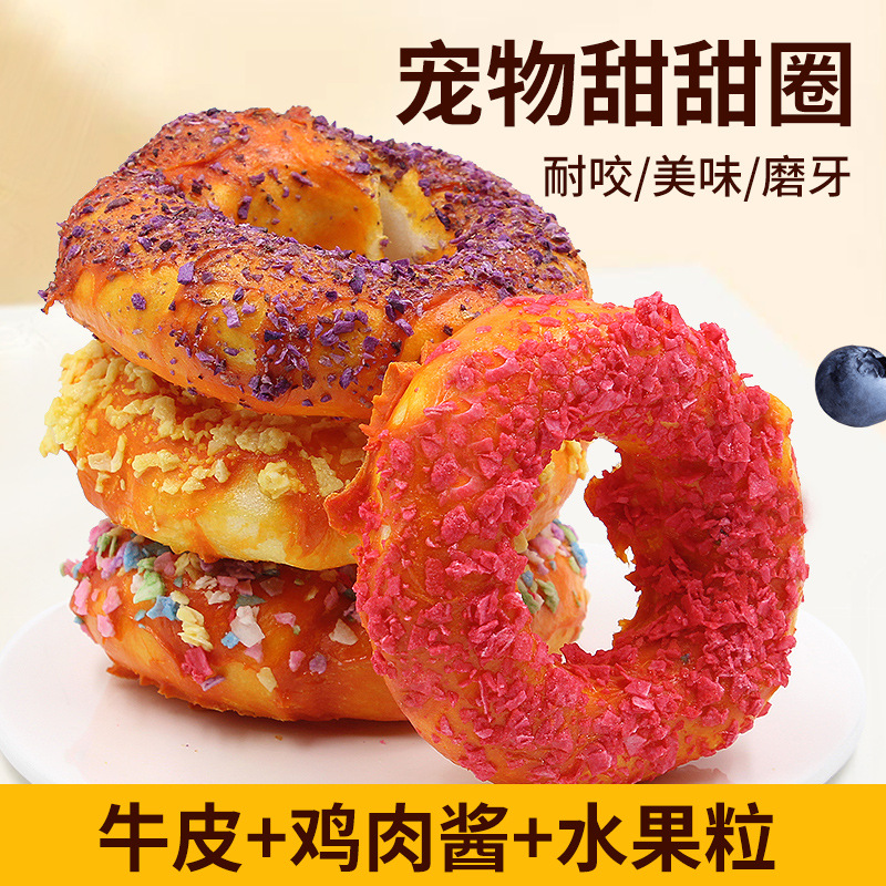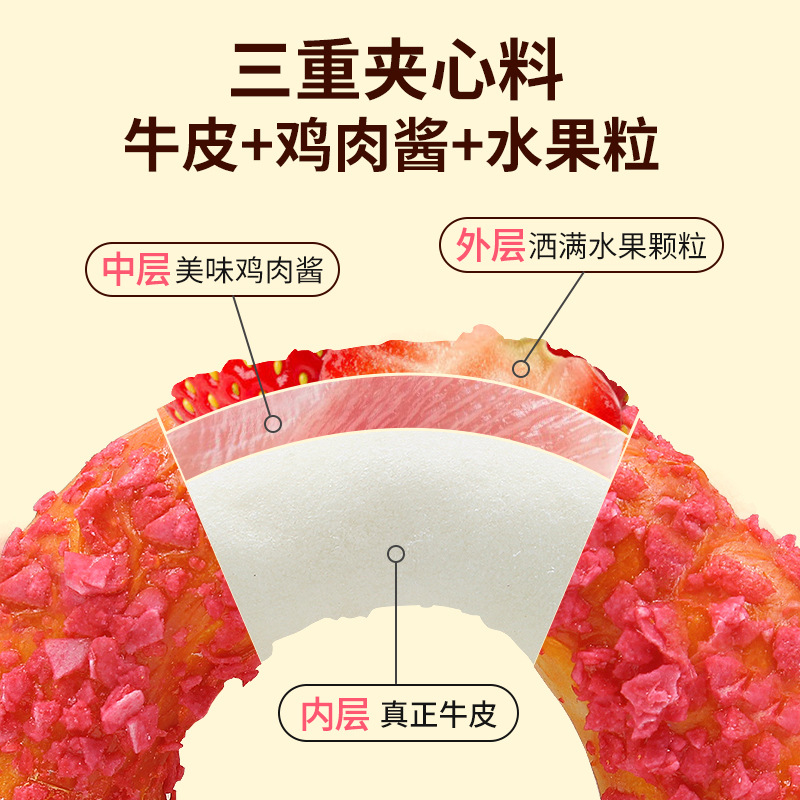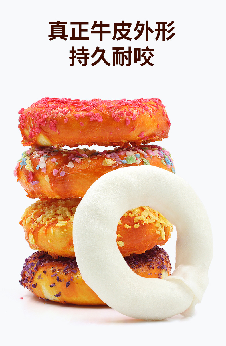 Собачий пончик из воловьей кожи, 65 г, для собак крупного, среднего и маленького размера, устойчивый к укусам корги, палочка для чистки зубов, курица, фруктовые хлопья, палочка для прорезывания зубов