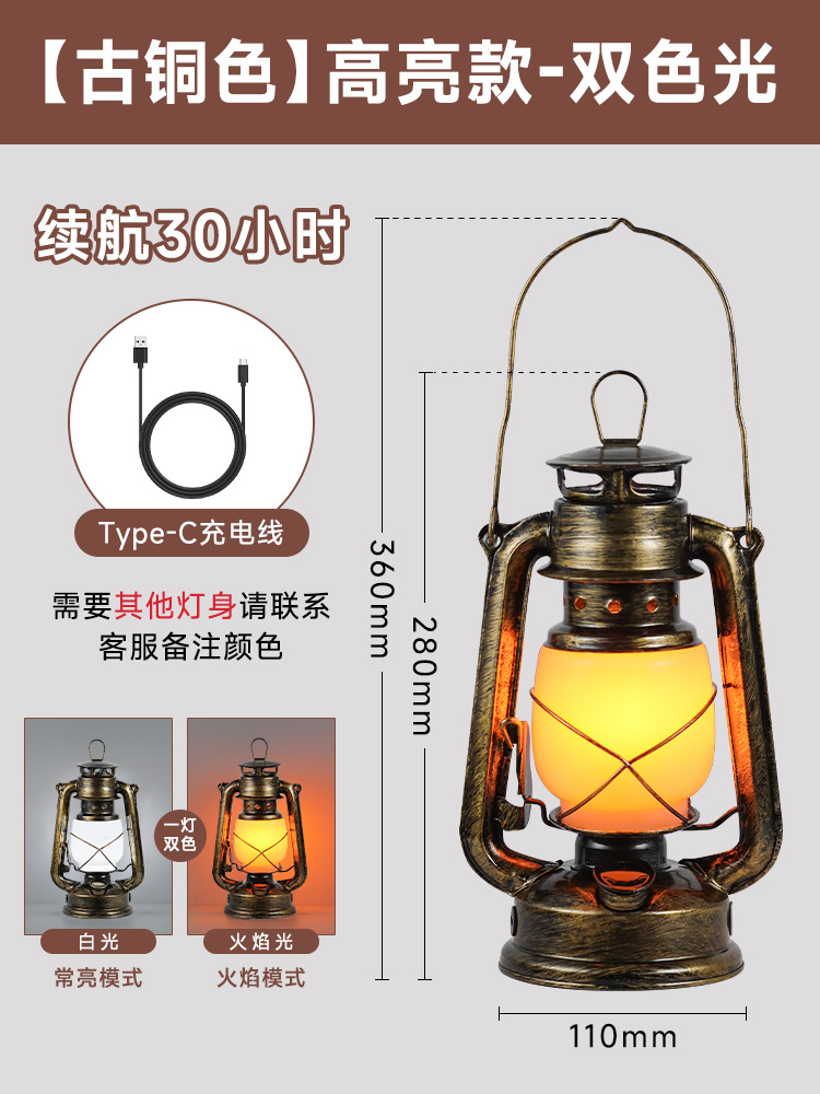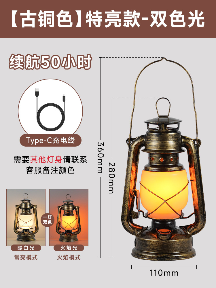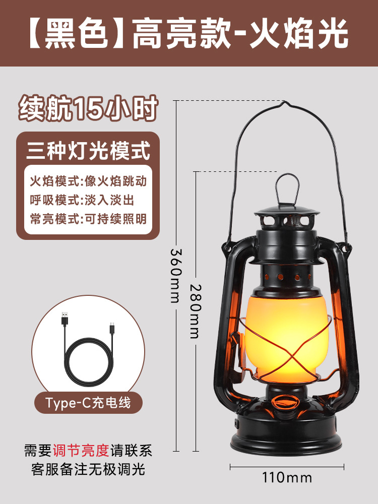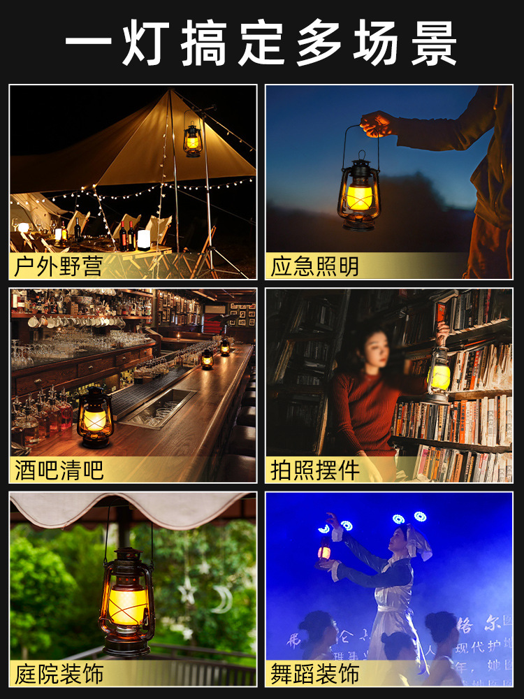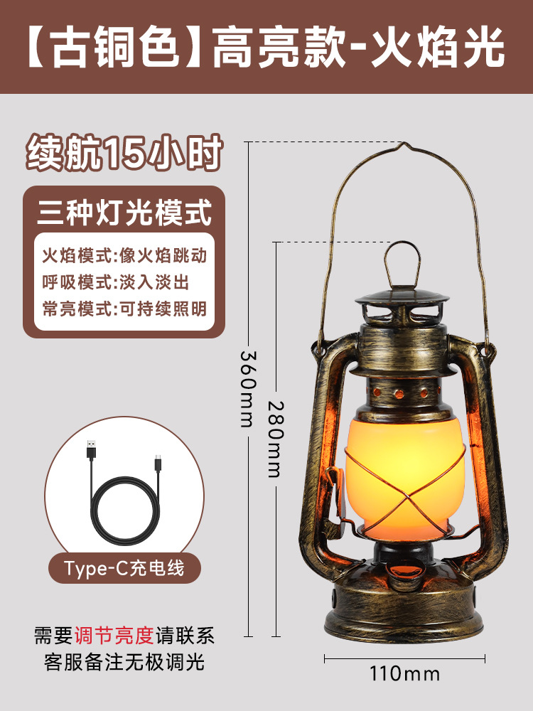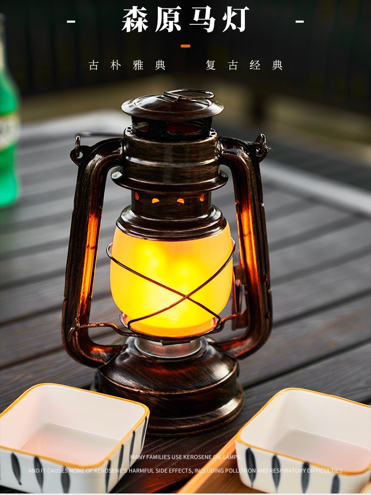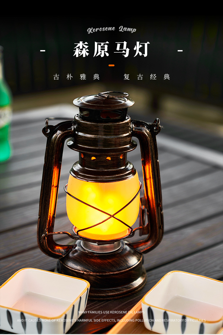 Декоративная кемпинговая лампа с эффектом пламени, перезаряжаемая ретро-фонарь в виде лошади, портативная керосиновая лампа для палаток и кемпинга, создающая атмосферу уюта.