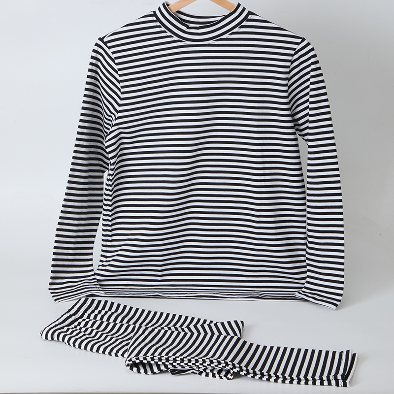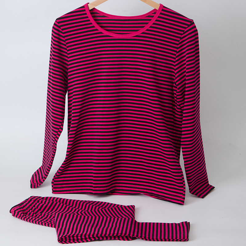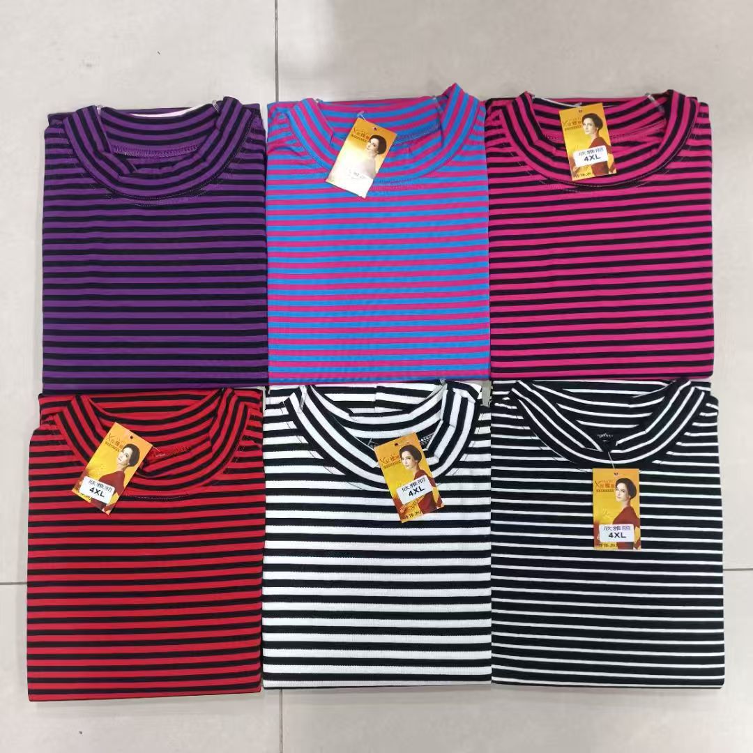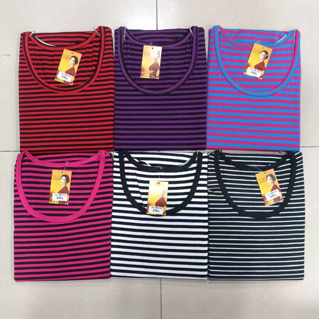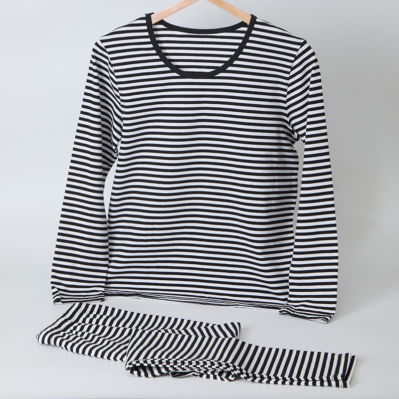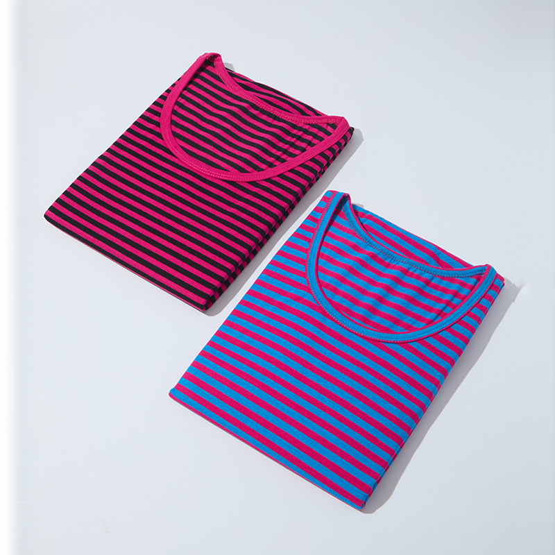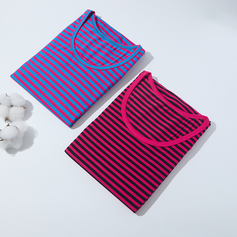 Женские осенние топы и брюки в полоску из лайкры и хлопка, эластичная основа с круглым вырезом и длинными рукавами, плотно прилегающий базовый слой для мам среднего и пожилого возраста.