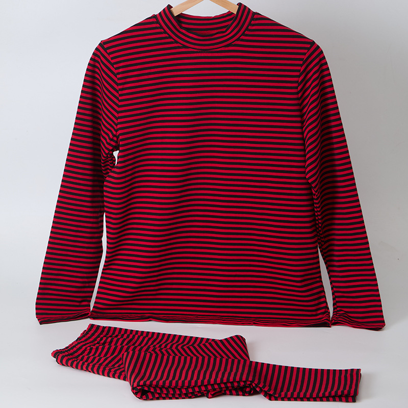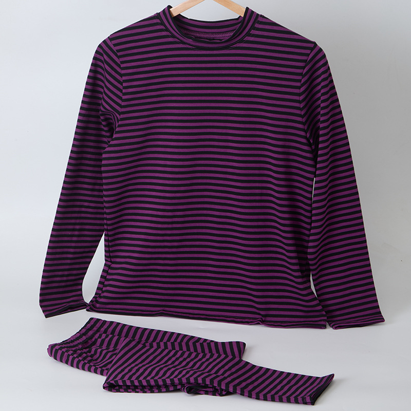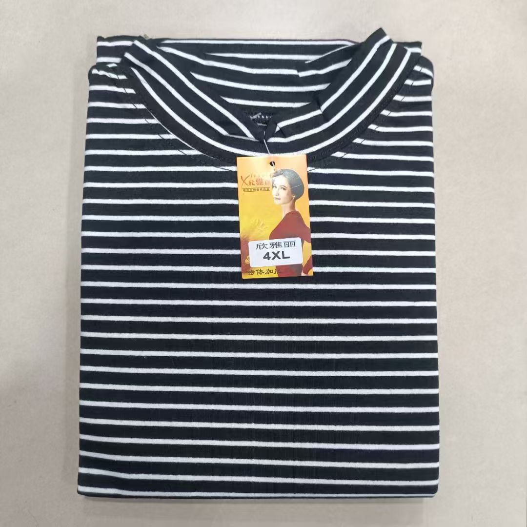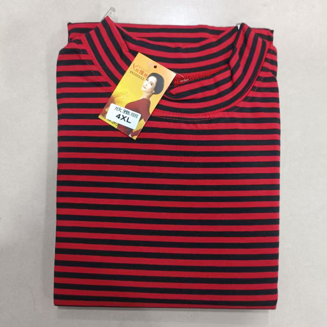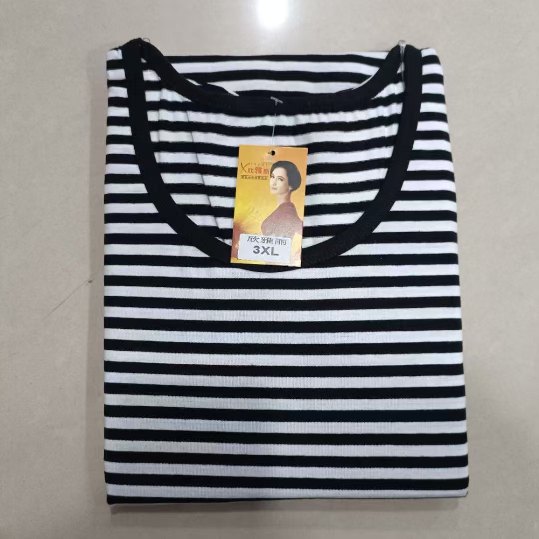 Женские осенние топы и брюки в полоску из лайкры и хлопка, эластичная основа с круглым вырезом и длинными рукавами, плотно прилегающий базовый слой для мам среднего и пожилого возраста.