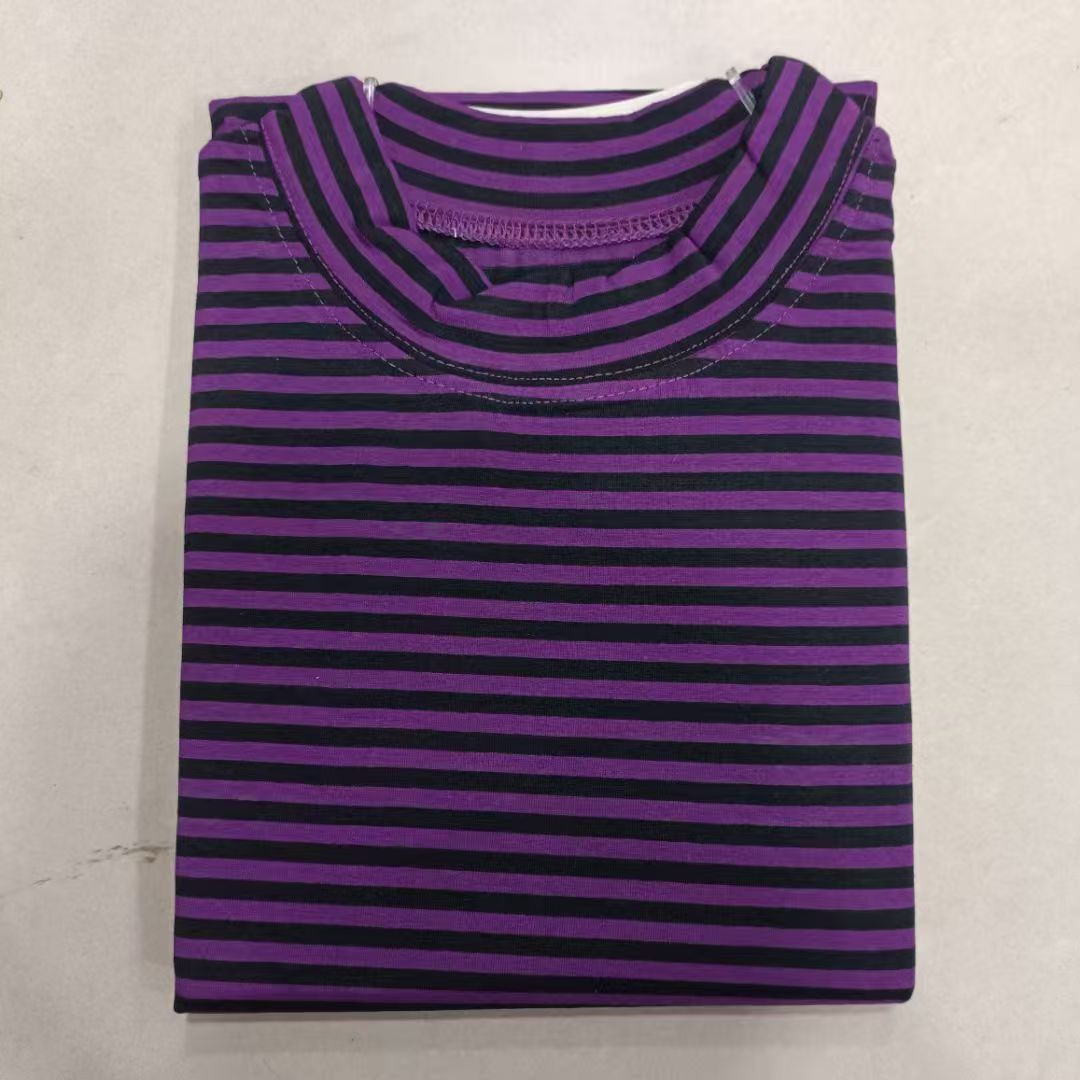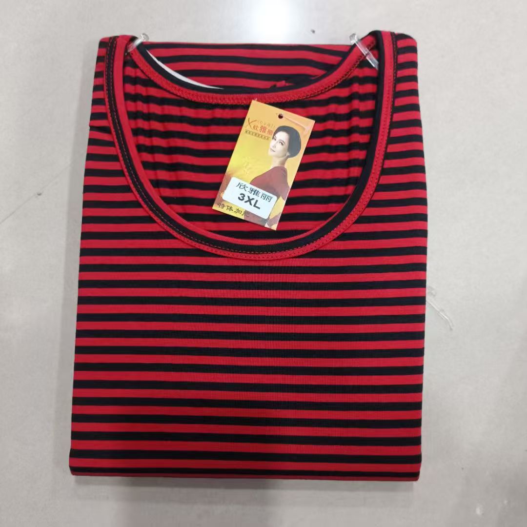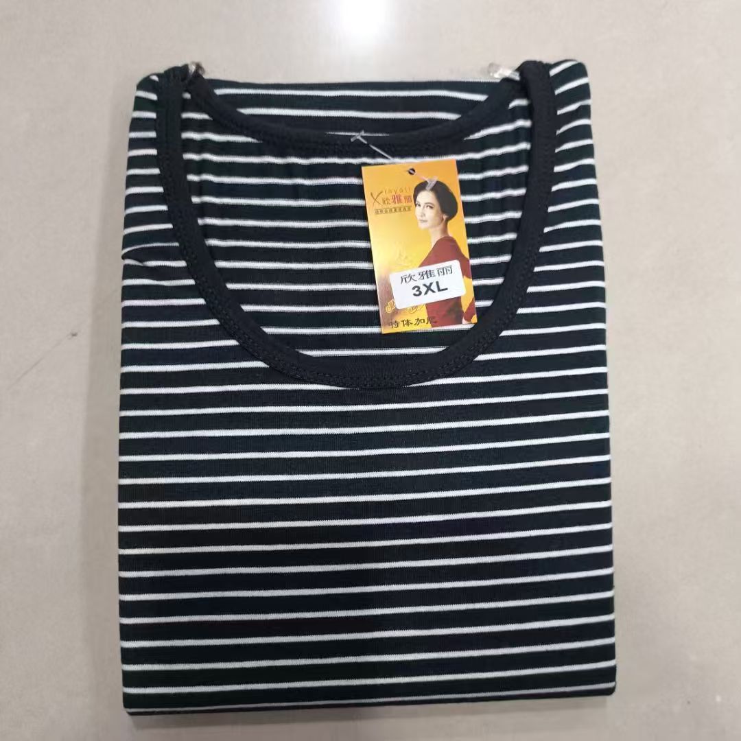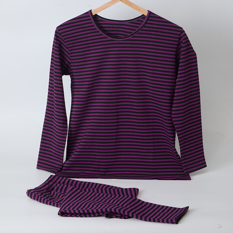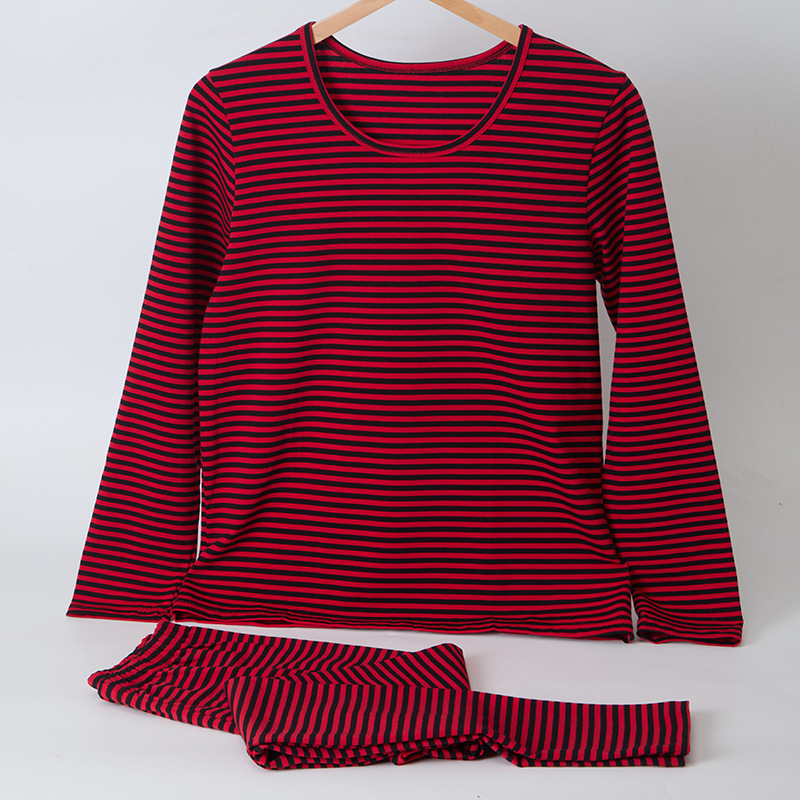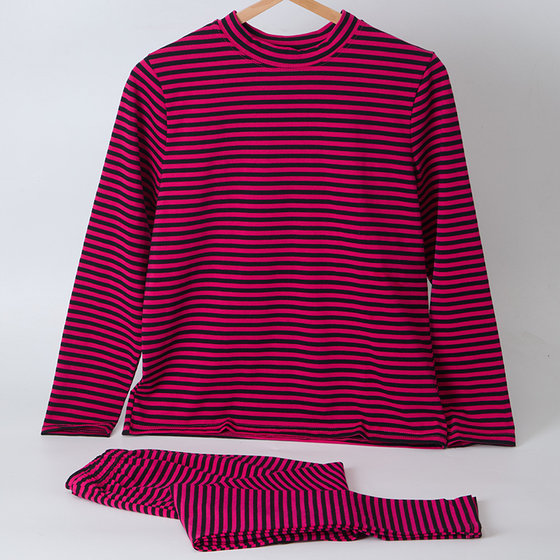 Женские осенние топы и брюки в полоску из лайкры и хлопка, эластичная основа с круглым вырезом и длинными рукавами, плотно прилегающий базовый слой для мам среднего и пожилого возраста.