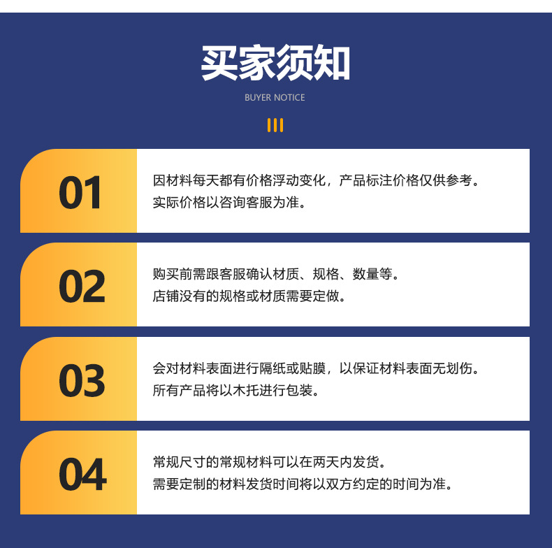 亲爱的采购朋友们,您在采购之前请电联业务人员或与客服沟通好需要材质、规格、数量,以实时报价为准;因为材料规格不同、数量不同、工艺不同的价格也不同,以沟通下单为准,如未与销售人员沟通直接拍的一律概不发货,请多多包涵,谢谢合作!