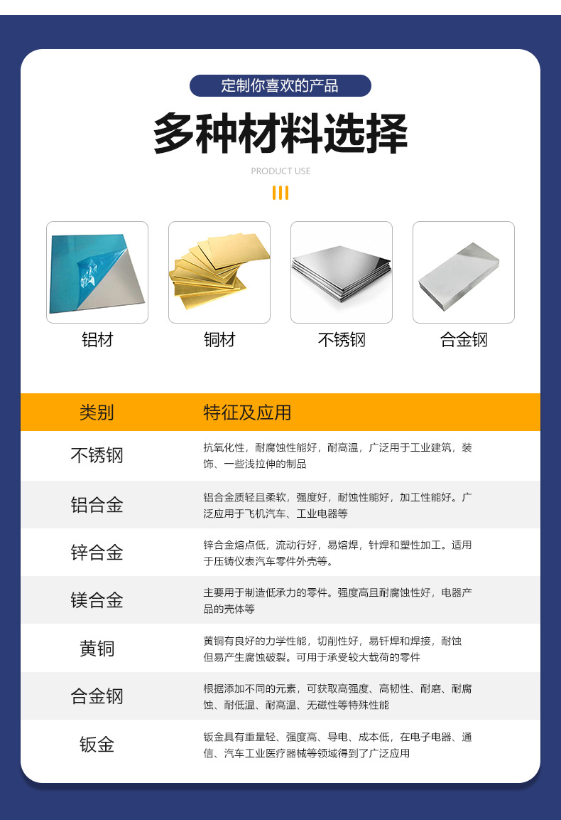нержавеющая сталь; Алюминиевый сплав; медь; железо; оцинкованный лист; латунь; Алюминиевая пластина; железная пластина; углеродистая сталь; бронза; Алюминиевый сплав-6061; Алюминиевый сплав-7075; Алюминиевый сплав-6060