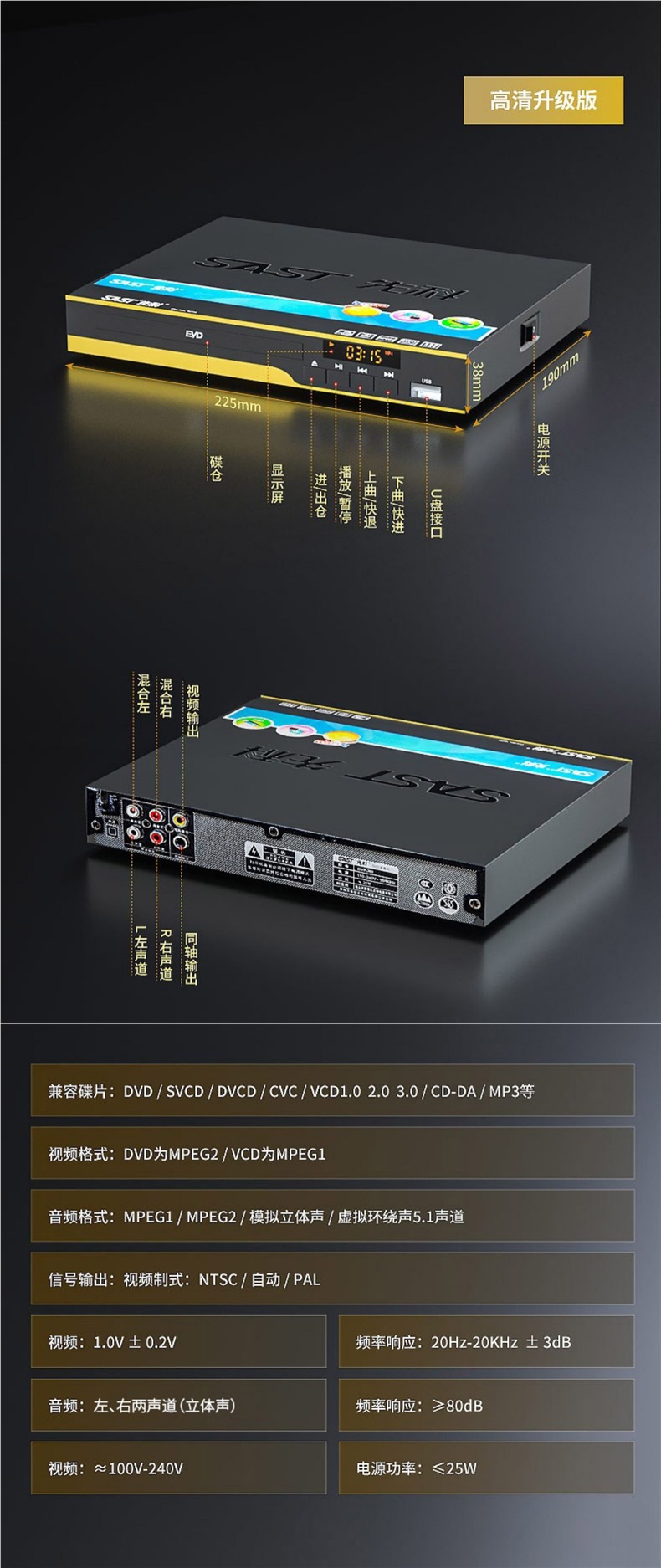 Домашний DVD-плеер, VCD-плеер, CD-плеер, плеер высокой четкости, полноразмерный плеер, детский EVD-диск, другие