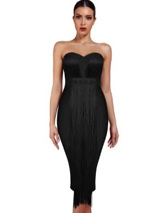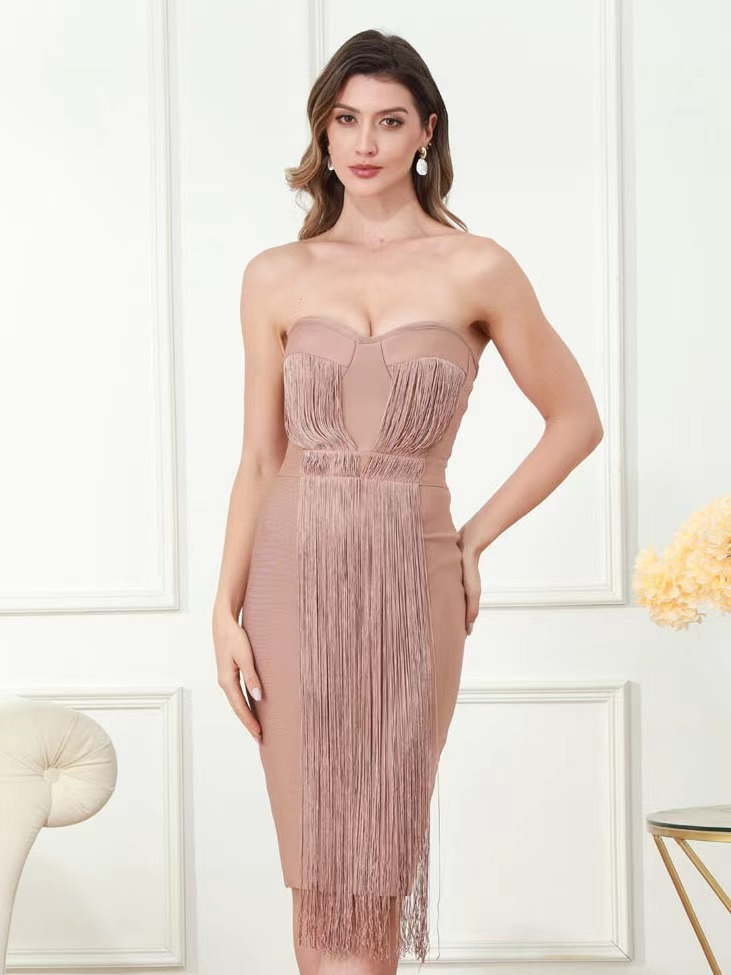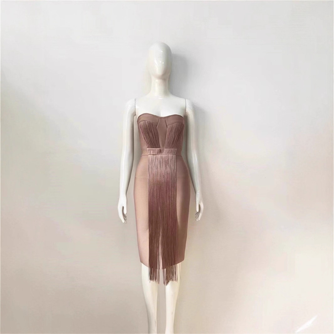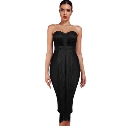 Новый стиль, зарубежная станция, трансграничное элегантное и сексуальное бандажное платье длиной до колена без рукавов с кисточками