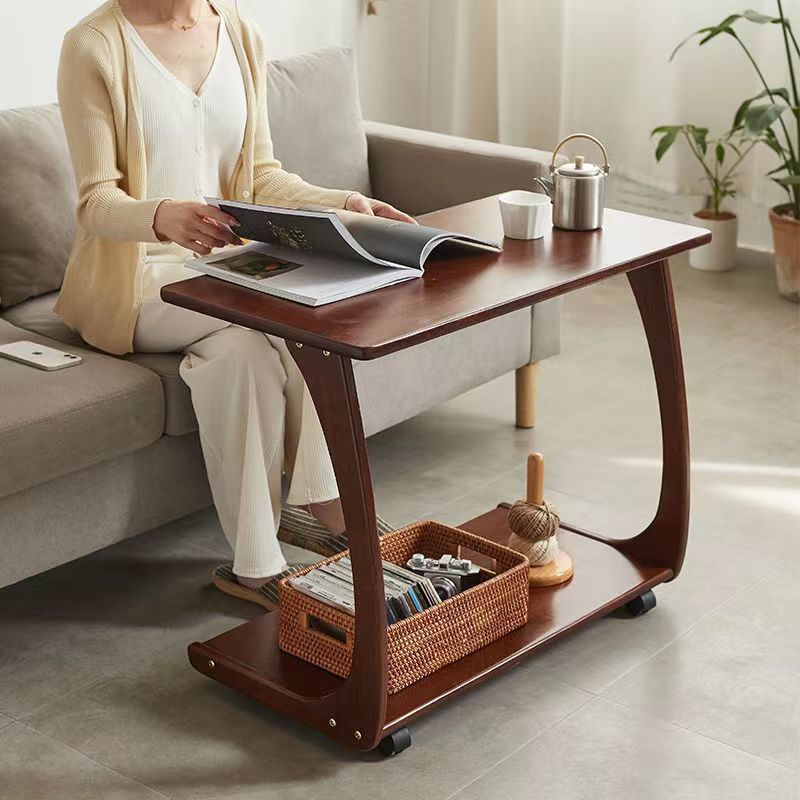 Боковой столик для дивана из массива дерева для гостиной, подвижный столик, прикроватный угловой столик на колесиках, мобильный компьютерный стол, стол для онлайн-классов