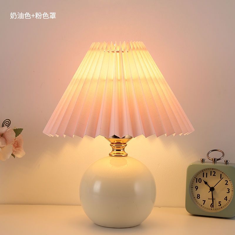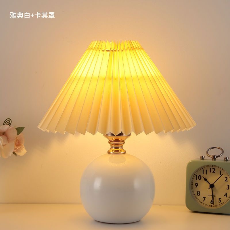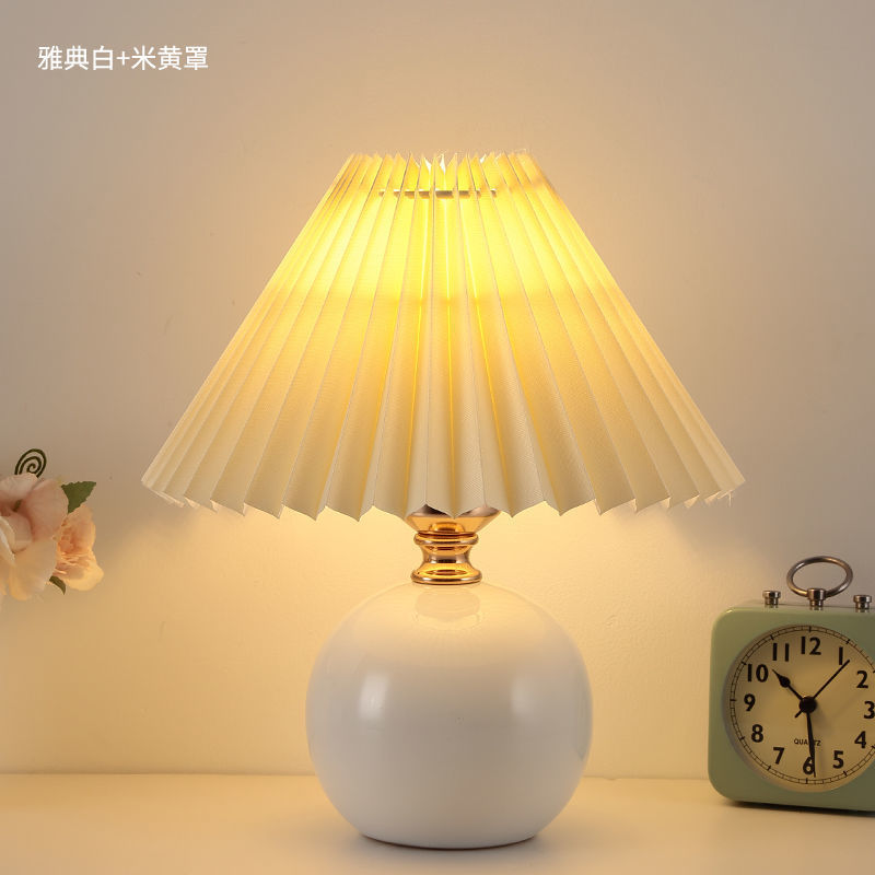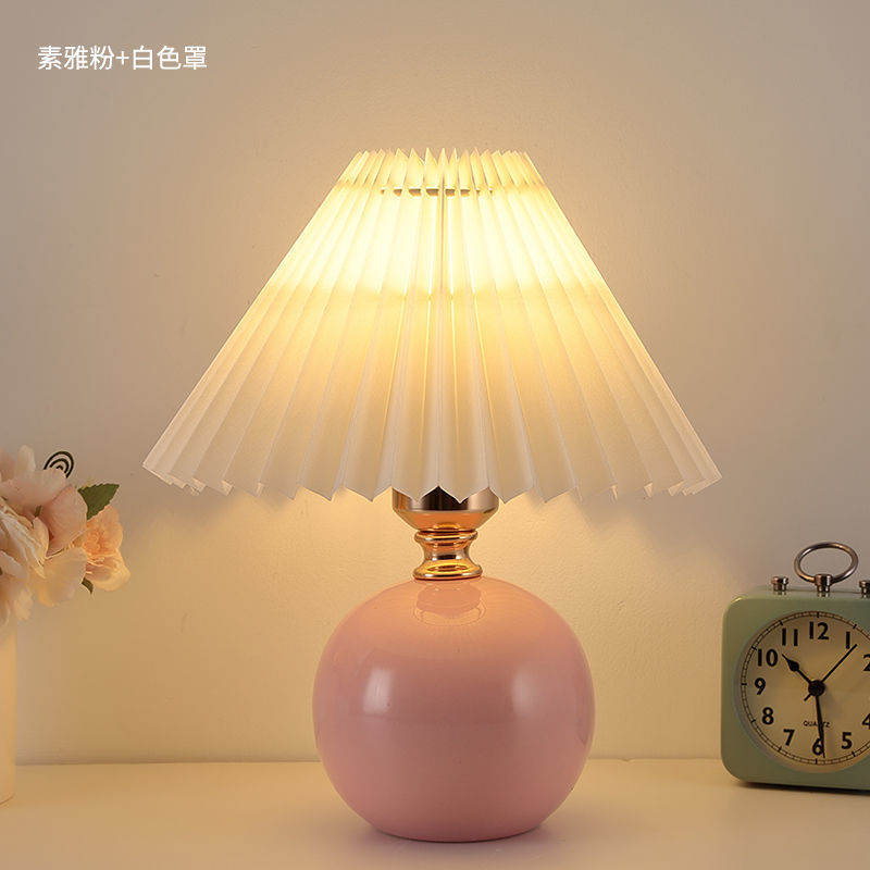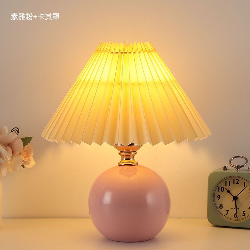 Скандинавский стиль, прикроватная лампа для спальни, интернет-знаменитость, лампа для девочек, теплый ночник для кормления грудью, керамическая плиссированная настольная лампа