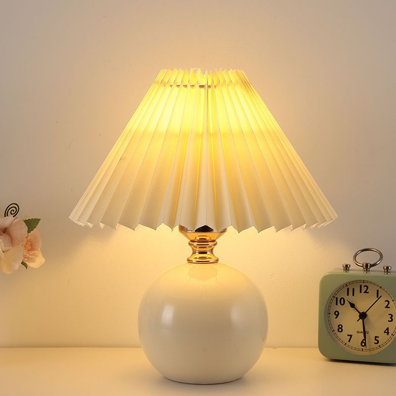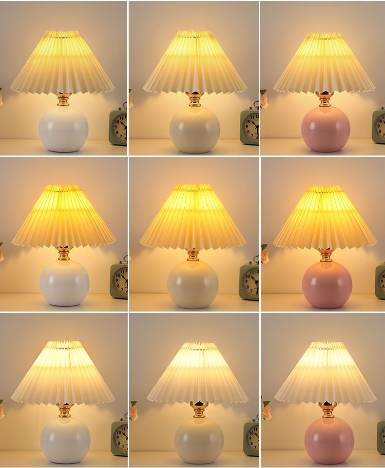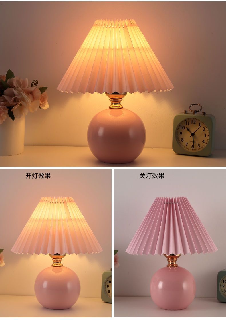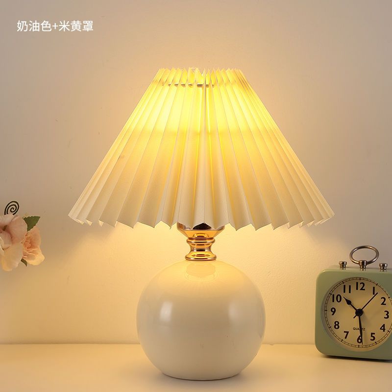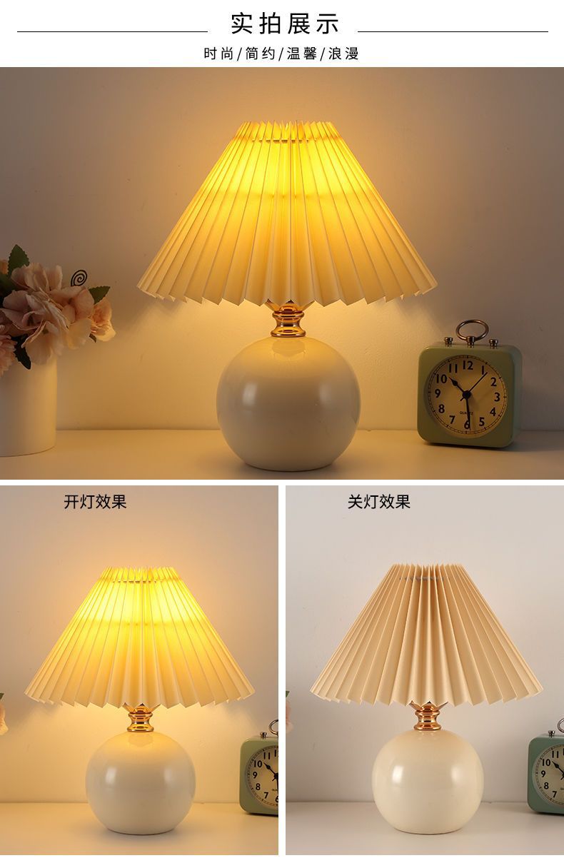 Скандинавский стиль, прикроватная лампа для спальни, интернет-знаменитость, лампа для девочек, теплый ночник для кормления грудью, керамическая плиссированная настольная лампа