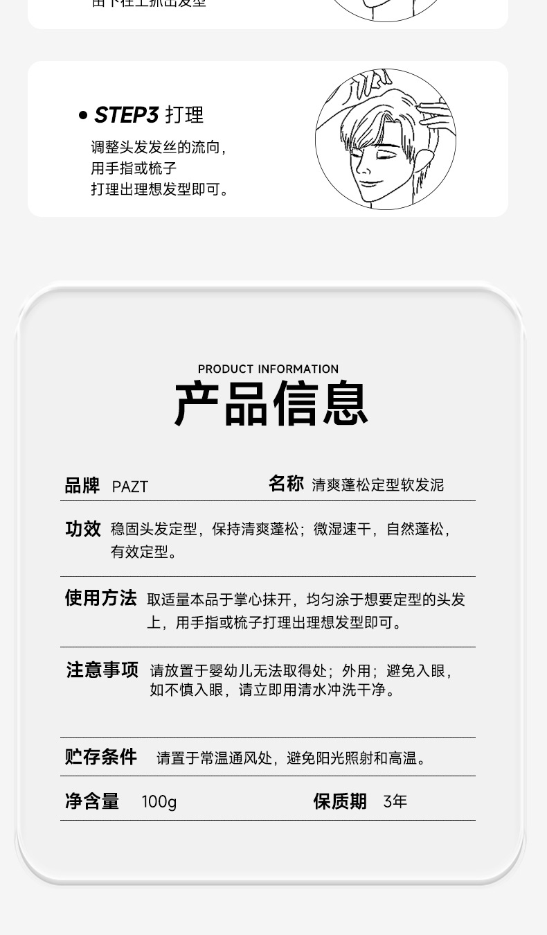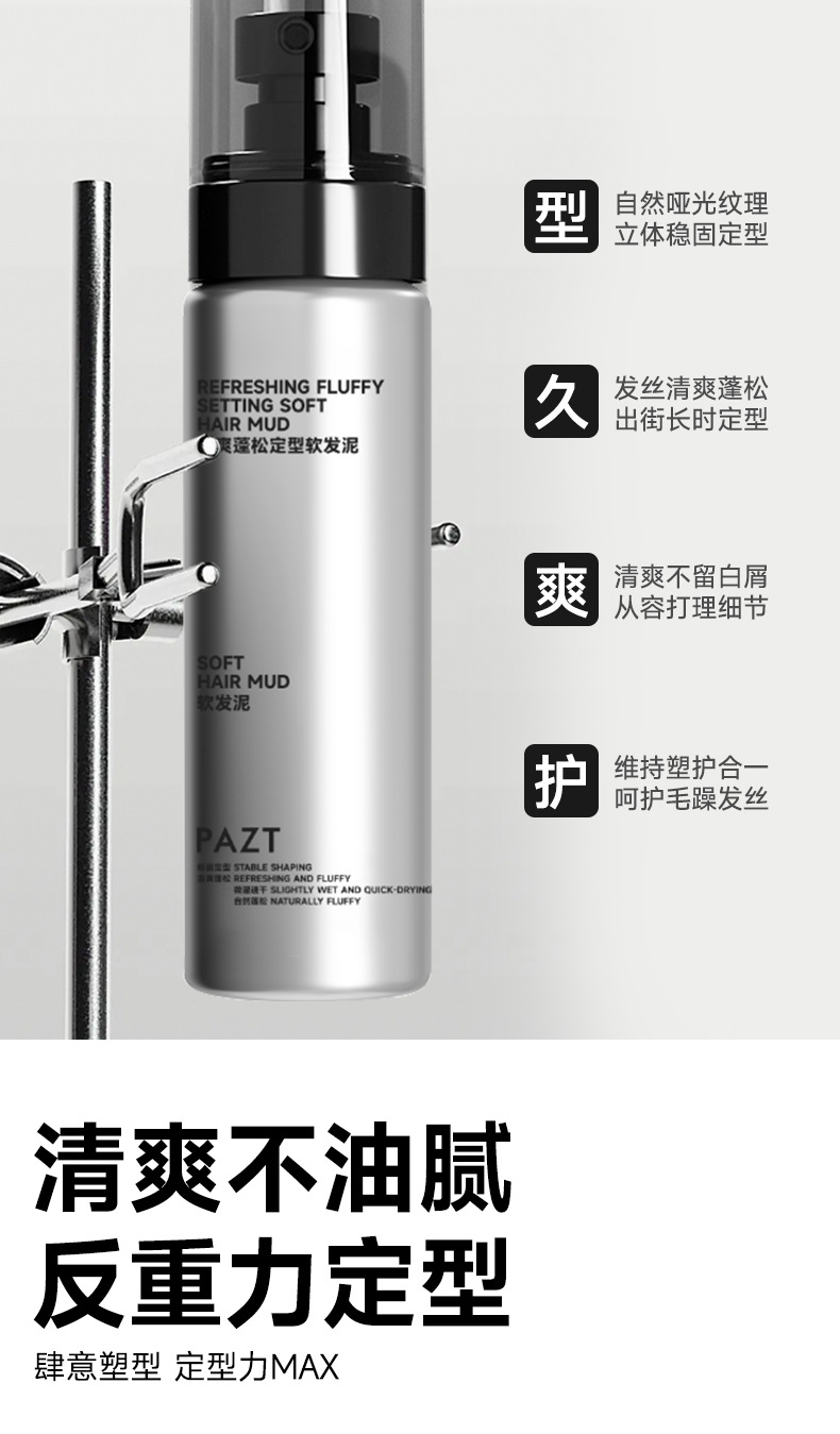 PAZT освежающая пушистая мягкая грязь для укладки волос, антигравитационная трехмерная натуральная пушистая воздушная мягкая грязь для волос, которую нелегко комкать