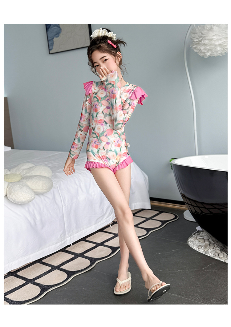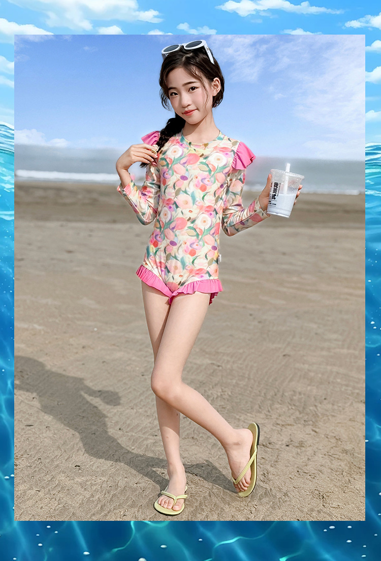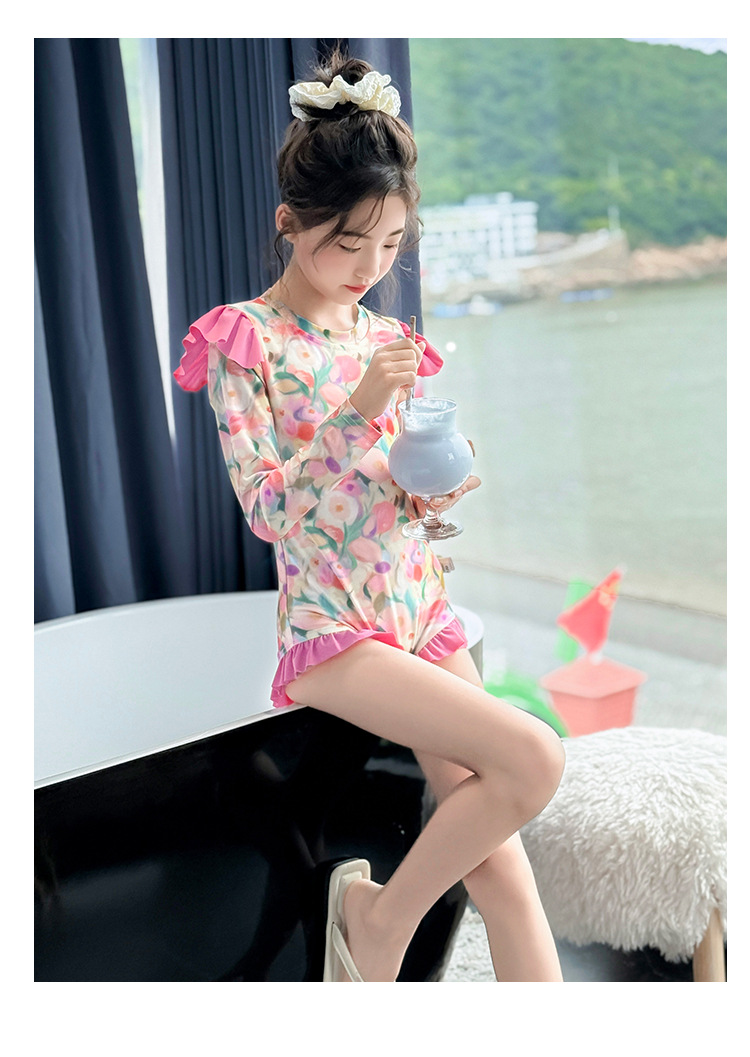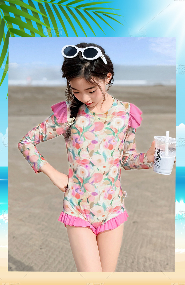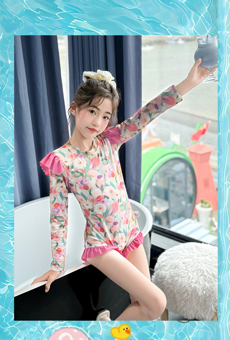 Летний модный купальник для девочек 2025 года, новый цветочный принт, средний и большой размер, детский летний цельный купальник, тренд