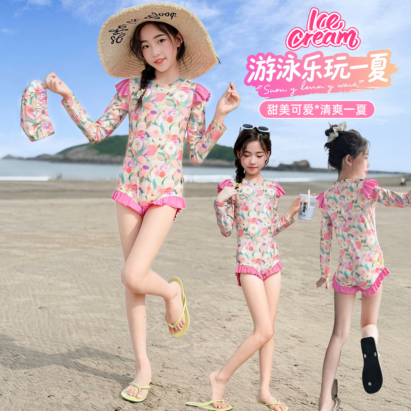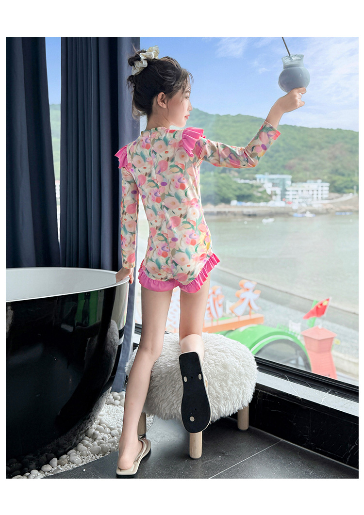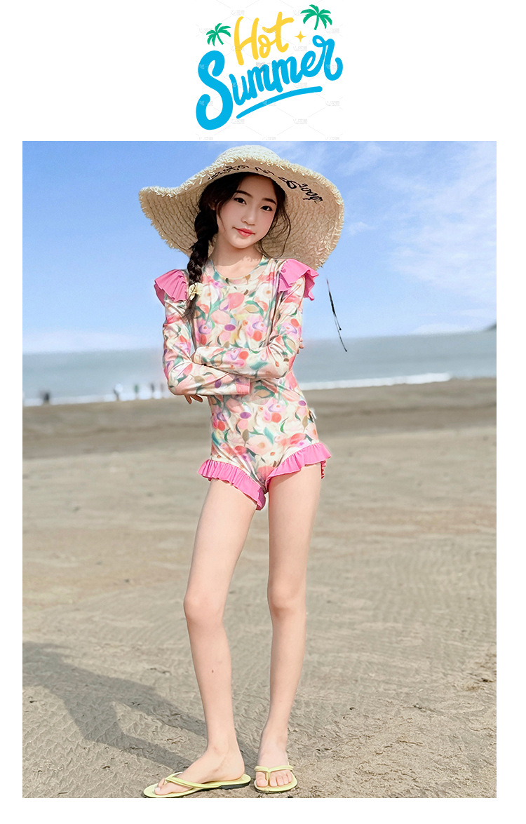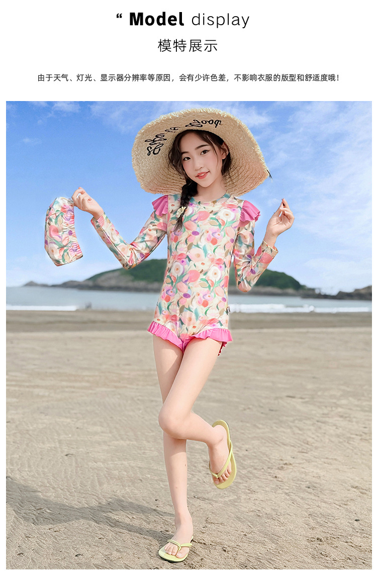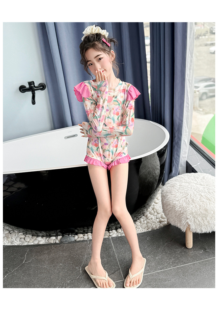 Летний модный купальник для девочек 2025 года, новый цветочный принт, средний и большой размер, детский летний цельный купальник, тренд