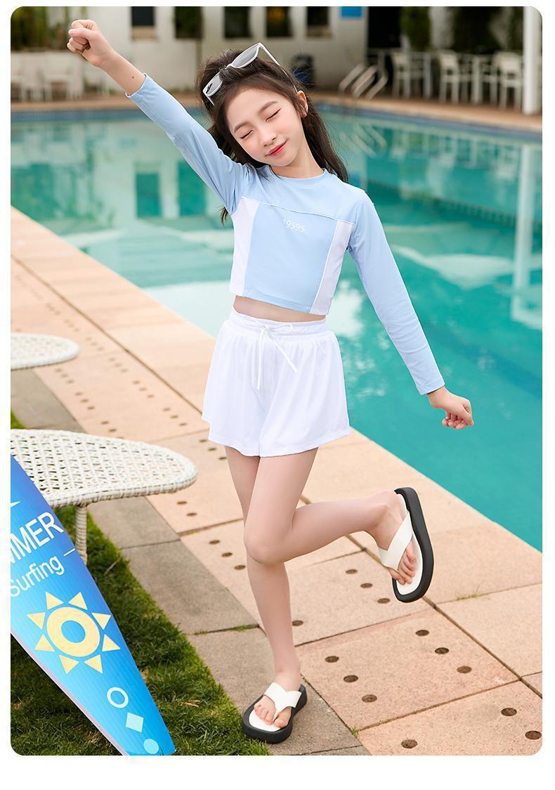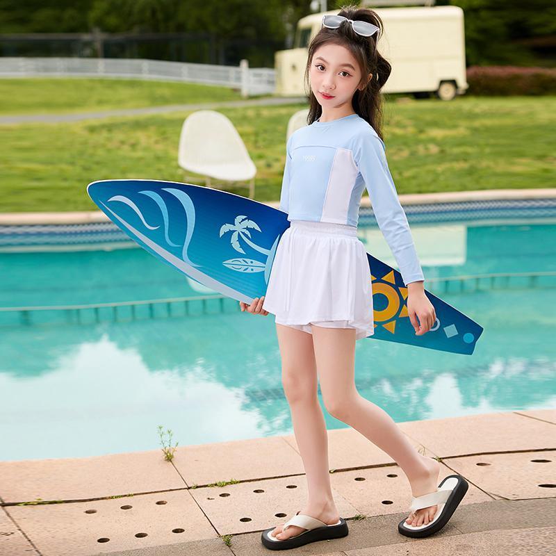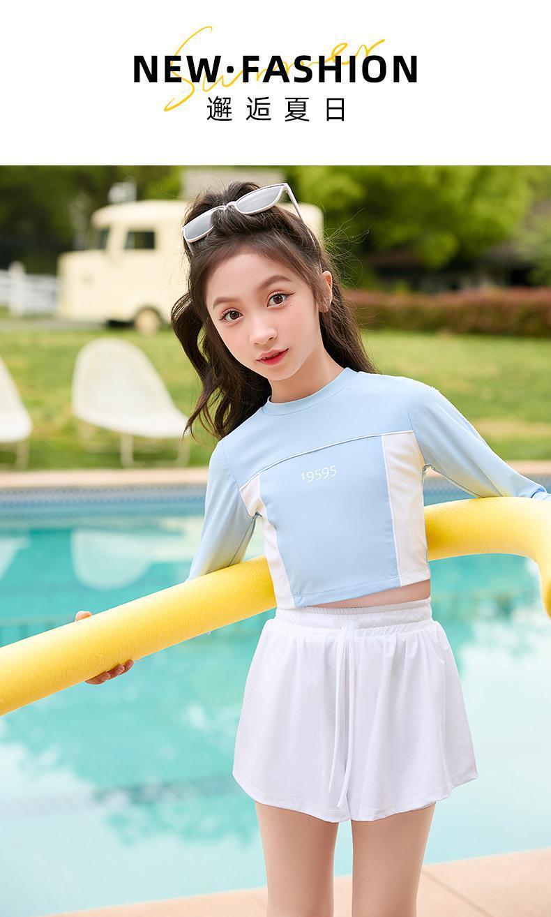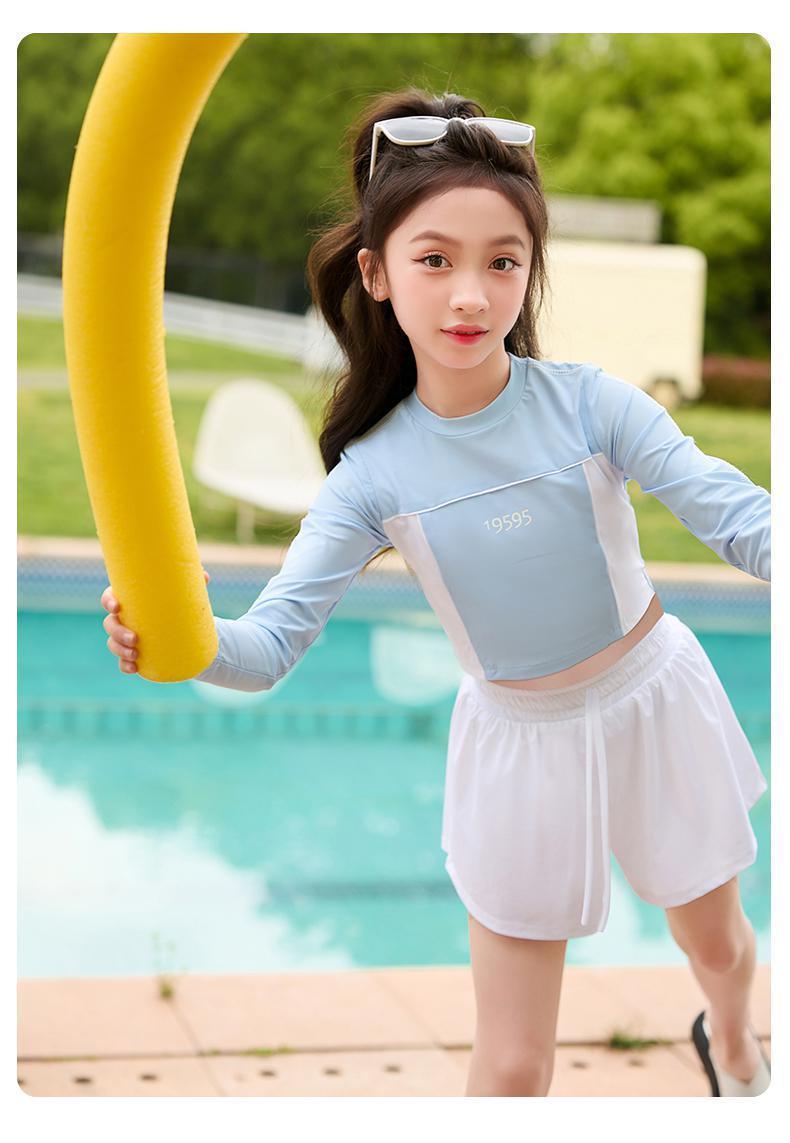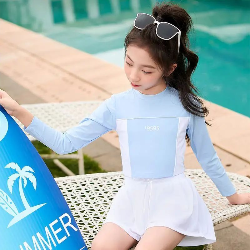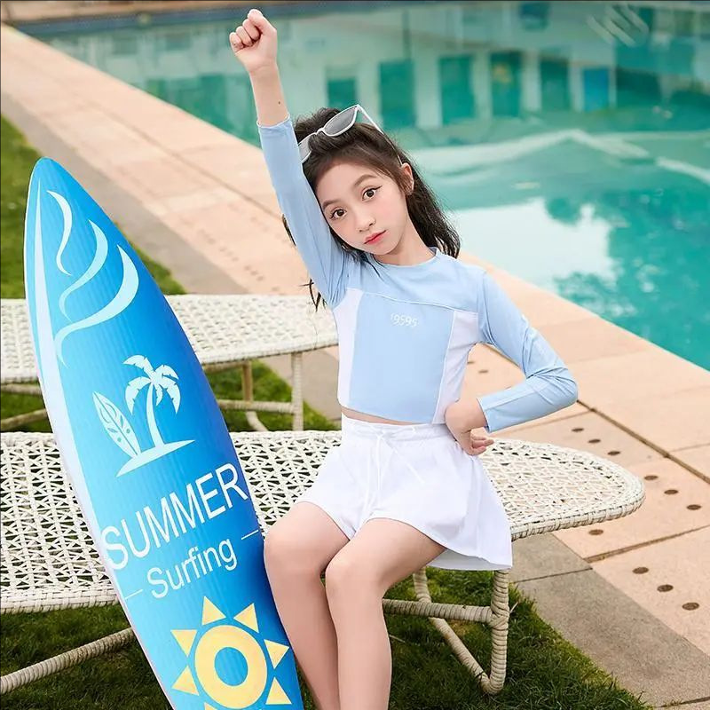 Новый детский купальник для девочек, разделенный средний и большой детский повседневный спортивный консервативный пляжный купальник для отдыха на горячих источниках, женский оптовый купальник