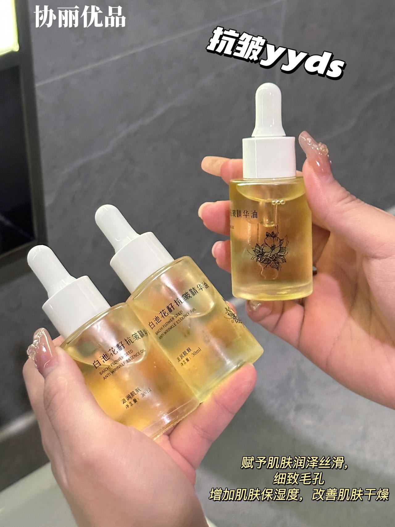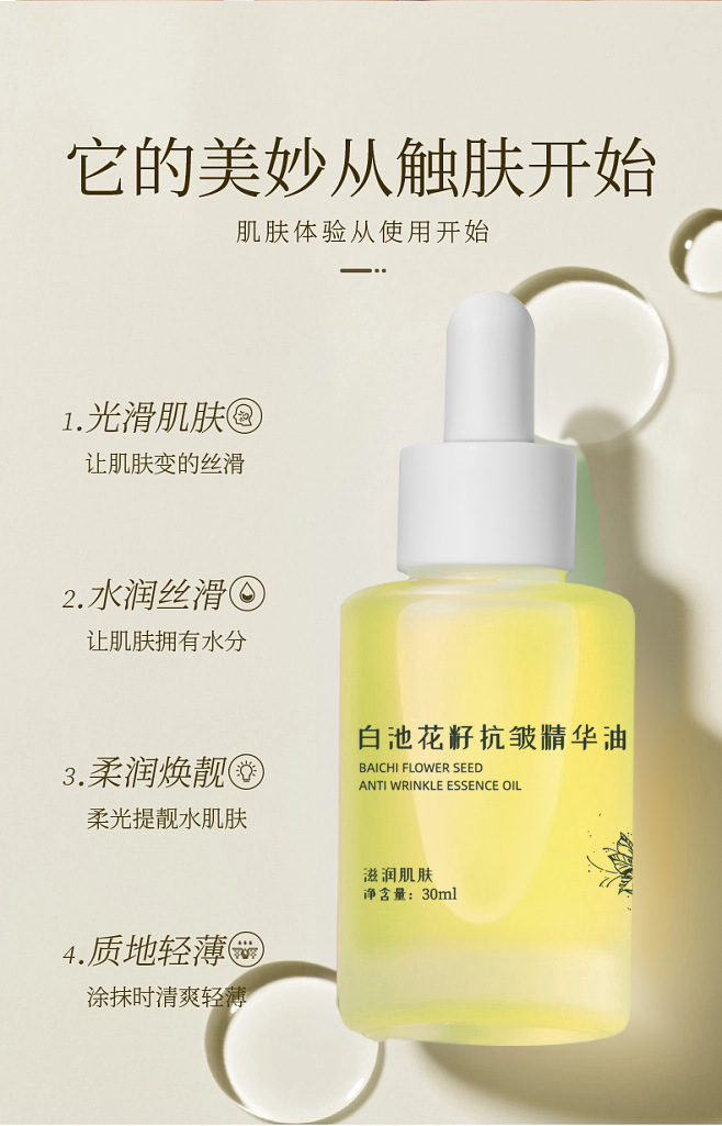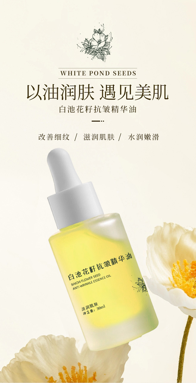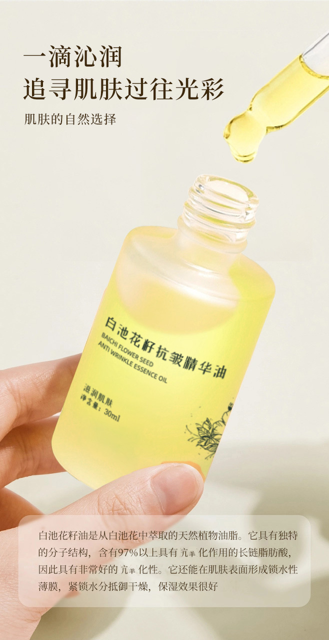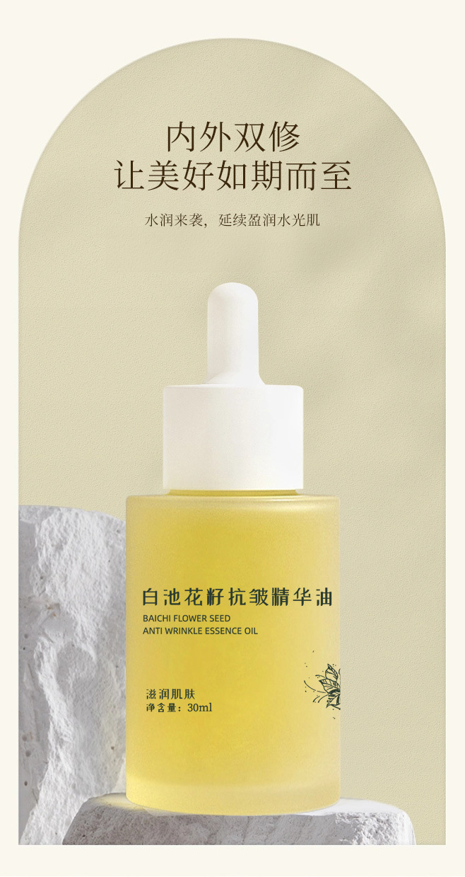 TikTok в том же стиле White Pond Flower Seed Эссенция против морщин Масло 30 мл Увлажняющее питательное масло для ухода за кожей Питательная эссенция для лица.