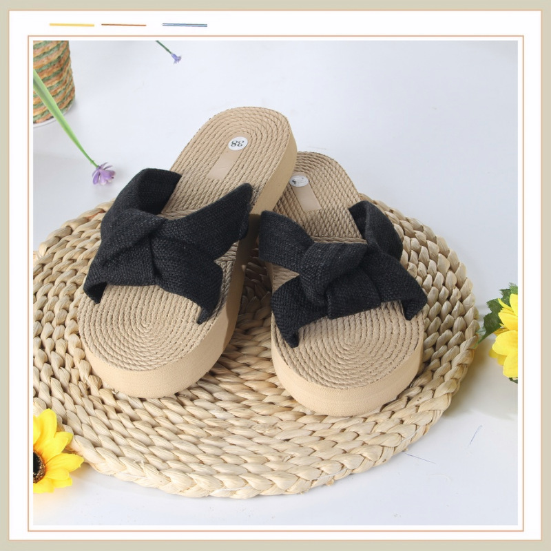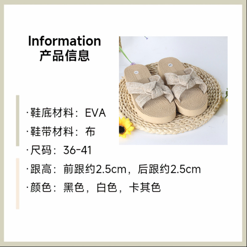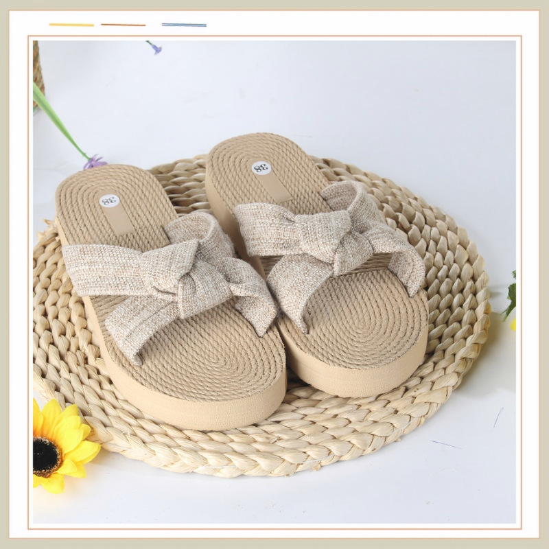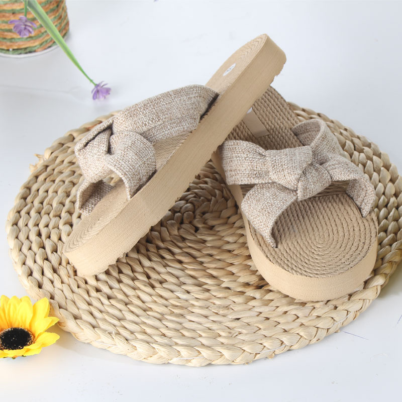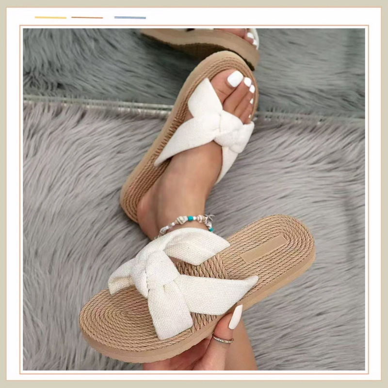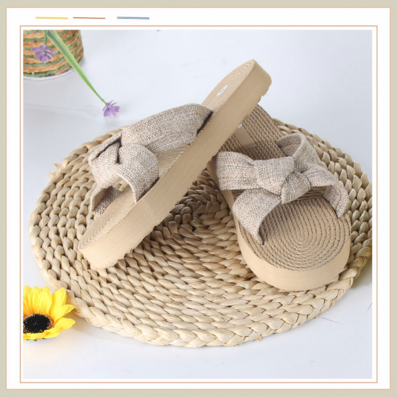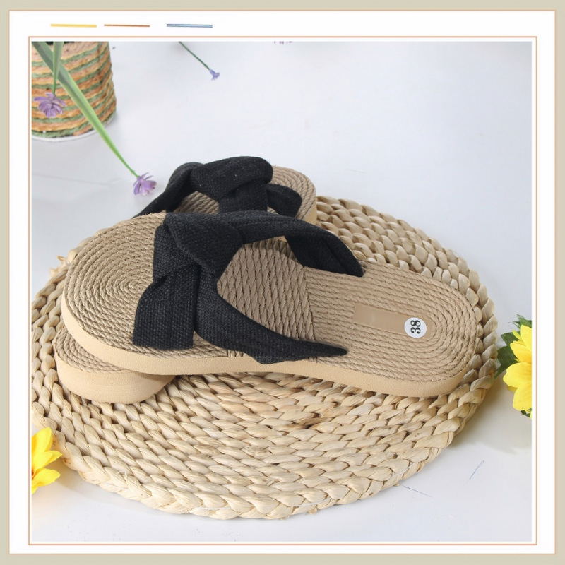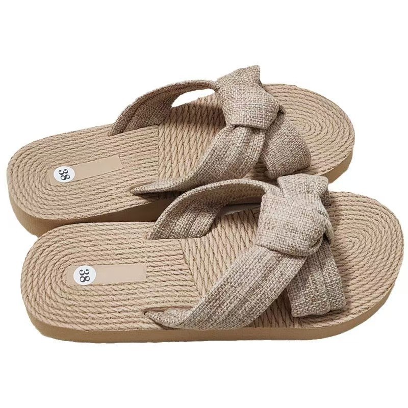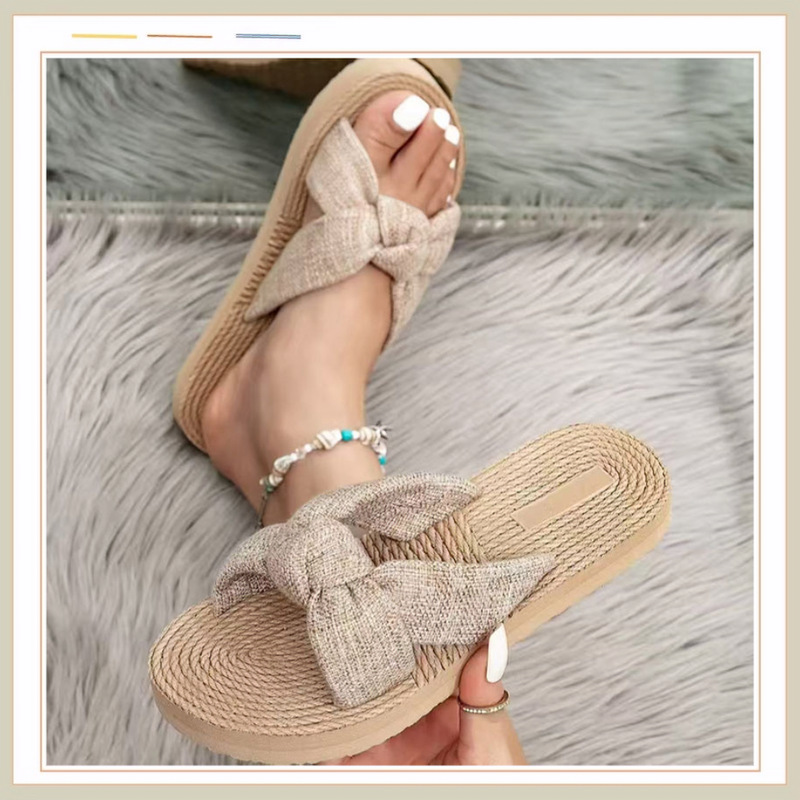 Новые стильные женские шлепанцы с бантом из ЭВА, модные льняные дышащие легкие женские сандалии с круглым носком на плоской подошве