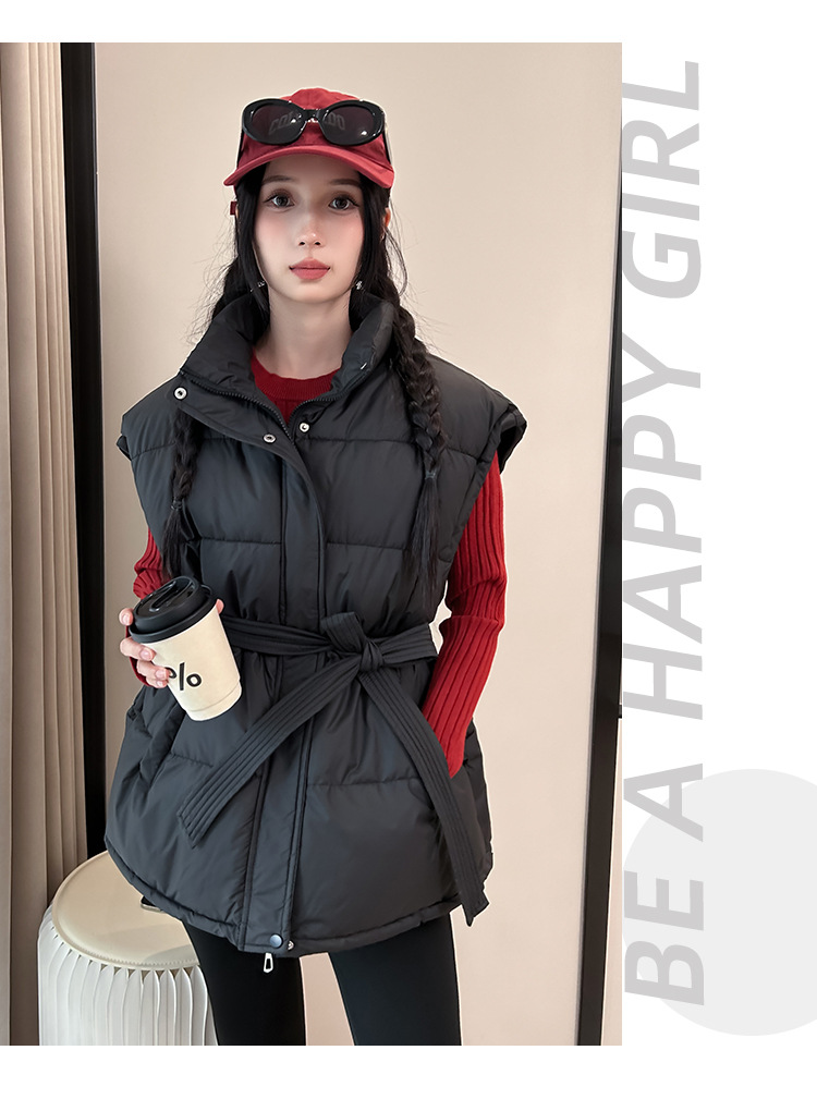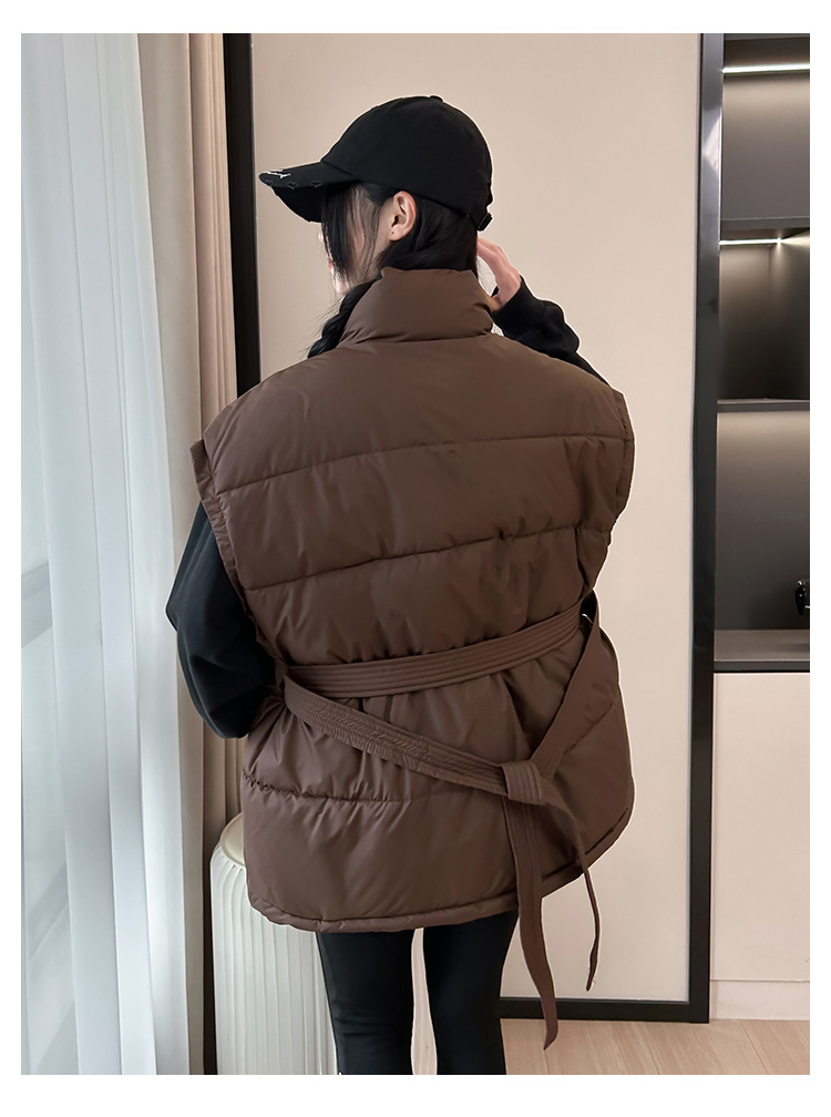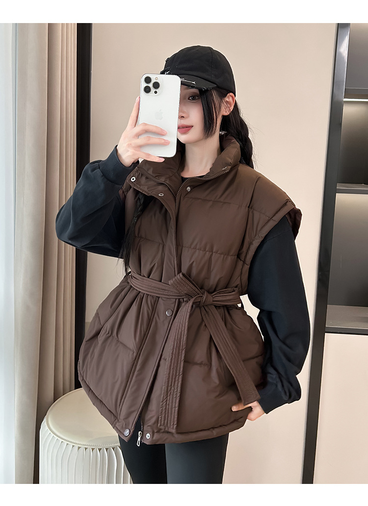 Женский хлопковый жилет, облегающий талию, новый осенне-зимний стиль, воротник-стойка, корейская версия 2025 года, свободная мода, утолщенная стильная куртка.